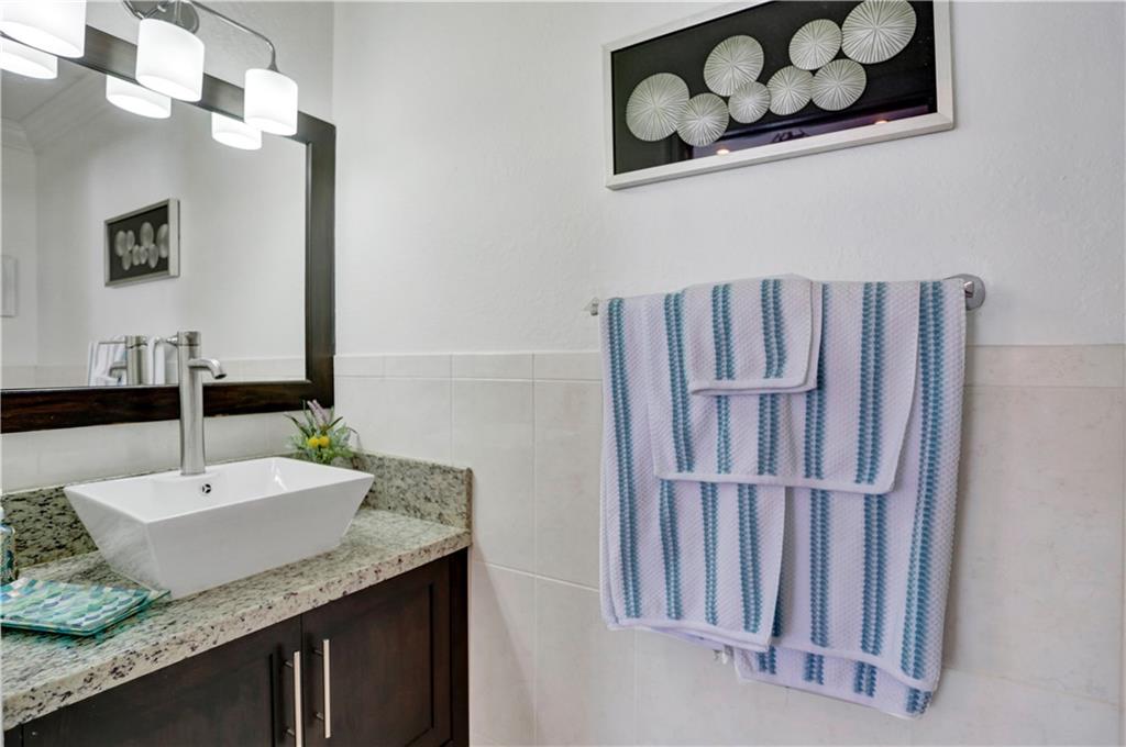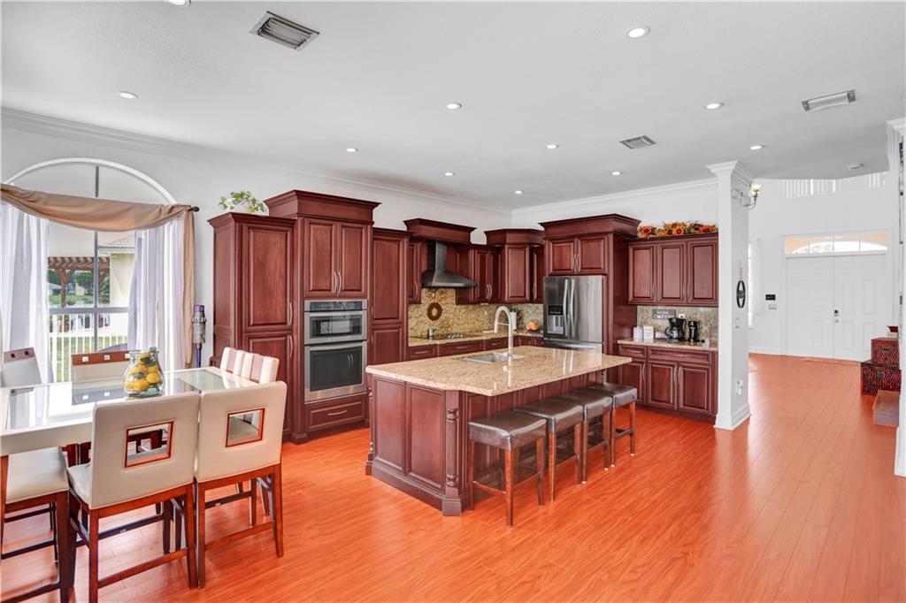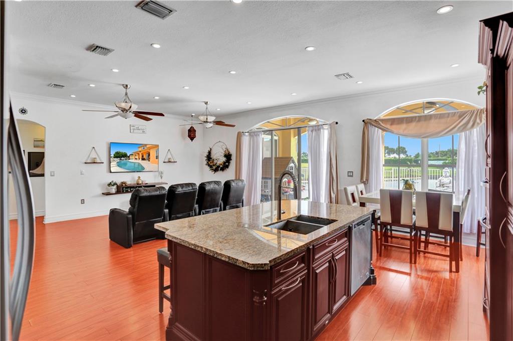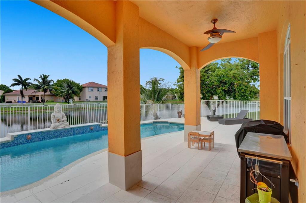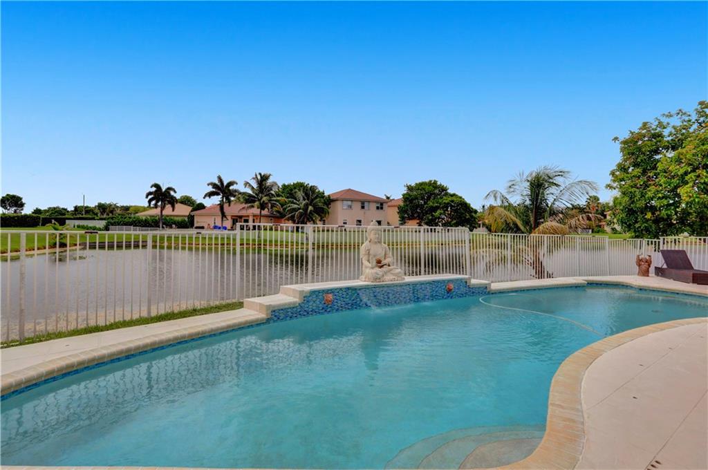 TWO-STORY LAKEFRONT HOME WITH A POOL LOCATED IN THE ESTATES OF TEQUESTA COVE. 5 BEDROOMS, 3 ½ BATHS WITH THE MASTER LOCATED ON THE 1st FLOOR. THE MASTER HAS HIS AND HER SINKS, AND LARGE BUILT-IN AND WALK-IN CLOSETS. ALL BATHROOMS HAVE BEEN UPDATED. THE KITCHEN IS UPDATED WITH BEAUTIFUL REAL WOOD CABINETS. THE SECOND FLOOR HAS 4 BEDROOMS EACH WITH BUILT-IN CLOSETS. THIS HOME HAS A 3-CAR GARAGE. A PORTION OF THE GARAGE INCLUDES A STATE-OF-THE-ART MEDIA AND BAR/PARTY ROOM AND CAN EASILY BE CONVERTED BACK. TANKLESS HOTWATER TANK AND ALARM SYSTEM. INCREDIBLE LAKE VIEWS, 40X12 POOL WITH A WATERFALL, AND EXTENDED DECK AREA FOR ENTERTAINING. THE PATIO IS COVERED AND IS EASILY ACCESSED THROUGH THE FAMILY ROOM OR MASTER BEDROOM.