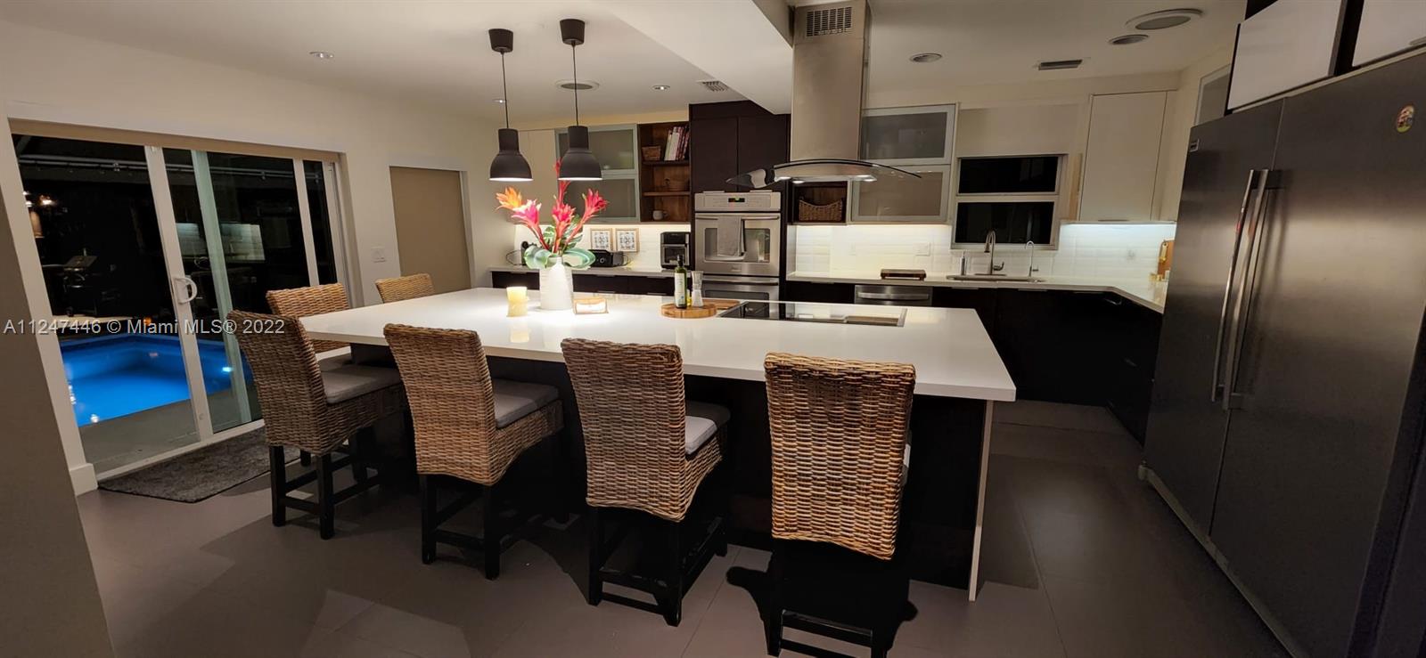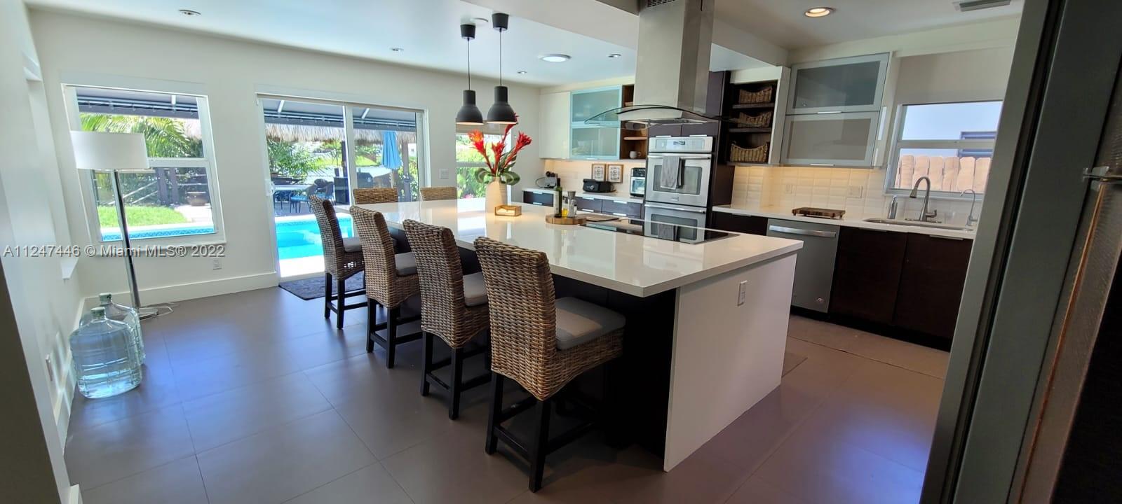 Welcome to your dream home! Beautiful and bright single home in Enchanted Lakes. Full size pool surrounded by a meticulous illuminated landscape with a lake view and steps to a basketball court and your own private "Tiki" with a BBQ. Perfect for entertainment day and night! Inside this green built home you will find spacious and confortable living and dining area, small office space, a huge kitchen with a built in counter top for all family to enjoy, with induction cooktop. 5 bedrooms and 3 full bathrooms; led lightning and natural light all over this house. Electric curtains in living and main bedroom. Tesla vehicle charger. Enjoy the lake view from your own private dock; from this lake you can get all the way to the ocean. 2 AC Units and 3 electric water heaters.