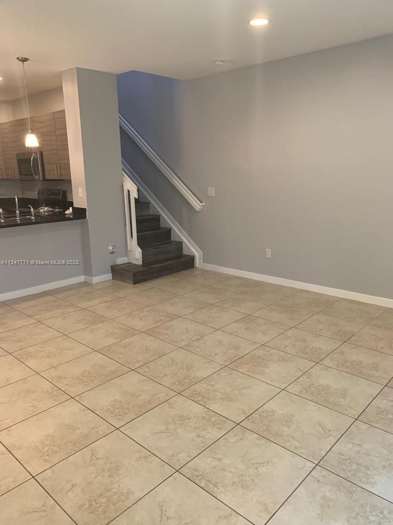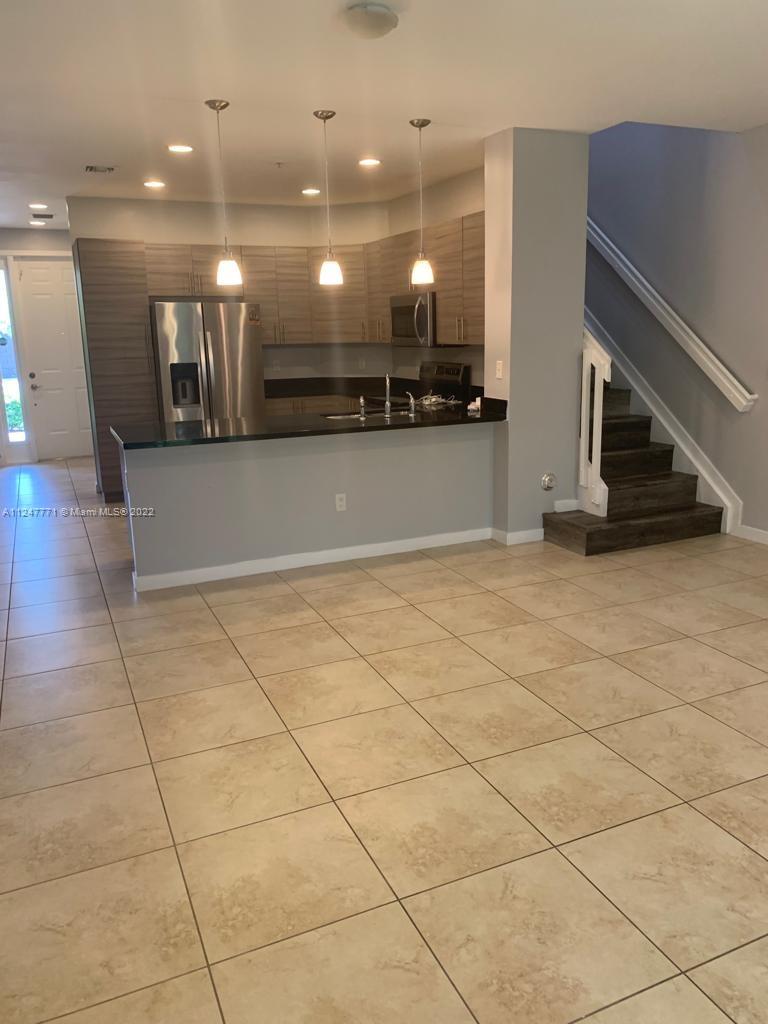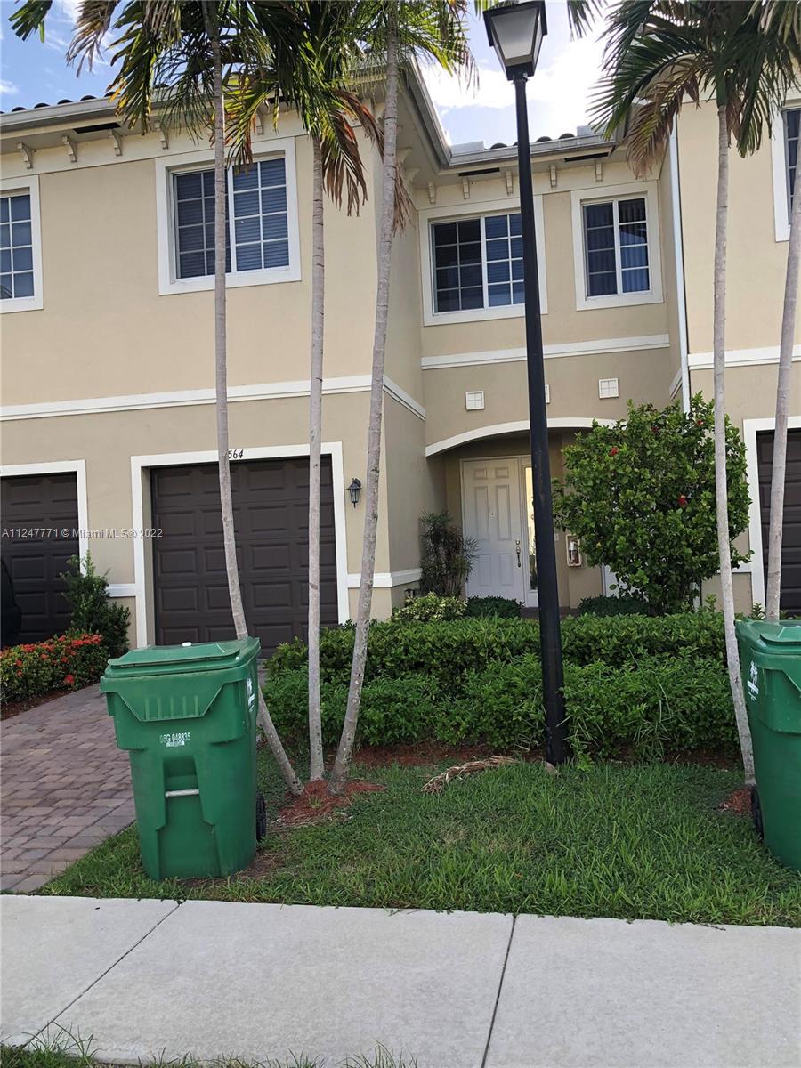 Corner Unit: 3 bedrooms 2 ½ bathrooms, 1 CG plus driveway next to guest parking, tile flooring on 1st floor, wood laminate on stairs and all of the 2nd floor, contemporary open floor plan kitchen design w/s/s appliances, quartz countertops, recessed lighting, hurricane impact windows, 9’5” ceilings, low condo assoc. fee, community pool, kids playground, and more. Close to shopping and dining.