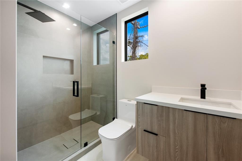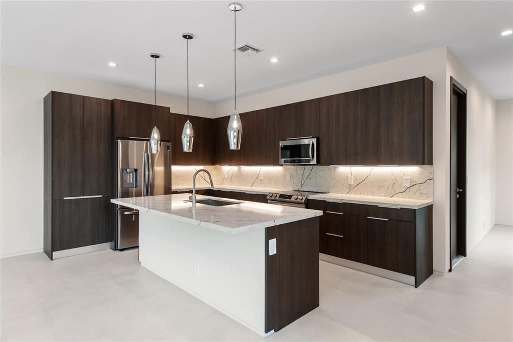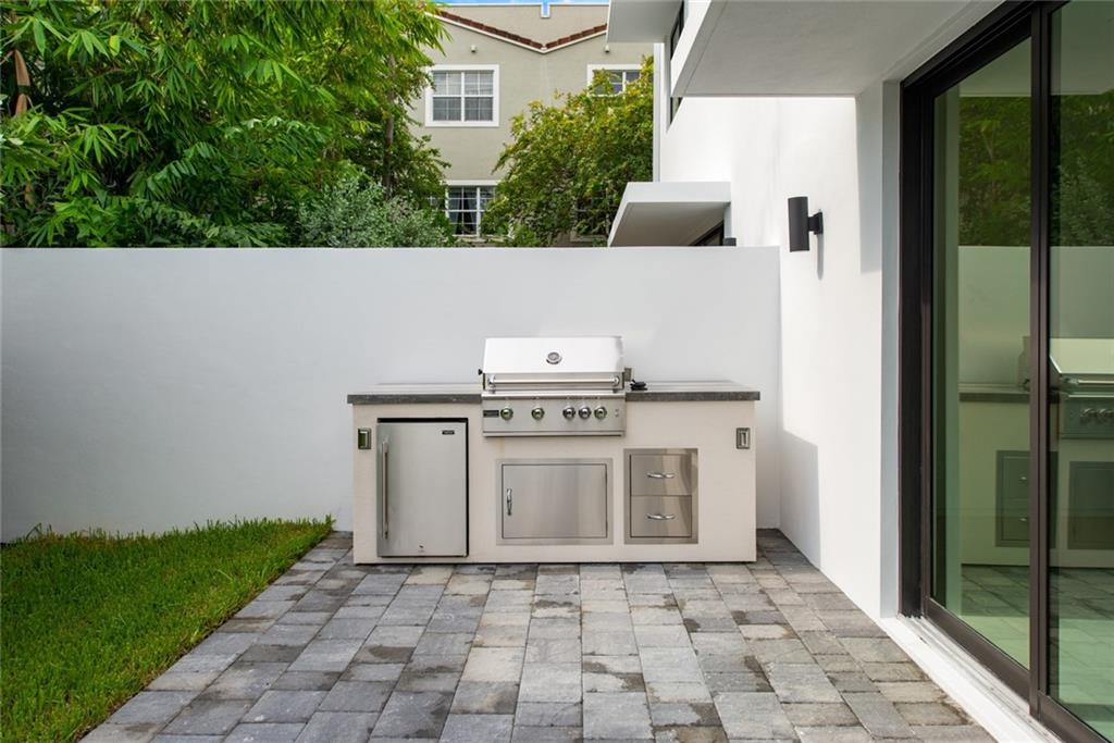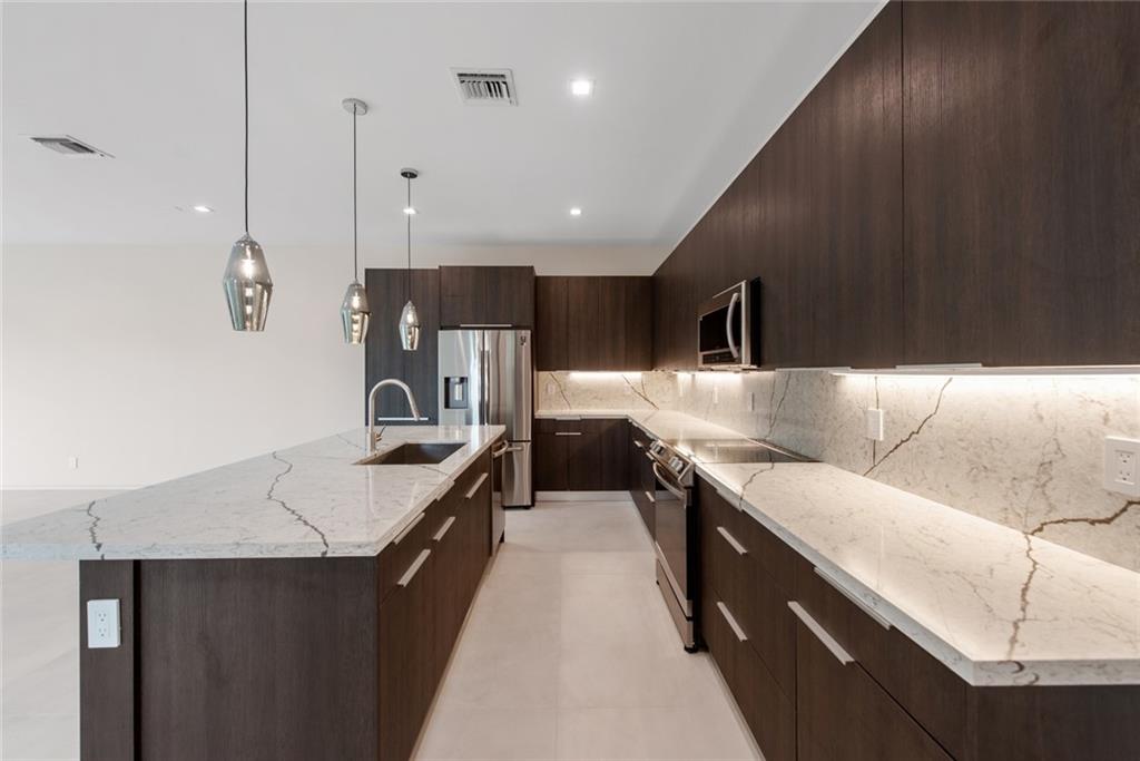 Immaculate new construction modern 3 bed, 3 1/2 bath, 1 1/2 car garage town home designed and built by renowned builder Danny Minkin. Boutique development of only two townhomes, no HOA. Gourmet kitchen featuring European style cabinetry, quartz countertops, Samsung Stainless steel appliances and a large Island with seating. Large 4' X 4' porcelain tile throughout. Large primary bedroom with balcony and walk-in closet, designer primary bath with black granite countertops. 4" LED lighting throughout, pre wired smart home and speakers, shade pockets wired with power, high efficiency 19 seer variable speed Lennox A/C system, European doors with concealed hinges, contemporary bath fixtures, loft area/ flex space. Summer kitchen and patio area.