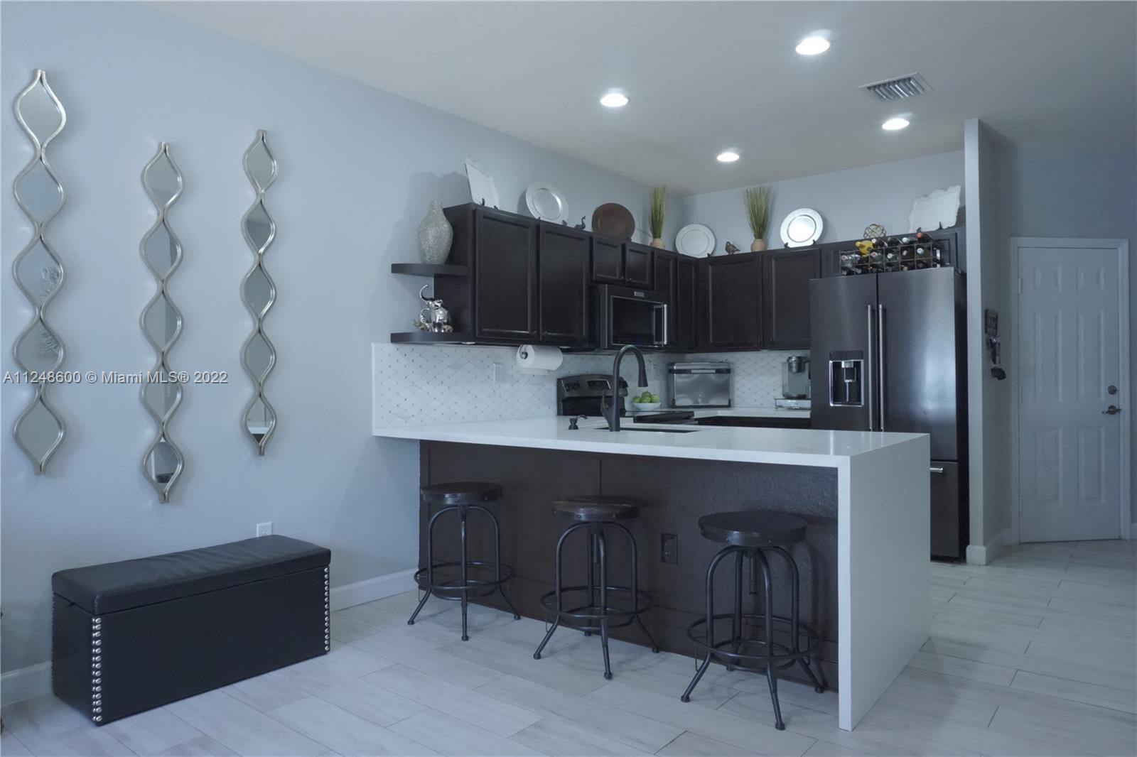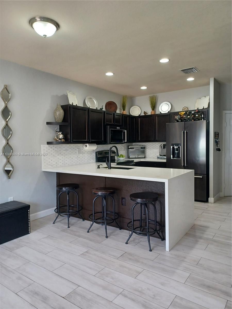 Come see this gem at the prestigious community of Aragon. This gorgeous townhouse geatures, 3 bedrooms, 3 full baths, one car garage, 4 total parking spaces, pently of gust parking, recently painted. Tiles on teh first floor and modern laminated wood floors on top level. Updated modern kitchec, waterfall quartz counter top with backsplash, new Kitchen Aid appliances, bathroom updrade, concrete texture patio. Brand new washer and dryer with pedestal, smart house. Guard 24/7, beutiful club house, community pool, gym, and recreational area. Just minutes from the Turpike, Palmeto and I-75 expressway. Please contact agent for appointment.