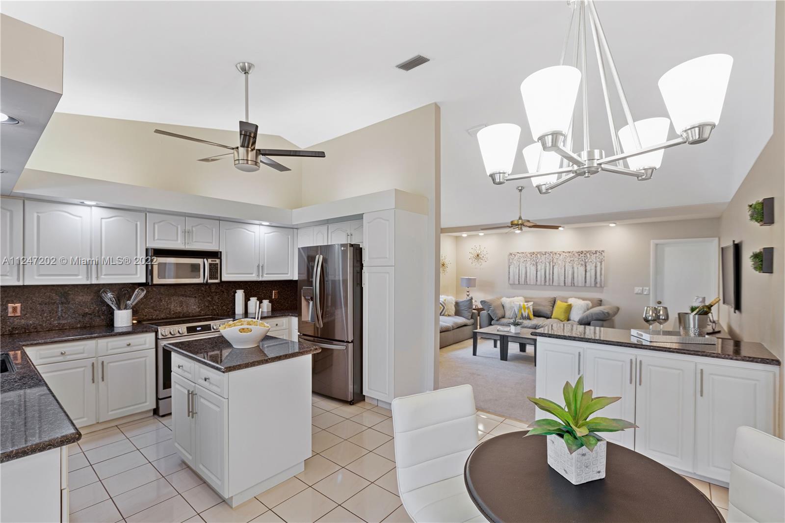 Impeccable home on lovely oversized lot by a tranquil lake. Watch the sun set from pool deck under extended roof. Heated pool/new screens/new sprinklers. HIGH IMPACT GLASS ON 3 SETS OF FRENCH DOORS/ALL WINDOWS. HURRICANE SAFE GARAGE DOORS. Updated kitchen with granite counters. NEW REFRIGERATOR & STOVE, WASHER & DRYER. Huge living/dining room with vaulted ceilings. Elegant master bedroom with Plantation shutters, crown molding. Master bath with walk-in shower, roman tub. A/C system only 4 years old. Newer carpets/fresh paint. Partial garage conversion allows for air conditioned utility room/office as well as space to park your car on epoxied floor. Circular driveway for 8 cars. Easy access to I-75, hospitals, theaters, restaurants & shopping. EXCELLENT SCHOOLS. Low HOA fee.