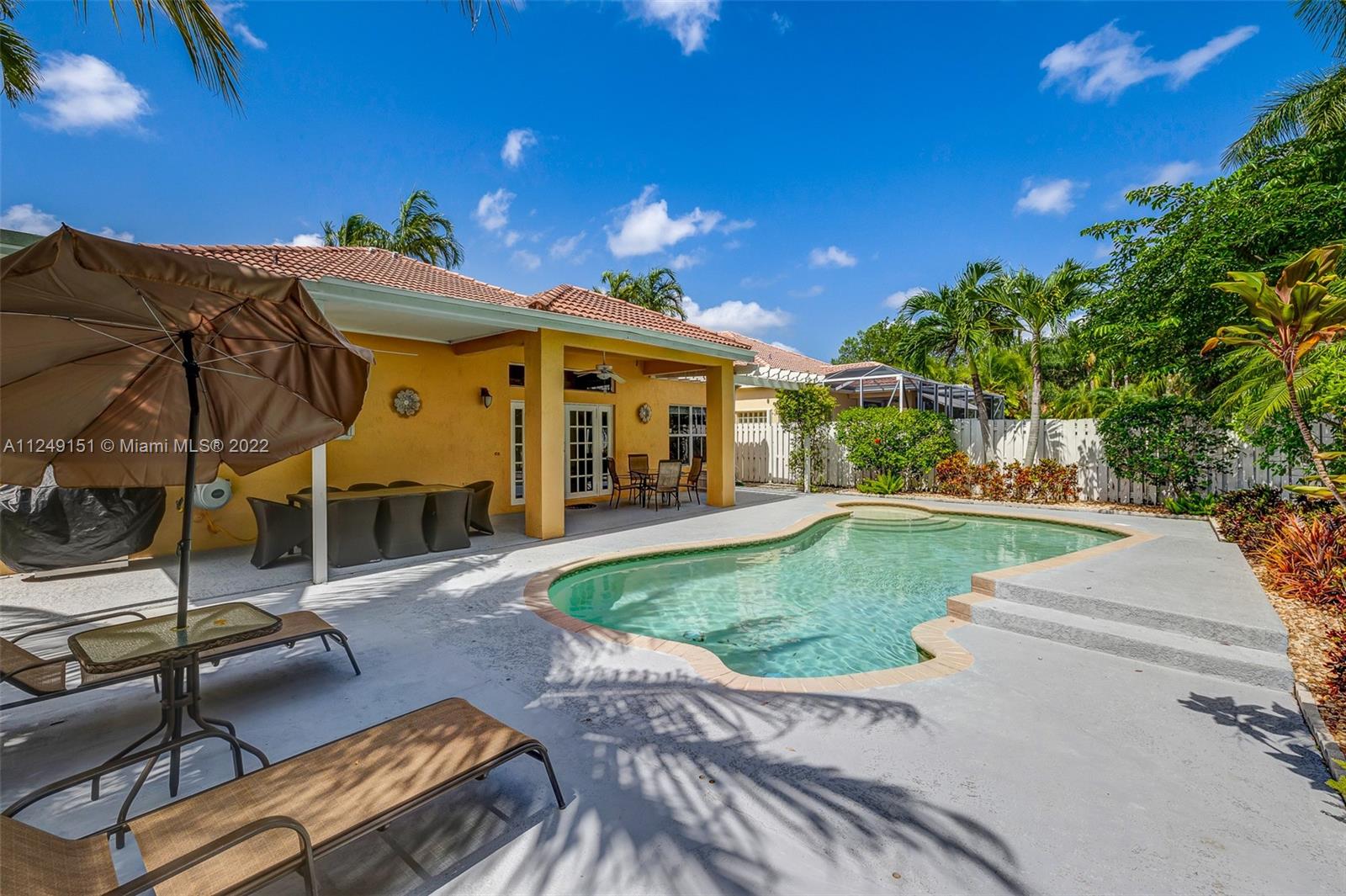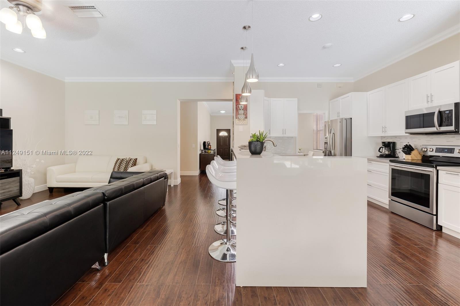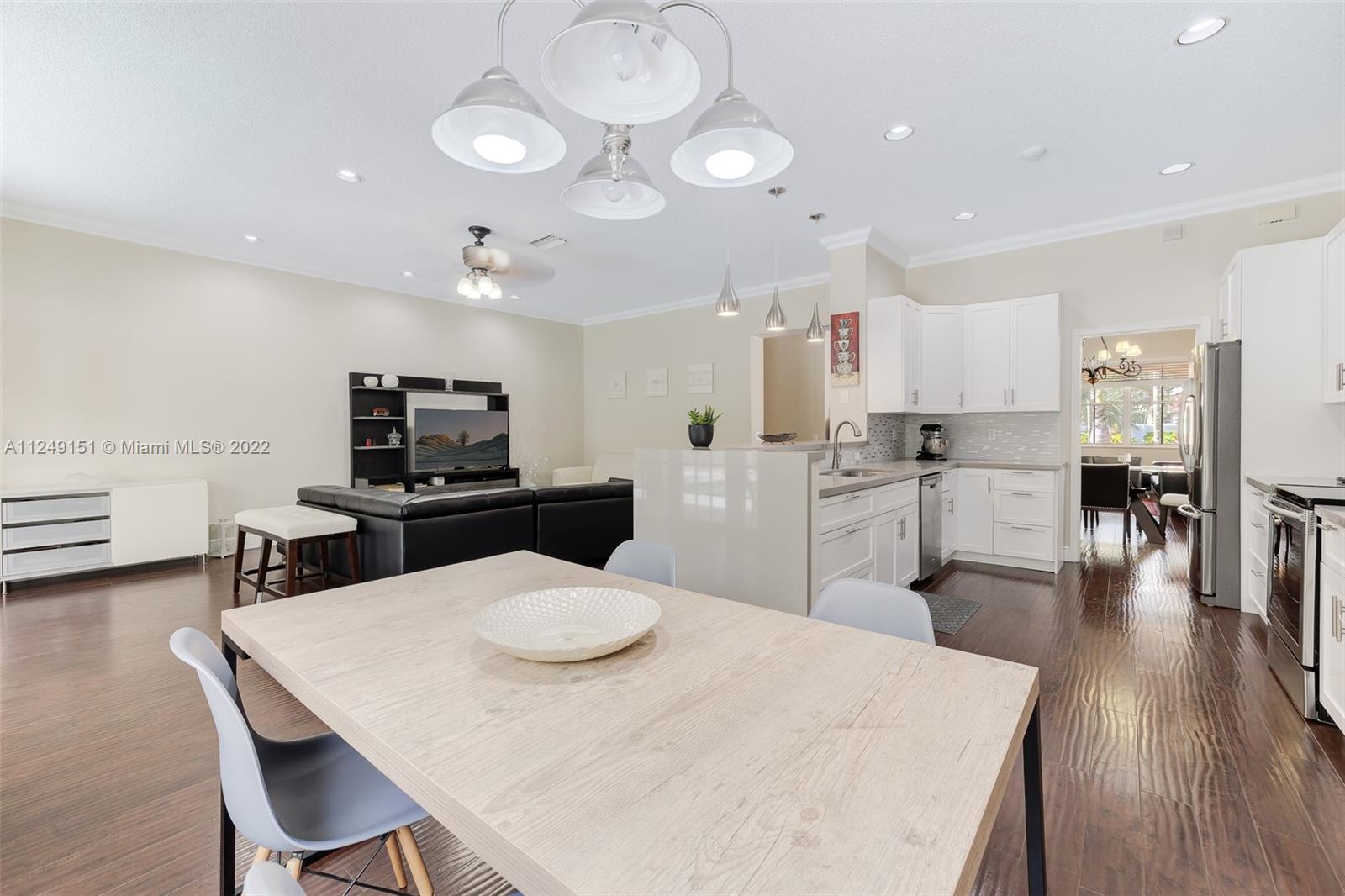 You can't pass on this updated home, come and see this beautiful, remodeled house in “The Meadows. Meticulously maintained, this one-story home has 4 Bedrooms, 3 Full Remodeled Bathrooms and is move in ready. Generous master closet. Spacious modern and open kitchen with quartz counter tops/back splash, counter sitting area, SS appliances and white custom cabinets, including the breakfast area. The paved patio is great for entertaining or just relaxing, overlooks the pool. French Doors. Accordion Shutters. Two car garage. Separate laundry room. South Florida lifestyle doesn’t get any better. Community Pool. Conveniently located at walking distance from Gator Run Elementary, easy access to I-75 and 595. Close to several shopping malls and restaurants. Top rated schools.