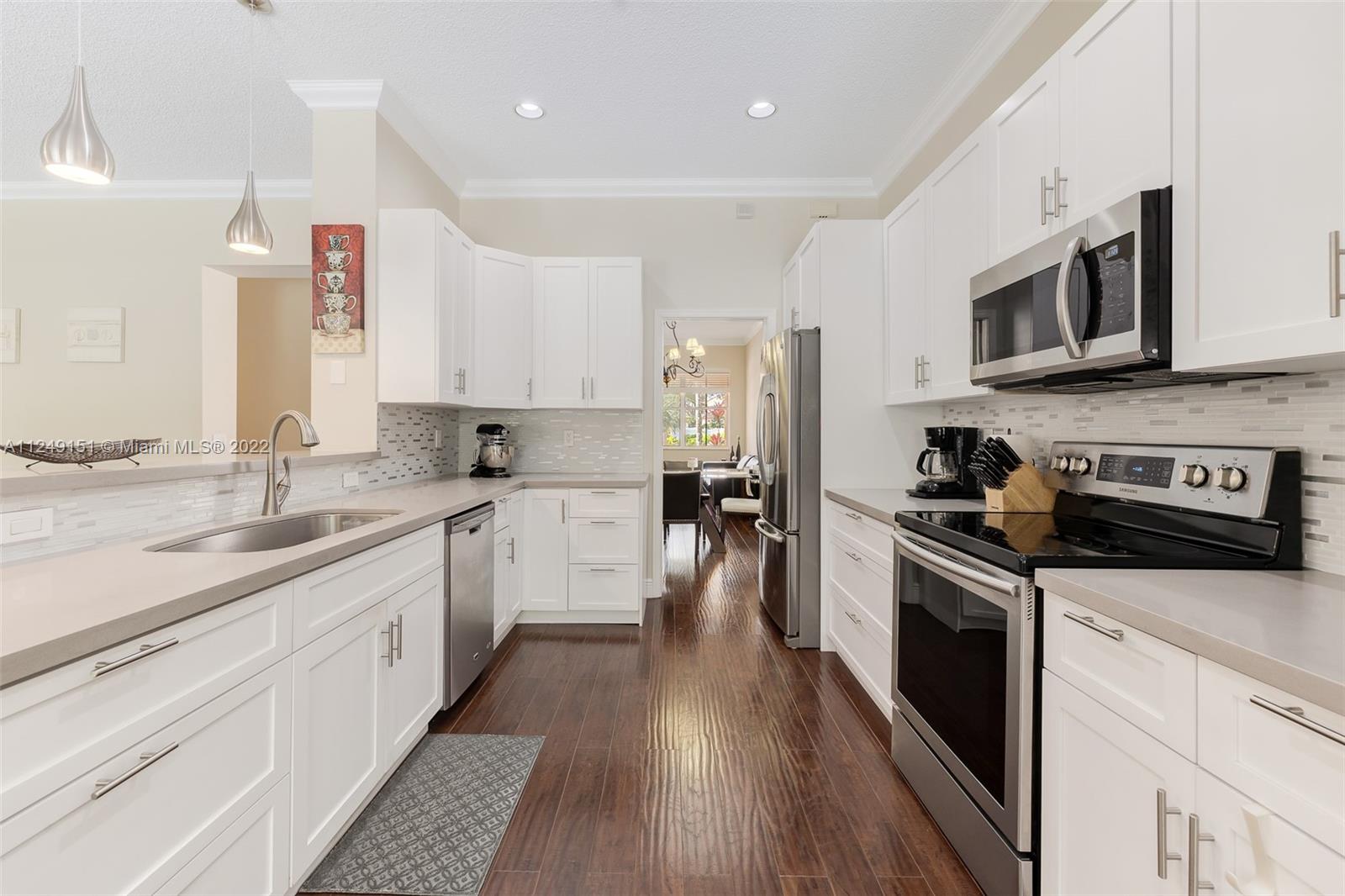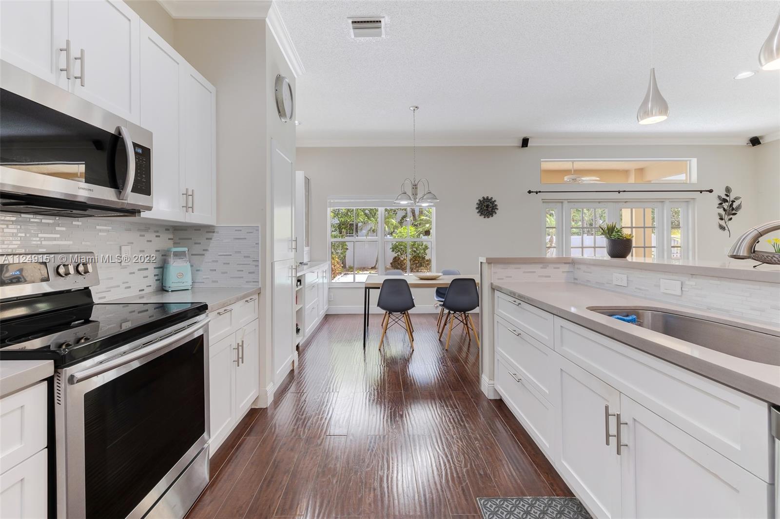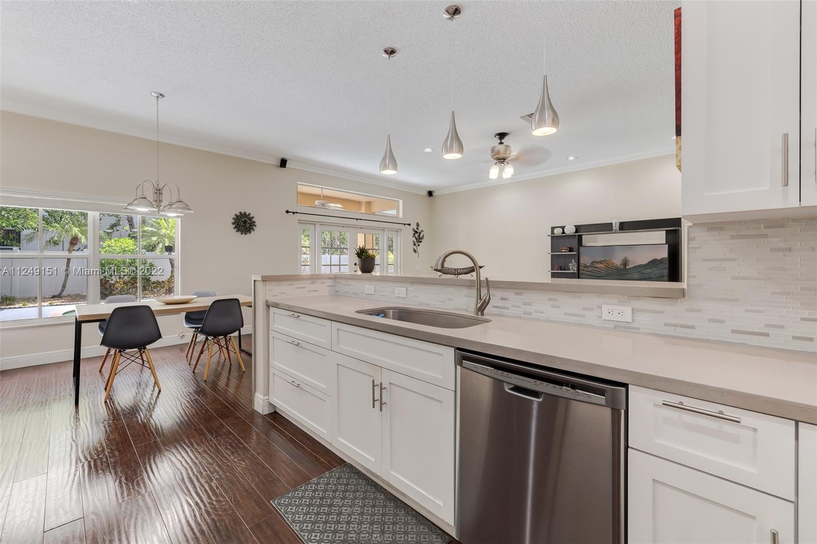 You can't pass on this updated home, come and see this beautiful, remodeled house in “The Meadows. Meticulously maintained, this one-story home has 4 Bedrooms, 3 Full Remodeled Bathrooms and is move in ready. Generous master closet. Spacious modern and open kitchen with quartz counter tops/back splash, counter sitting area, SS appliances and white custom cabinets, including the breakfast area. The paved patio is great for entertaining or just relaxing, overlooks the pool. French Doors. Accordion Shutters. Two car garage. Separate laundry room. South Florida lifestyle doesn’t get any better. Community Pool. Conveniently located at walking distance from Gator Run Elementary, easy access to I-75 and 595. Close to several shopping malls and restaurants. Top rated schools.