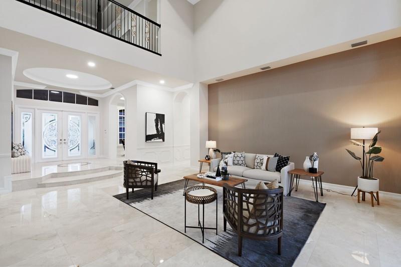 Best lakefront estate with close to 8,000 total sq ft in the highly desirable man gated community Stonebrook Estates newly renovated (2022). Imagine having 7bed/7bath + loft with a grand open floor plan, 22ft ceilings, large bedrooms (all suites), 4 car garage (studio or gym), all marble floors, front balconies, & more. Brand new kitchen, new AC units (2022), & grand master bedroom with stunning closet & master bath you will be sure to love. This private cul-de-sac lot has 1/2 an acre and sits across from the clubhouse with amazing water views from every angle, a big lagoon style pool/spa with sitting table, outdoor kitchen & more. A+ rated location, schools, & amenities.