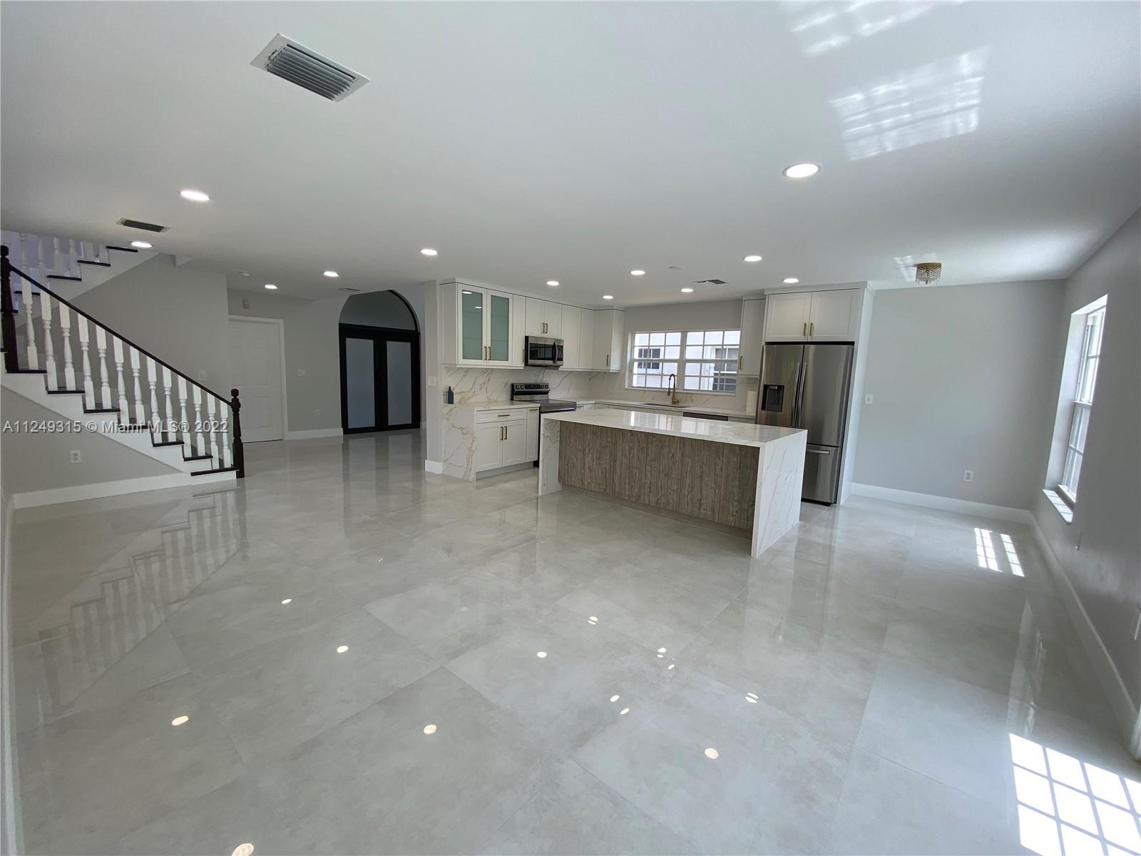 IN CITY OF CORAL GABLES. 2 STORY MEDITERANIAN-STYLE. 4 SPACIOUS BEDROOMS, 3 MODERN BATHROOMS, OVERSIZED 2 CAR GARAGE, OPEN LAYOUT, IMPACT-GLASS WINDOWS AND DOORS, ONE BEDROOM/DEN DOWNSTAIRS WITH FULL BATH. OPEN KITCHEN CONCEPT WITH WHITE WOOD KITCHEN CABINETS, QUARTZ WATERFALL-EDGE COUNTERTOPS AND NEW STAINLESS-STEEL APPLIANCES. PORCELAIN TILE AND RECESSED LIGHTING THROUGHOUT. NEW LAMINATE FLOORS UPSTAIRS. SPACIOUS PRIMARY BEDROOM W/3 CUSTOM CLOSETS. PRIMARY BATHROOM W/MODERN FREE-STANDING TUB, SHOWER AND DUAL SINKS. CENTRAL A/C, PLENTY OF STORAGE, CHANDELIERS INCLUDED. WALKING DISTANCE TO LOCAL SHOPS AND RESTAURANTS, CENTRALLY LOCATED, WITHIN MINUTES OF MAJOR HIGHWAYS, MIAMI INTERNATIONAL AIRPORT, UNIVERSITY OF MIAMI, DADELAND MALL, DOWNTOWN MIAMI AND THE BEACHES.