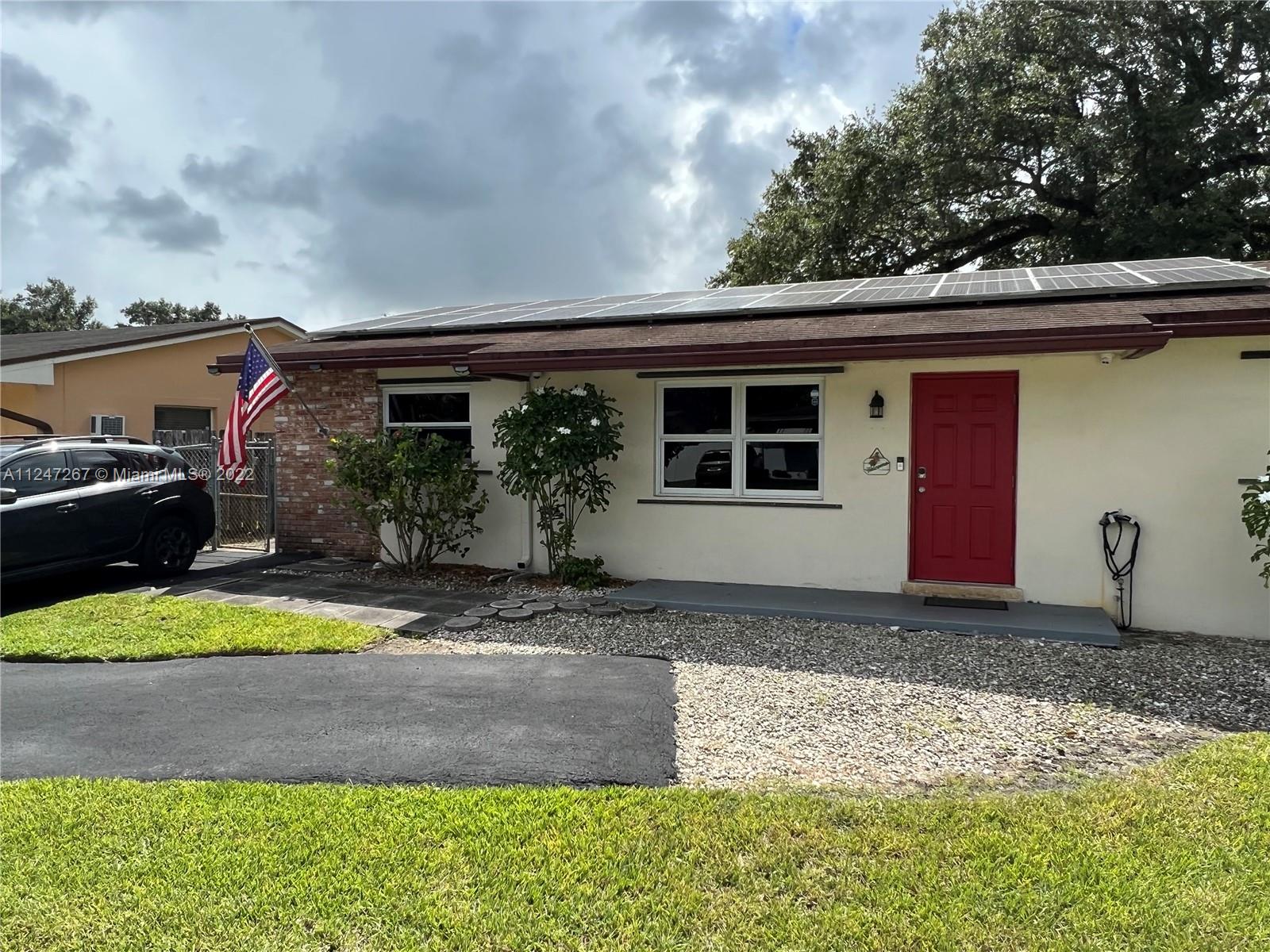 Beautifully renovated 3/2 ranch-style home with popular split bedroom plan on a quiet street in W Ft Lauderdale.!!!GREAT LOCATION!!! 10 mins to FLL airport, downtown, near all major highways and a park. Lush well maintained backyard with plenty of space. Huge 100 year old oak with a large staghorn fern makes the backyard a showplace. ***Whole home 6.6 kW Solar PV System (2017), SAVE literal thousands on FPL bills!!!*** Entire house features hurricane impact windows/doors, tankless water heater, 2-stage high efficiency A/C (18 SEER, 2018), new A/C ducts (2021), 30A generator inlet w/ transfer switch, and a whole house surge suppressor. Updated energy efficient appliances including the washer/dryer. No HOA! Instant return from the day you purchase.SHOWINGS BY APPT ONLY, AUGUST 6th-7th.