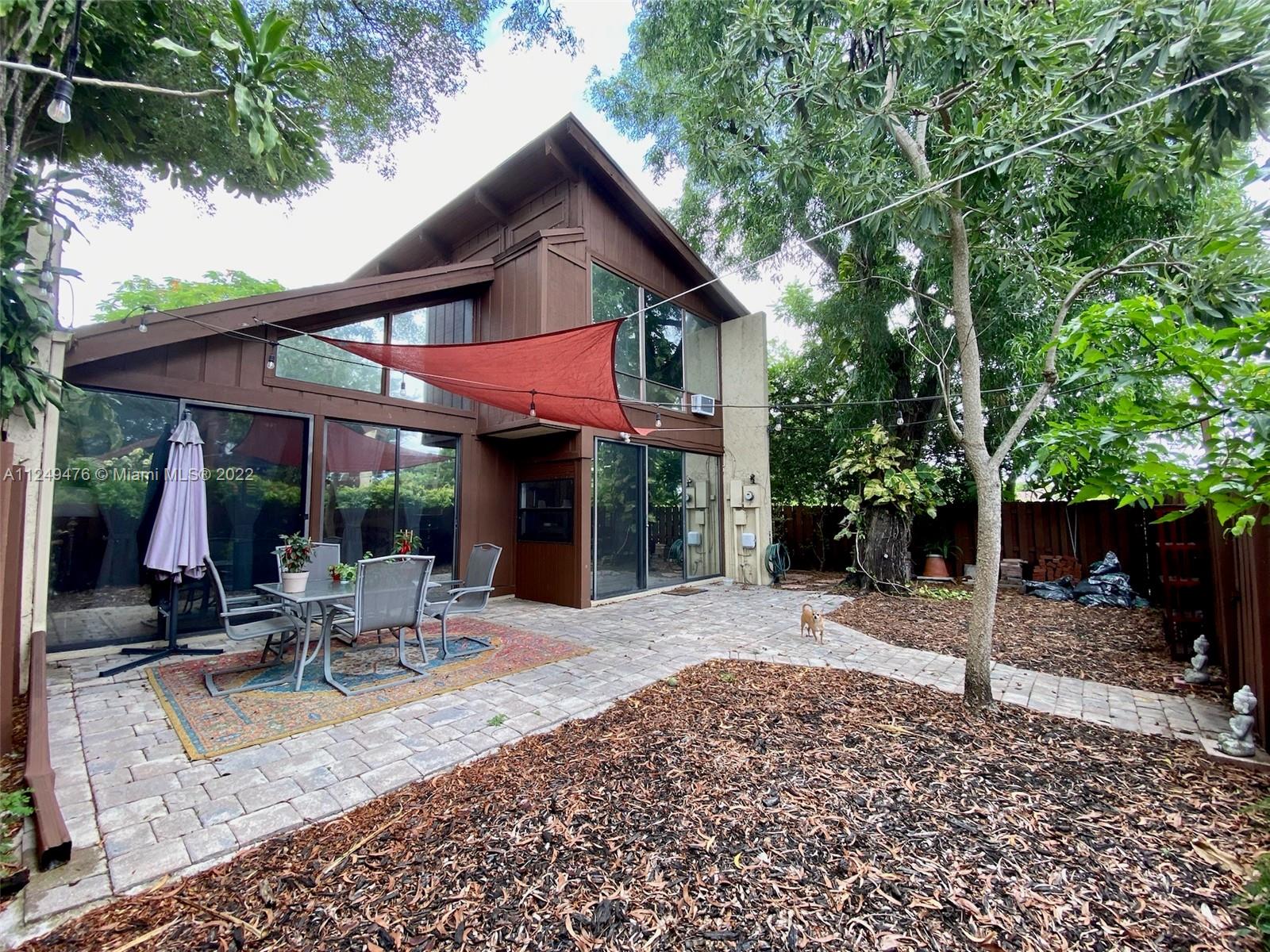 Have you ever wanted to live in a park? Look no further than this updated home in Lofts of Palm Aire! Mature oaks blanket this lovely community with tennis courts, dog parks, handball courts, pool, BBQ/picnic areas, game and workout area. This corner lot home has a tropical garden & big windows for max natural light. The open kitchen has stainless steel appliances & island with snack bar and extra cabinets overlooks the dining and family room. This is a 3 bedroom but also has a loft and enclosed patio, so much room! Modern updates and lighting with vaulted ceilings make this home feel huge. Walk in closets in every room, 2 closets in the primary suite upstairs. Well maintained community with low HOA (solar panels for pool); very pet friendly!