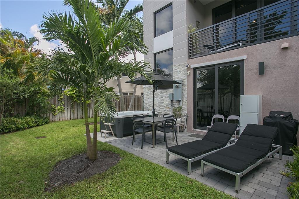 Welcome to the Mandarin Townhomes in Charming Victoria Park. A Boutique Complex of Just Twelve Modern Luxury Homes. Generous Size Two Car Garage. This Desirable End Unit is the Jewel of The Mandarin with the largest Back and Side yard totally fenced with an oversize enlarged Paver Patio and Hot Tub. Impact windows and Doors. First Floor Guest Bedroom with Private Bath. Gas Tankless Hot Water System. Designer Grey Montana Maple Plank Tile Flooring. Custom Lacquer Laminated Modern Cabinetry in Kitchen and Baths. Stainless Jenn-Aire Appliance Package includes Gas Cook top Range. Quartz Countertops, 8 Foot Solid Panel Interior Doors. New A/C installed in 2022. Close to the Famous Fort Lauderdale Beach and Las Olas Boulevard and walking Distance to Holiday Park and Parker Playhouse.