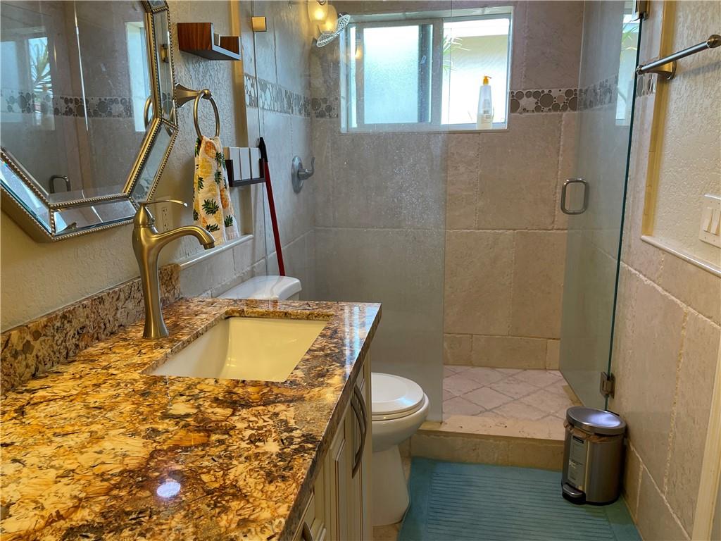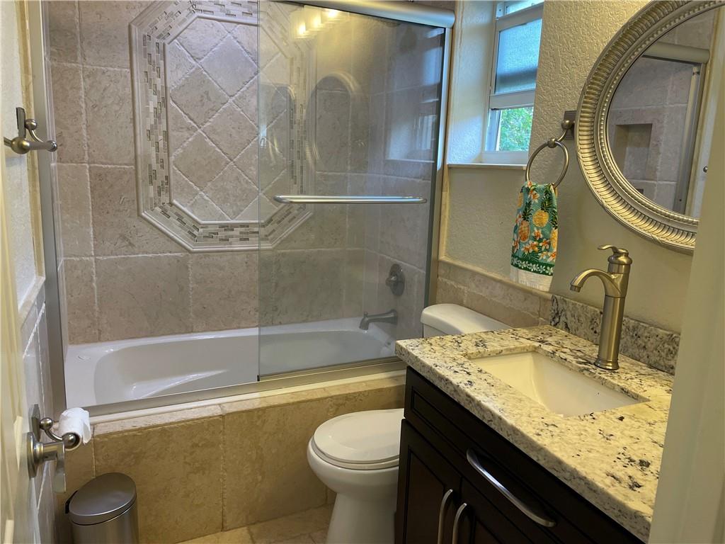 Luxury details in custom designed open concept kitchen boasting an abundance of storage. Large granite top island with additional storage. Travertine flooring throughout main living areas and laminate flooring in bedrooms. Large jet tub in guest bathroom. Double sink and linen closet in master bathroom. Renovated his and her closets in master and guest bedroom. Sliding glass doors in both bedrooms opening up to expanded Florida room with elevated ceilings, projector screen and fireplace. Private view out of large sliding glass hurricane impact doors. Hurricane impact windows throughout home. New roof in 2018. New air conditioning unit in 2016, remains under parts warranty until 2026. Centrally located near I95, the Florida Turnpike and the Pompano Beach train station.