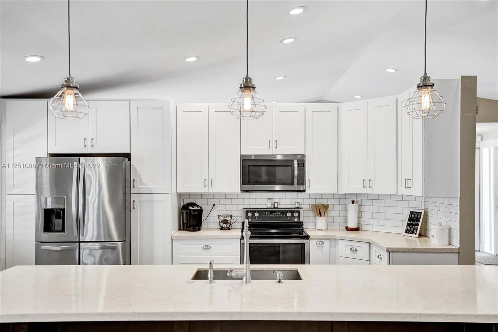 Four Bedroom Two Bath Located in Shenandoah, Excellent Neighborhood, and schools. Beautiful newer Custom Kitchen, with 42 in. cabinets. All stainless appliances. Huge 11 foot Quartz Kitchen Island , and Quartz counter tops. New Light Fixtures, and smooth ceilings in Kitchen & Living areas. Relax and enjoy the Open Living area and Kitchen with vaulted Ceilings, Planked Tile Floors, Plantation Shutters . Sep.Living and Family Room, also Dining area. Large 33x23 Pavered Patio, and Driveway. Exterior Paint 2 years, New Sod,& 3 zoned sprinkler system, Storm Shutters. Roof pressure washed and well maintained. Shenandoah with Beautiful Landscaping, and park in neighborhood is must see. Playground With Splash park. Good walking/Running neighborhood, with sidewalks thru-out. Assoc.fee $50.00