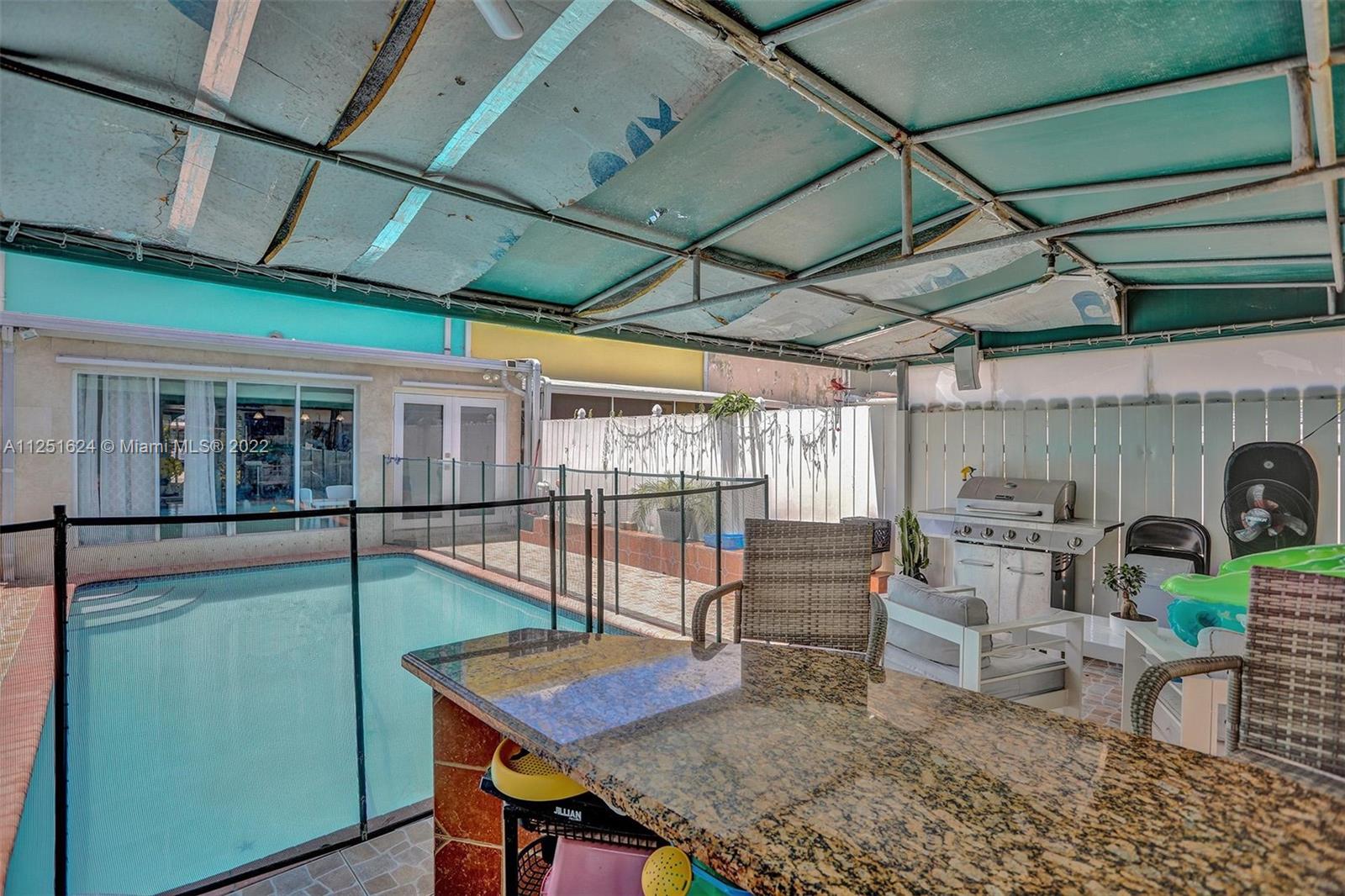 Spacious and completely remodeled Townhouse! Open floor plan with lots of natural light. Immaculately maintained kitchen with stainless steel appliances and snack bar. Separate laundry room well equipped with large high capacity Samsung washer and dryer. Impact windows, brand new A/C and all tile flooring are just a few of the many upgrades. Walk outside to your own backyard oasis. Private pool and outdoor kitchen perfect for entertaining friends and family. Another great feature is the peaceful Amelia Earhart Park is just outside your back door. This is a must see!