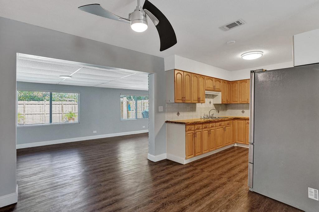 Updated Pool Home with a guest suite ideal for home office, in-law hangout, music room etc. Front Porch enclosed. New roof, new fence, new impact windows, updated baths and kitchen. Over $68,000 in property improvements. No rules No regs, pets welcomed and trucks and motorcycles ok too! East location great for beach and waterway access and shops and restaurants! Fully fenced yard with new fence. Florida Room overlooks pool patio area creates great lifestyle for Florida.One Car Garage, updated electrical. Driveway exceptional parking for cars, trucks, trailers, very flexible spaceSwimming pool area is a place to live the Florida Dream lifestyle! Set up the Grill and the blender and it's 5 o'clock somewhere! Perfect Pool Party house!