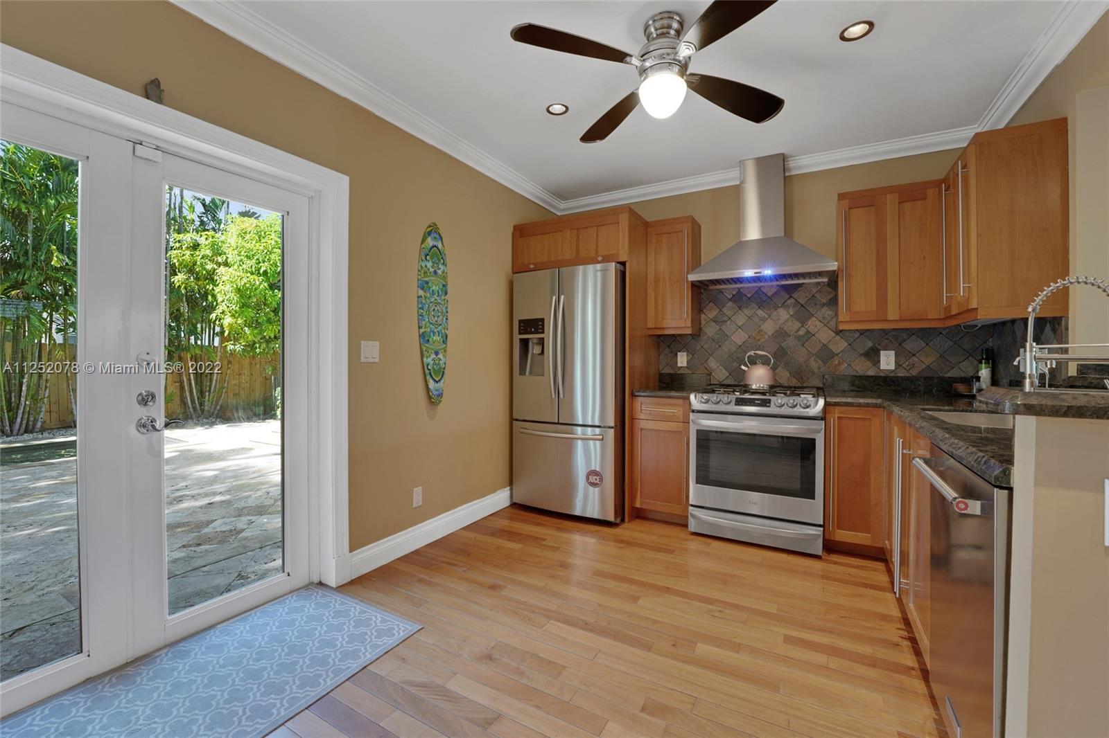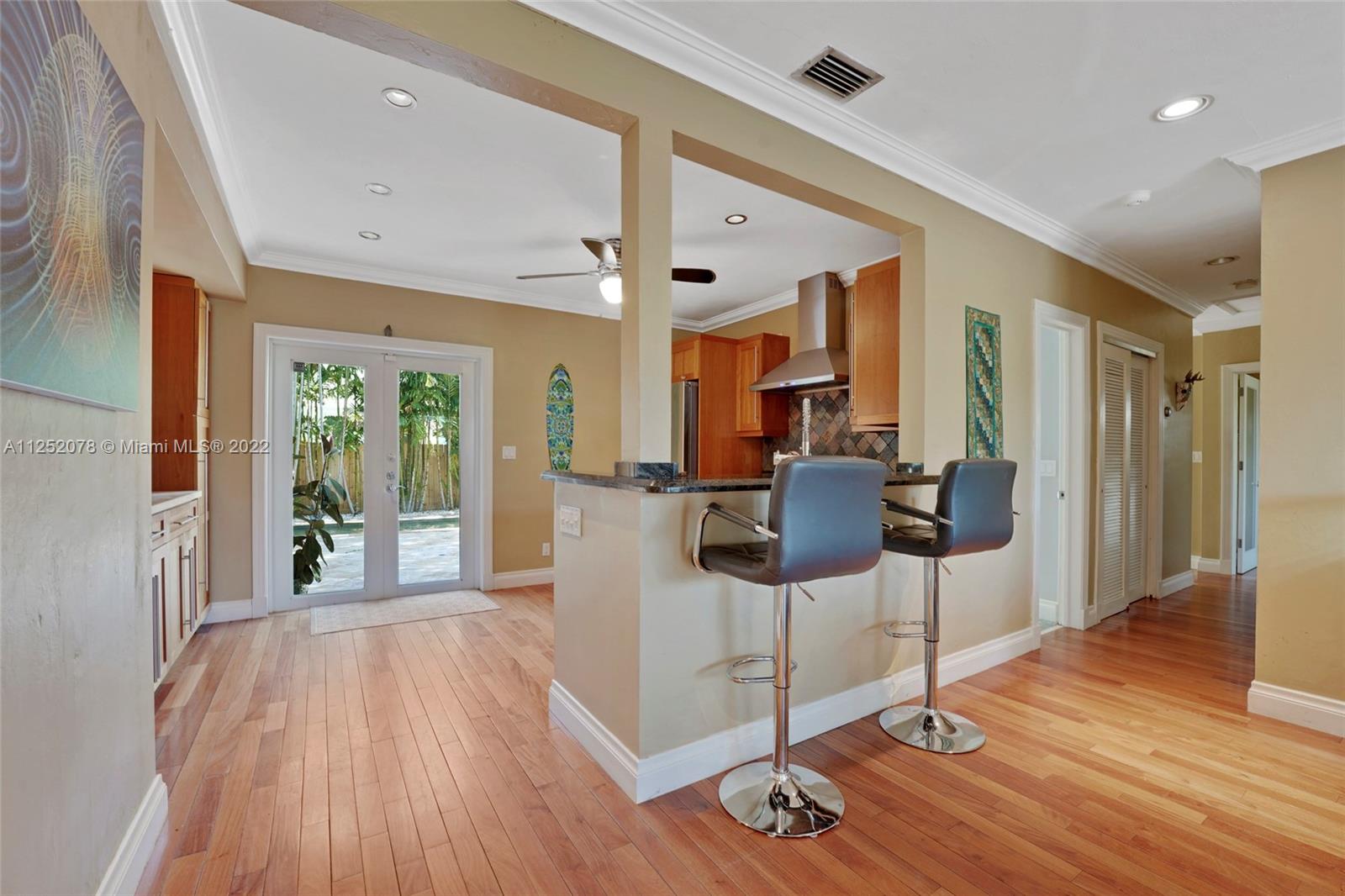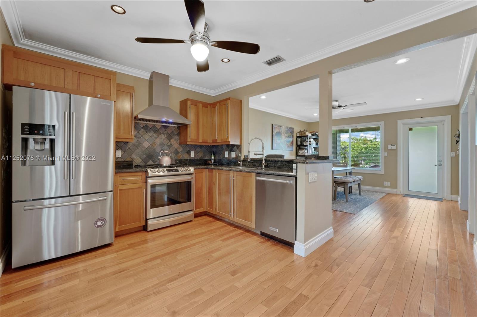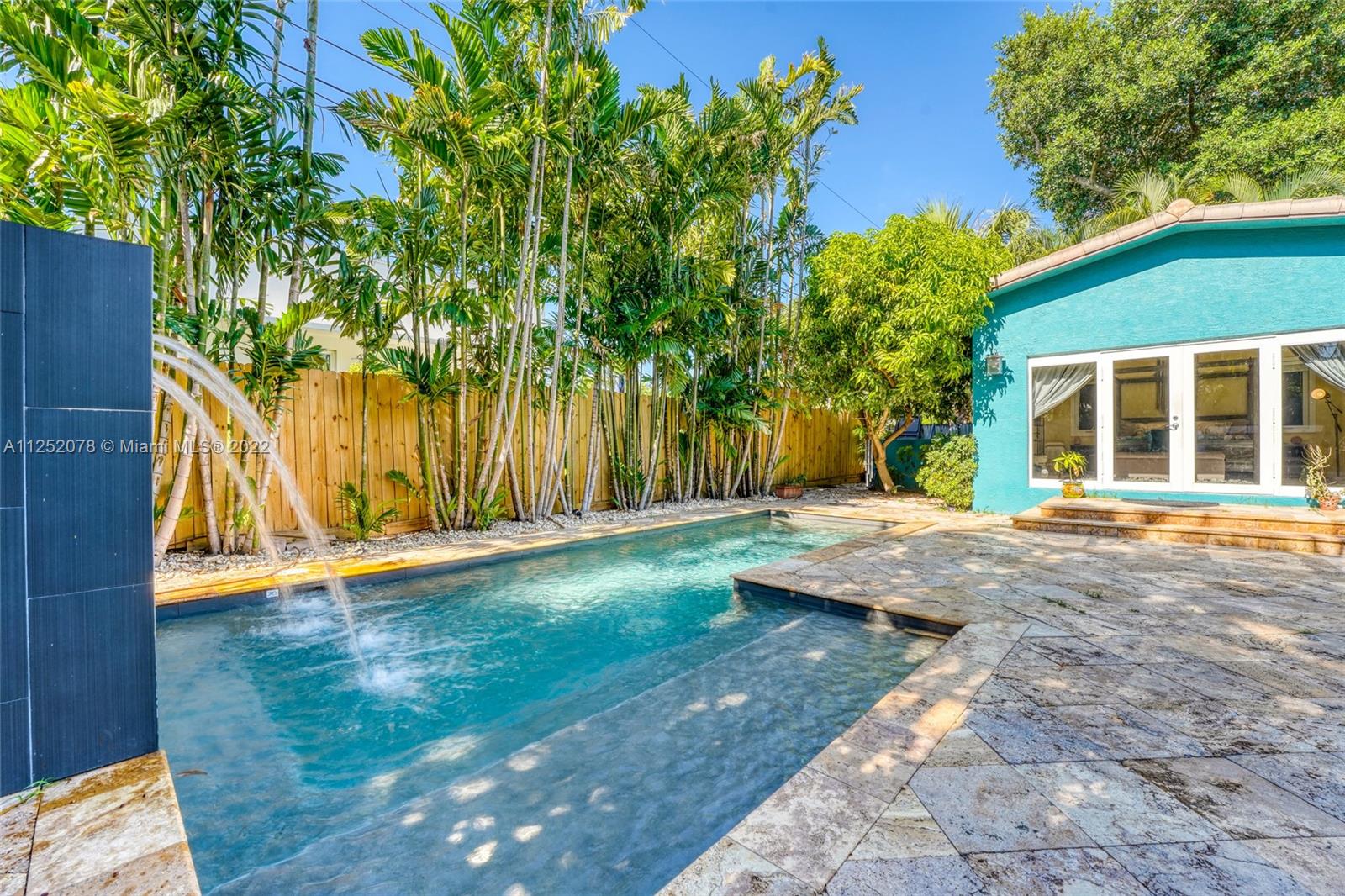 Welcome home to this 3 bedroom 2/1 bath house in prime location. Only a mile away from the Fort Lauderdale beaches and minutes to Downtown, Las Olas. Well kept home with extraordinary features and updates. Fully fenced in, private backyard with an amazing salt water POOL with waterfall features. Exquisite landscaping, palm and mango trees in the backyard. New sod and mulch and new Rain Bird Sprinkler system. Chef's kitchen with gas range and new appliances, butcher's block and wine cooler. REAL hardwood floors Spacious master bedroom facing the pool with over sized walk-in closet, jetted tub and walk in shower. New HVAC system. IMPACT Windows and doors throughout house and new appliances with oversized washer and dryer. Pristine condition and excellent location.