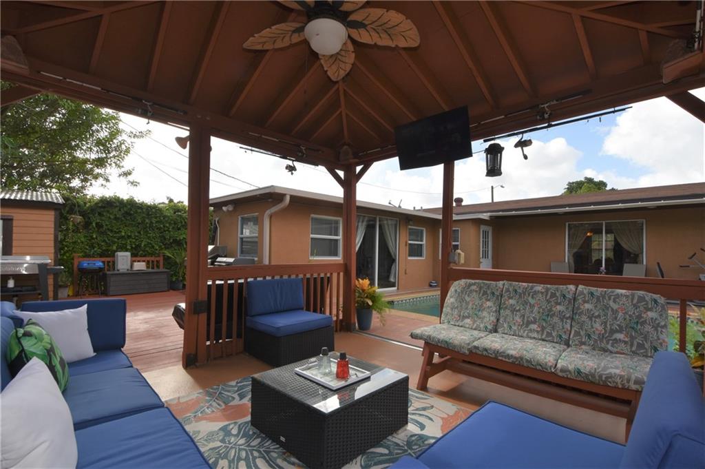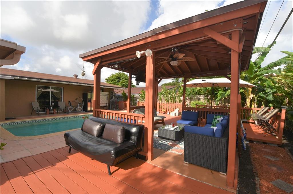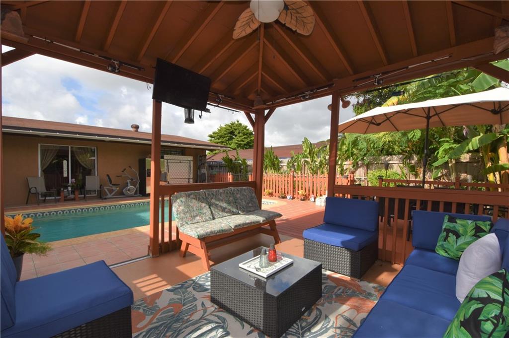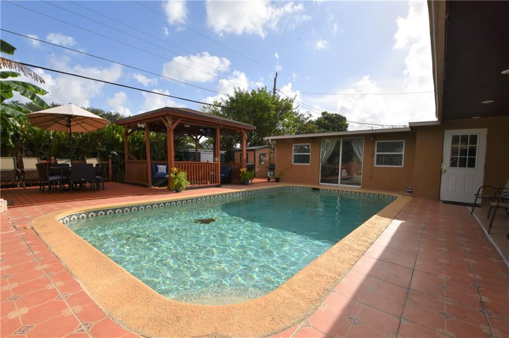 Beautiful pool home in centrally located area in Miramar! Come see this 3 bedroom 2 bath home with tile flooring, updated kitchen, pool and gazebo area made for entertaining. This home is also equipped with a ring doorbell, electronic deadbolt keypad, cameras, smart refrigerator. Just minutes away from major highways and shopping. No HOA in this community.