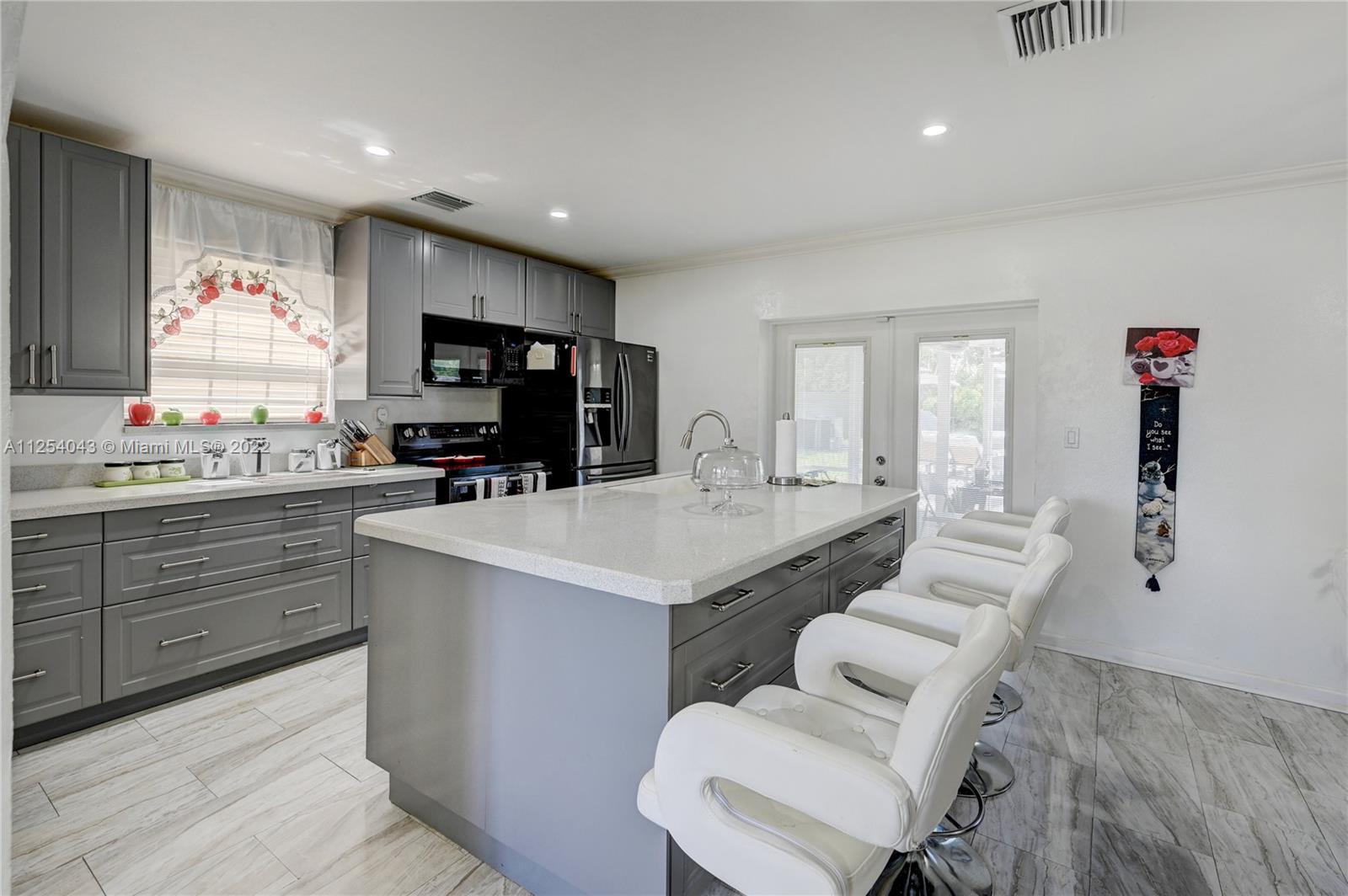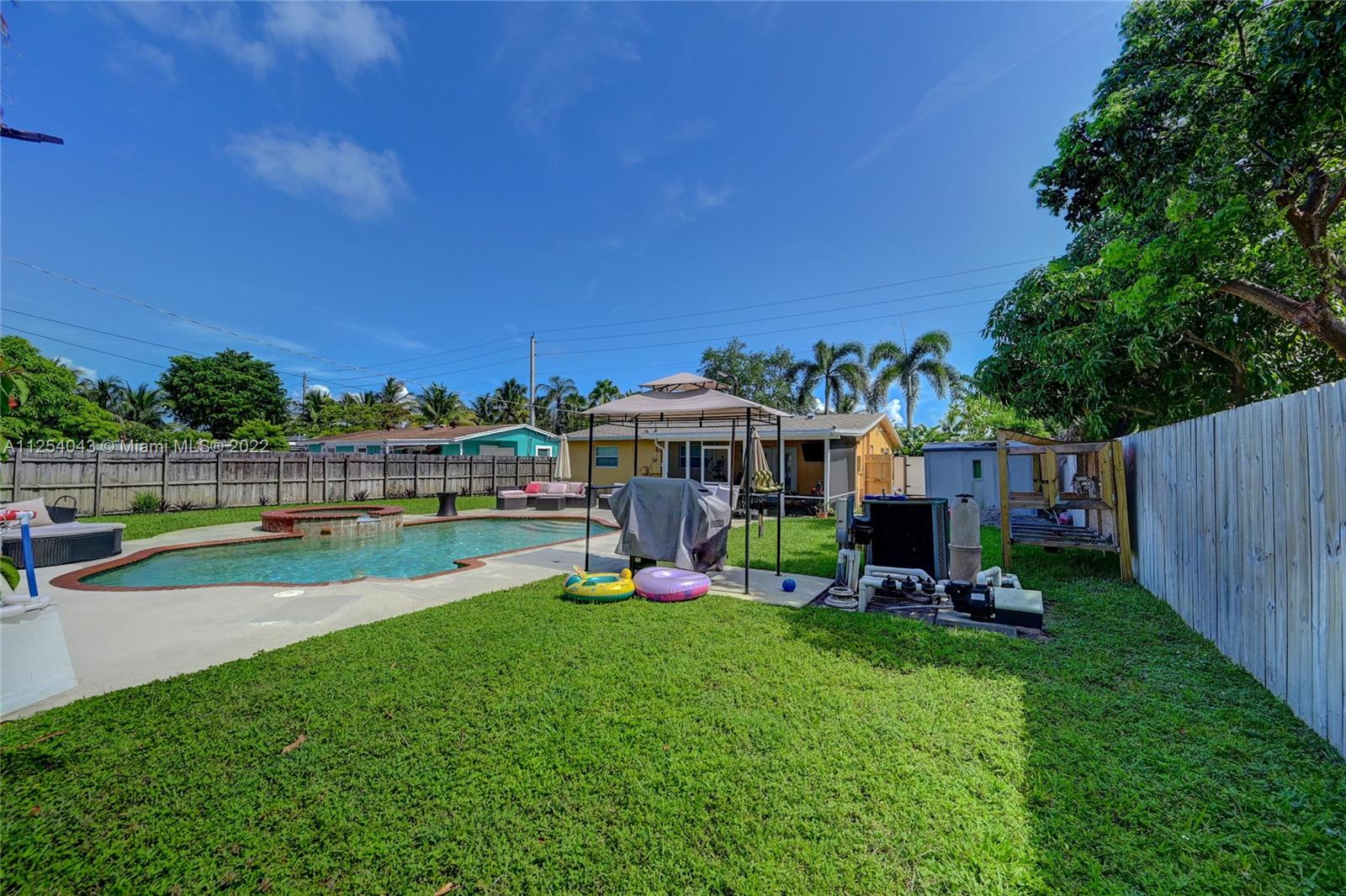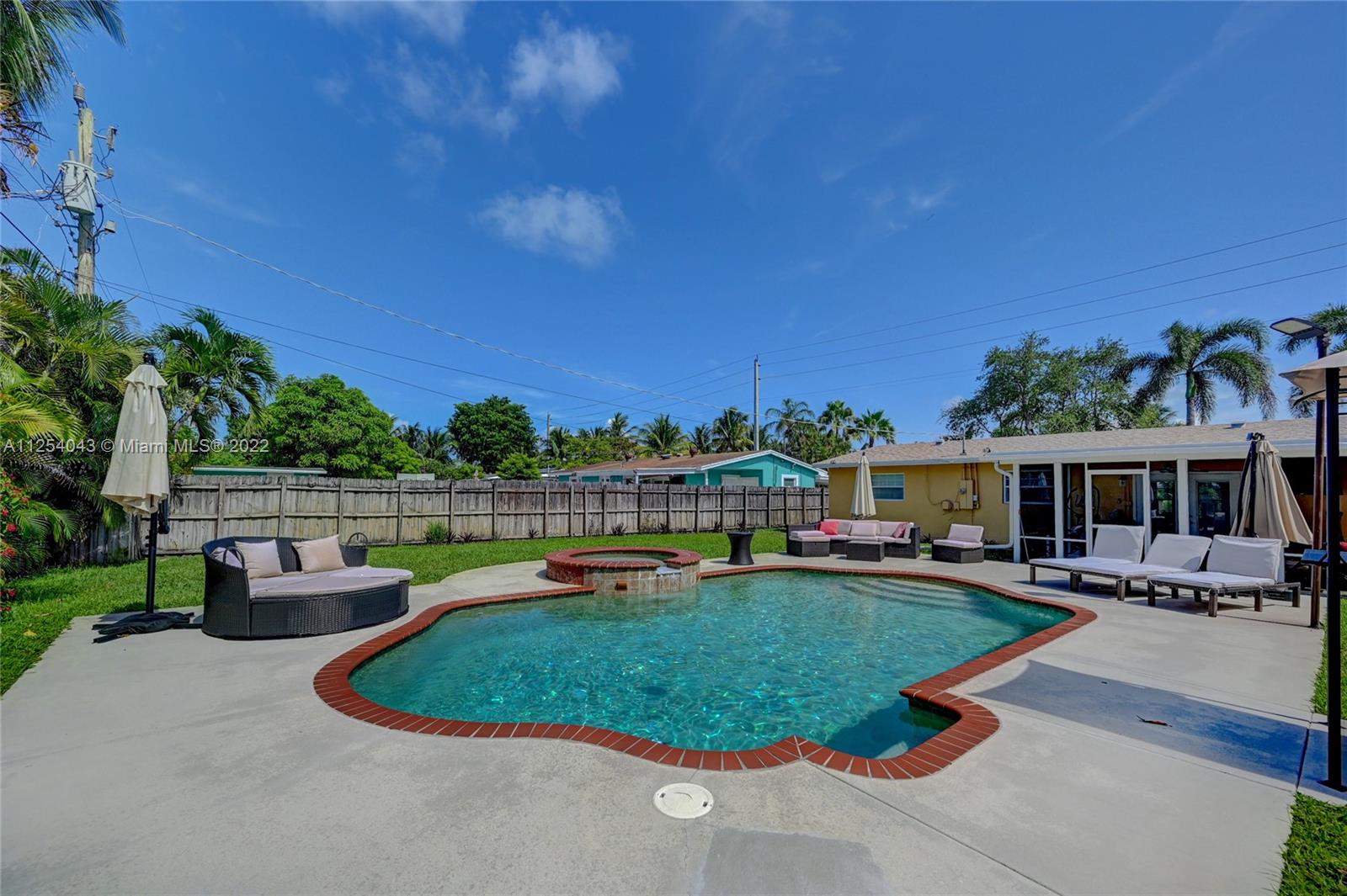 Come see this beautiful pool home in the heart of Pompano Beach. The home sits on an almost 9,000 sq. ft. lot and features: a split floor plan with 3 bedrooms and 2 bathrooms, new roof (2021), modern island kitchen with quartz countertops, new black stainless steel appliances (2021), well maintained AC (2014), tankless water heater, the laundry/utility room is conveniently located near the kitchen, white tile floors throughout, recently painted inside and out. Outside, enjoy the pool in the expansive backyard fully enclosed with a privacy fence, large area of concrete pool deck, screened in porch, more than enough room for your boat and toys. Centrally located! No HOA.
