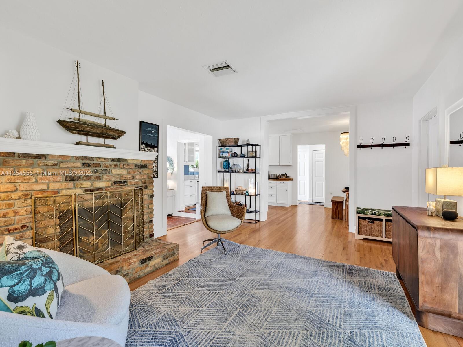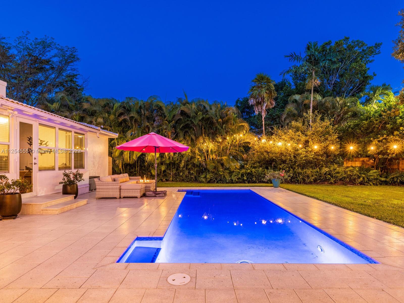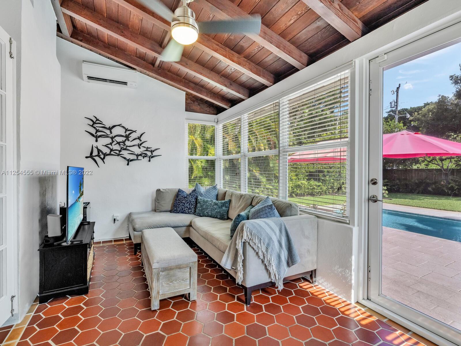 Welcome to Villa Blanca Miami Shores! Enjoy great indoor-outdoor living in this just-updated home and resort-style pool oasis on a private cul-de-sac! Delightful living with hip, large brick working fireplace that flows to dining and beautiful new kitchen, ready for you to whip up favorite recipes. Bright sunroom-media room with cool hexagon tile overlooks lush tropical rear gardens with sparkling saltwater pool and large entertainment deck. So fab, you’ll think you’re on vacation! Fire up the grill, invite friends and family and start the fun. Sweet dreams in split bedrooms—one new bedroom and new bath separate from two others and updated bath. Gorgeous wood floors, impact windows-doors, new appliances. Close to the excitement of downtown Miami Shores with great restaurants and shops.