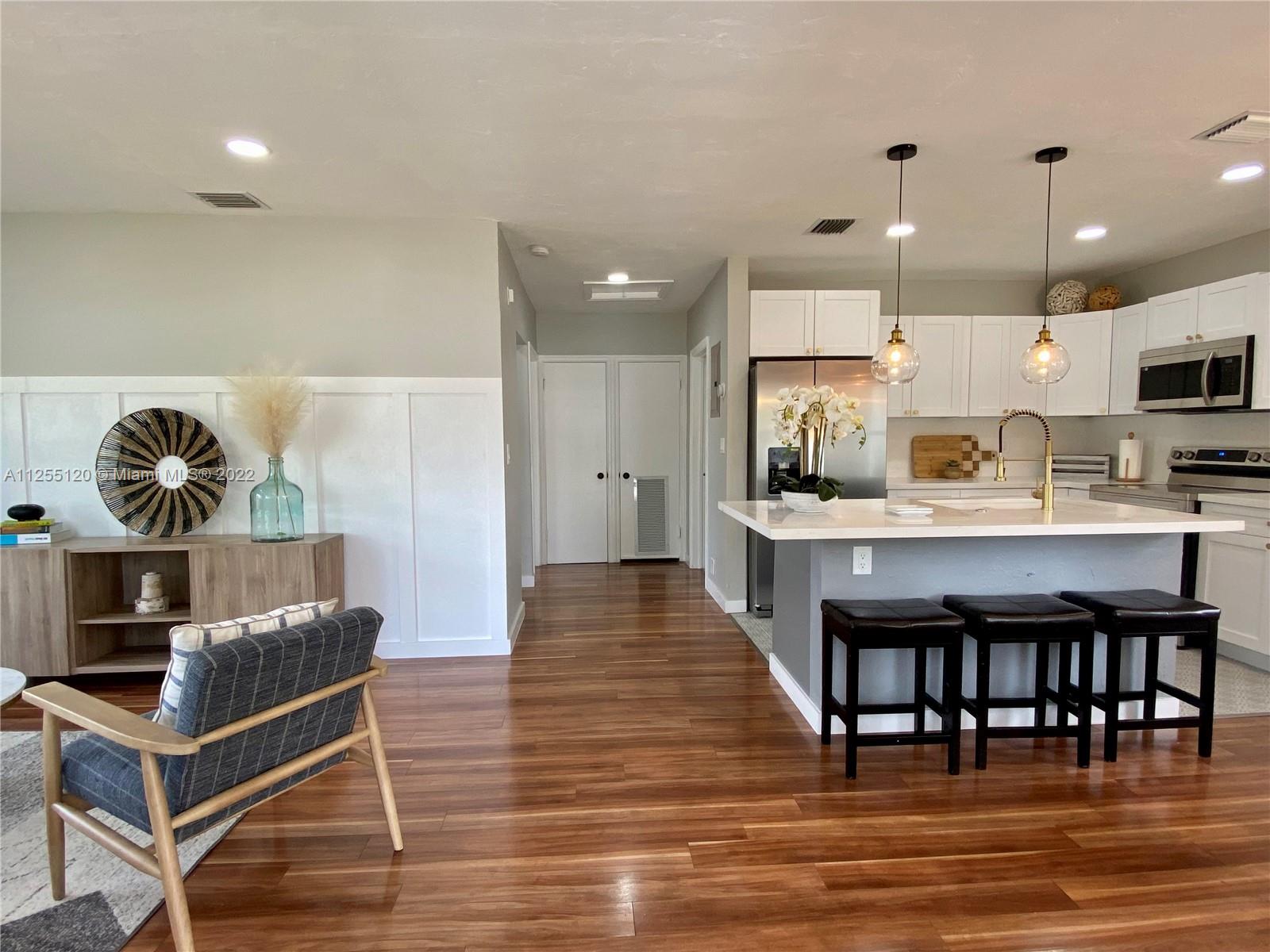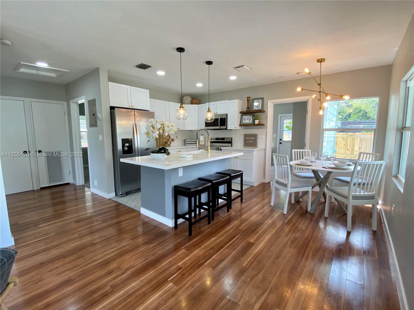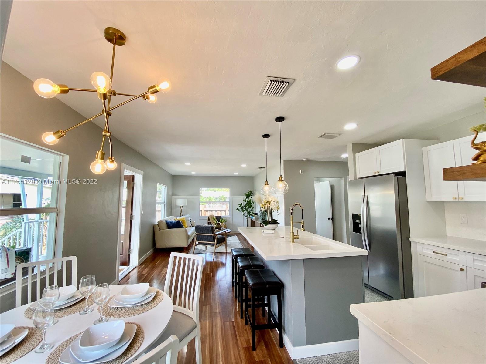 OPEN HOUSE 10.01.22 2-4 PM. This Beautiful recently renovated 3 bedrooms + Office and 2 Bathrooms house has new Floors, new energy efficient windows, new doors, new bathrooms, new kitchen with quartz countertops and brand new appliances. It also has Google Nest, Ring, and ADT Security System. Open paved patio with lush landscaping, ideal for BBQ and family gatherings! The residence has two gate entries with multiple parking spaces in front and a double covered carport in the back. IDEAL FOR AN AIRBNB!!.It is located 5 minutes from downtown Hollywood(walking distance) 10 minutes from the beaches and 15 minutes from Hollywood-Fort Lauderdale. Please submit all offers with Sellers Disclosure attached. Titile Company and Escrow to be used SUNLIFE TITLE