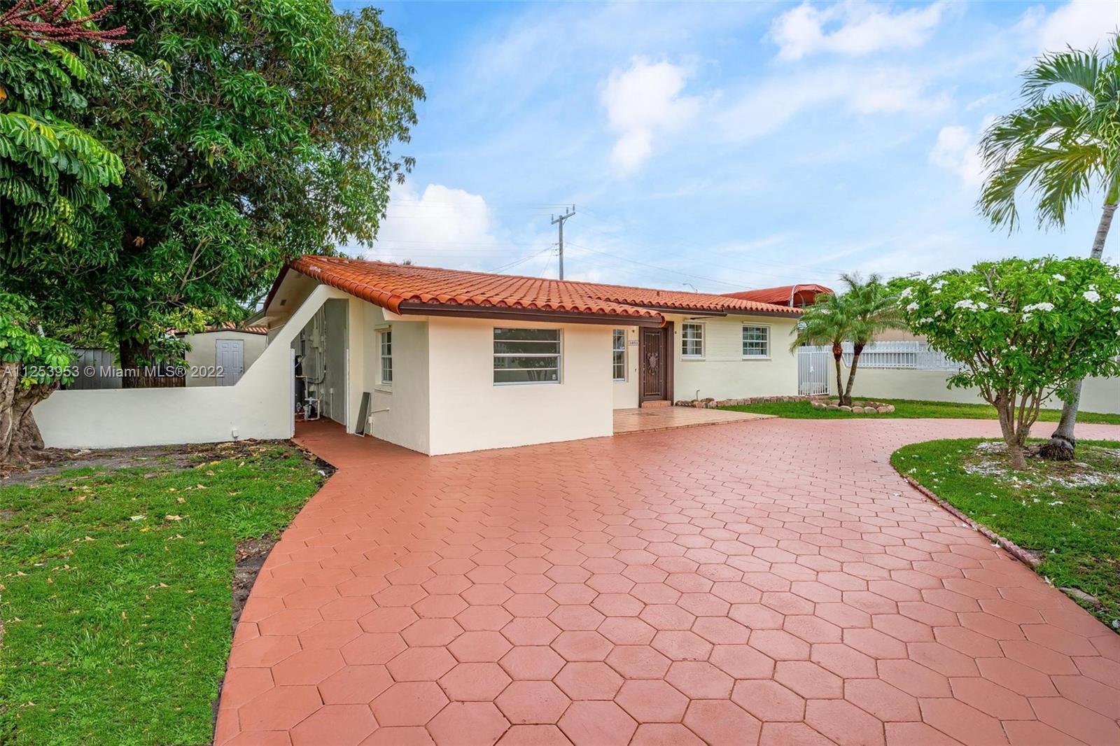 INVESTOR or LARGE FAMILY friendly. Refreshed home **5bedroom/3bath + Den/bedroom(6th bedroom) with large walk-in closet** circular driveway, **room for a pool**, detached Storage House,+ Storage Shed,+ Concrete Gated electric iron rod fence. Kitchen remodeled 2022, all interior/exterior Sherwin Williams freshly painted. A new roof was installed toward the back side of the house, 2 small A/C units are brand new and the 3rd A/C just serviced is prime! Elementary school across the street, Near Malls, A-schools, major highways and Opa Locka Executive Airport. NOT subject to appraisal. Reserve your time slot for a tour.