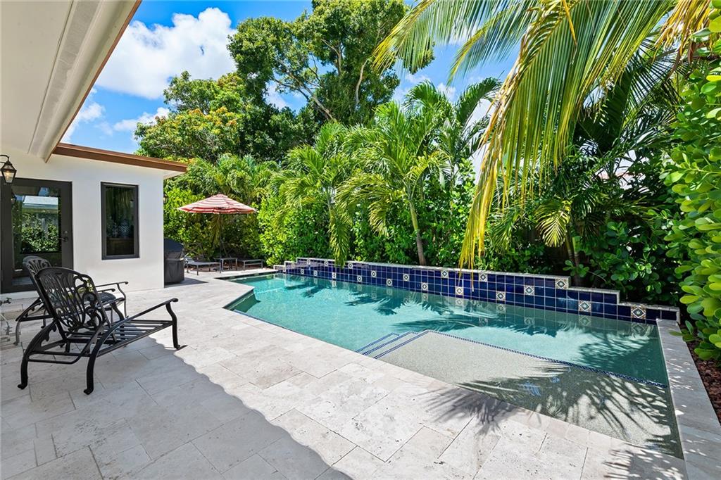 RIO VISTA!! Totally renovated - Move-in ready!! 3 BD l 2 BA with pool. Stunning construction project in 2019 adding master suite and bath, open floor plan, installed new roof, plumbing, electrical, new AC, hurricane impact doors and windows, European white oak floors, custom kitchen cabinetry, island kitchen, stainless appliances, gas range, quartz countertops, LED lighting, brick-paved driveway, privacy hedge in front of the home, spacious front yard