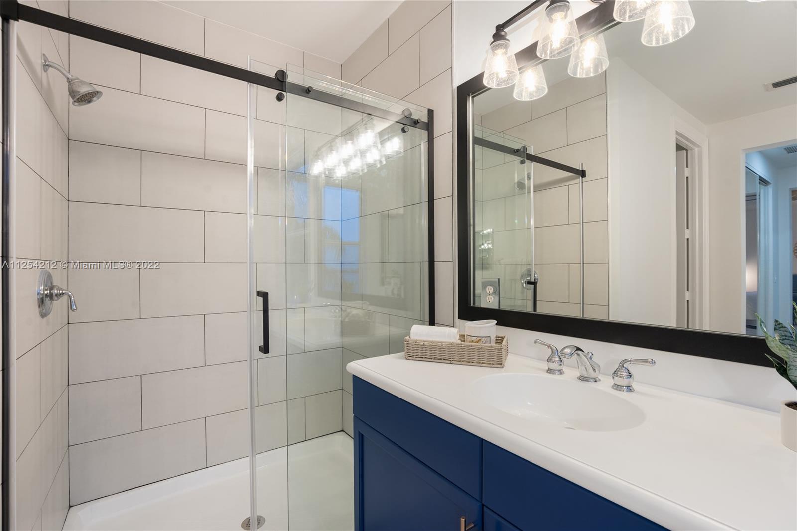 TSFT is proud to present Sunset Fall’s “The Alexandra”. Situated on a stunning 1-mile waterfront lot, this contemporary home features a modern farmhouse interior design alongside a practical 2-story floor plan ideal for most present-day families. Step inside and be enamored by your new custom kitchen area accentuated by an oversized table-style kitchen island with high-end quartz countertops and abstract pendant lighting. An entertainer’s dream, the kitchen overlooks the family room feature wall and your brand-new porcelain tile pool patio. Head upstairs to find 4 bedrooms (1 downstairs) including the owner’s suite with double walk-in closets. Built in 2007, Sunset Falls offers top tier amenities including a resort-style swimming pool & spa, tennis & basketball courts, and fitness center.