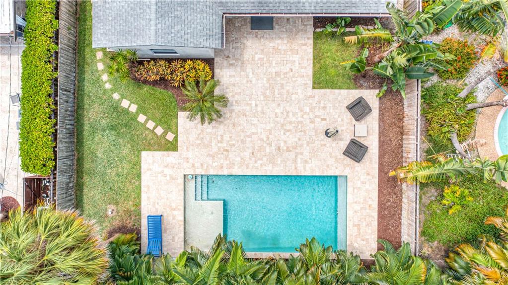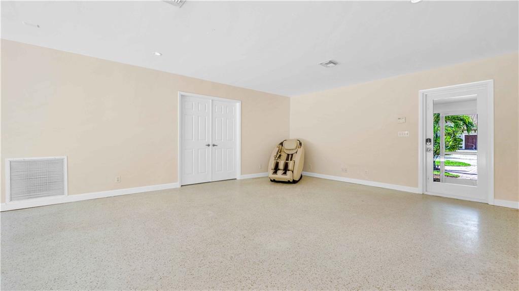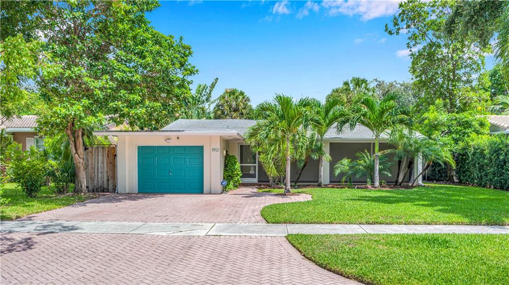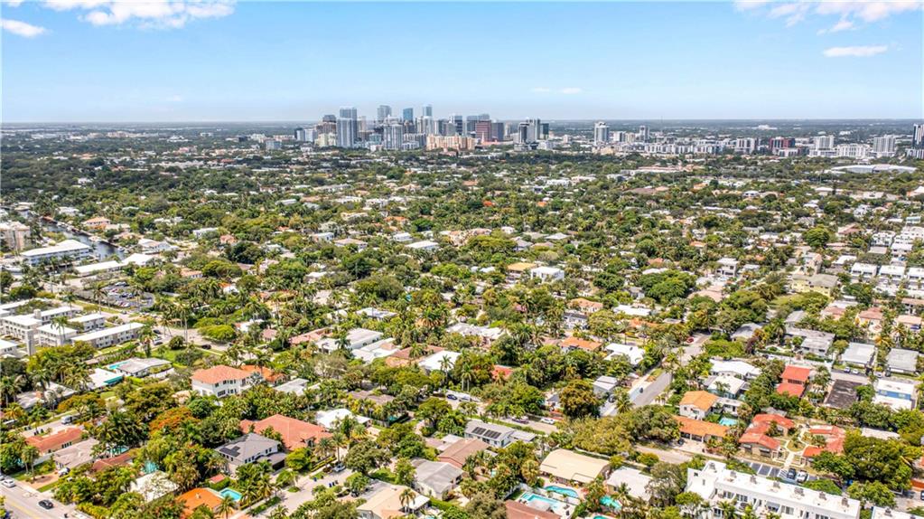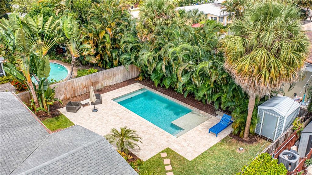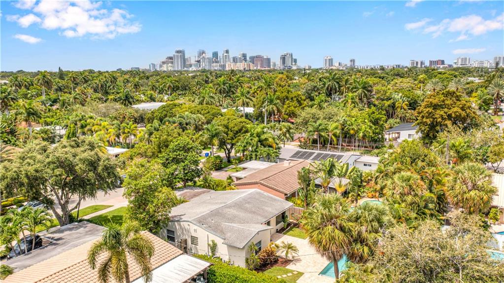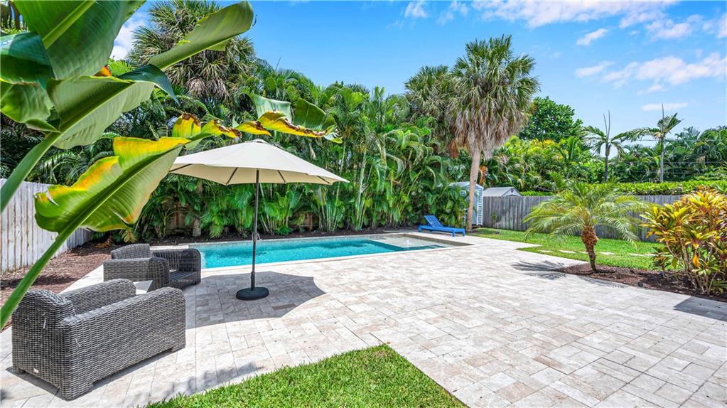 Bright and spacious home on a deep, private lot approximately a mile from the beach. Located in the Highlands section of Victoria Park, this cool mid century has sleek terrazzo floors, generously sized rooms, updated kitchen and baths, a home office, impact rated windows and doors. A wide driveway leads to a large, screened entry porch. An L-shaped living dining area opens through wide sliding glass to the pool and large surrounding yard Adjacent is a modern, eat-in kitchen with quartz tops fully equipped & including a wine chiller. Off the kitchen is a full laundry with wash sink leading to the air conditioned office cleverly constructed within the garage area allowing plenty of remaining storage area. The neighborhood is lined with sidewalks. Parks, stores and restaurants are all nearby.