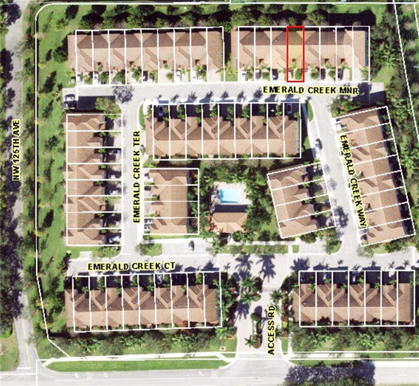 Well maintained 3 bed 2.5 bath townhome in exclusive gated community of Emerald Creek. Property boasts updated wood kitchen cabinets with granite countertop, stainless steel appliances, double vanity in master bathroom. Very spacious layout with wood floors on second level and tile on first floor. Secured neighborhood with clubhouse and community pool. Centrally located to major highways, Sawgrass Mall and American Heritage School. HOA Special Assessment for $65 per month for the next (x) months.
