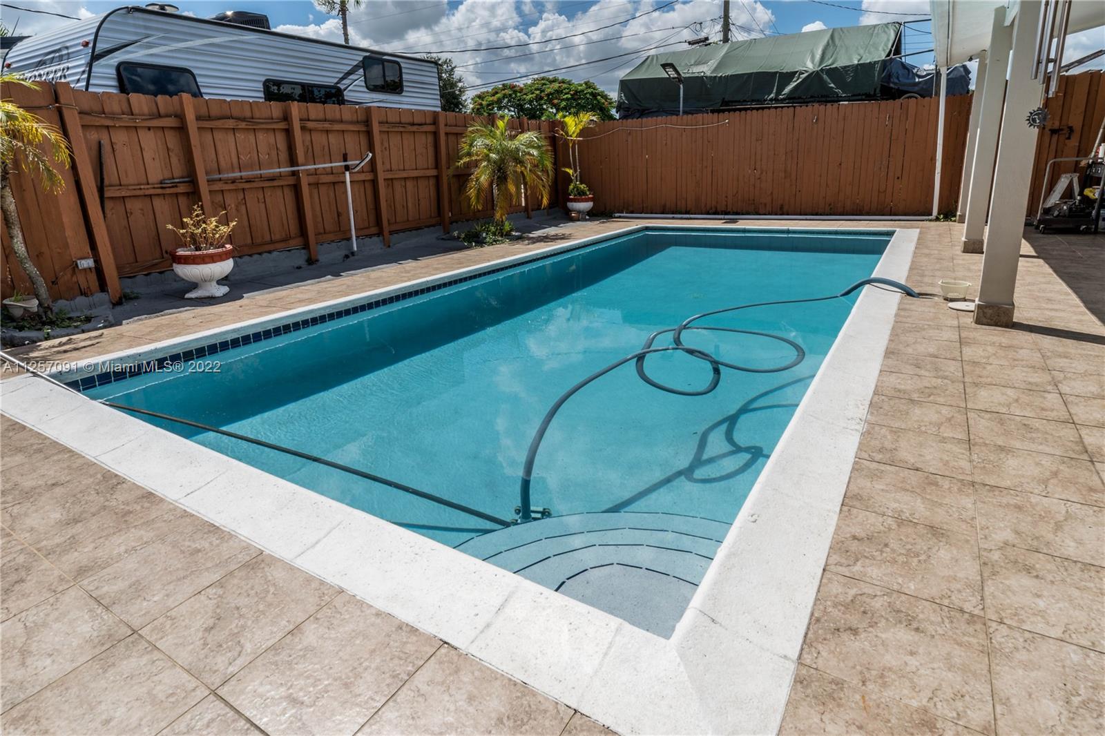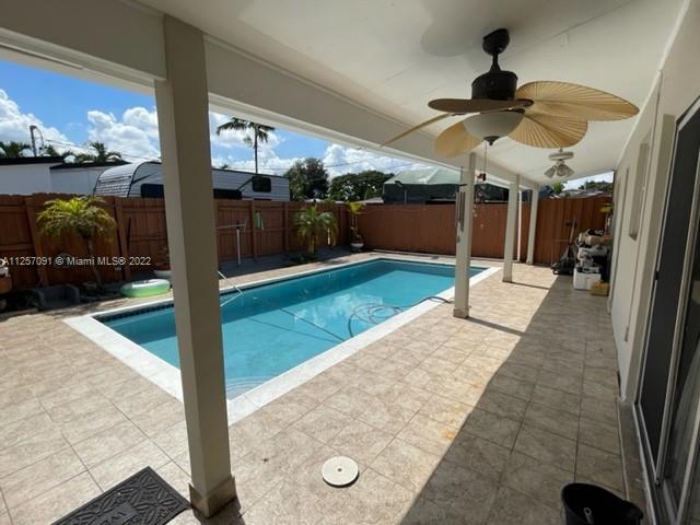 Great corner home. Centrally located. Huge fenced lot with private pool. Perfect open spaces to entertain. Open kitchen with plenty of cabinet spaces including pantry. Granite countertops. Completely tiled home. Laundry space in garage with plenty of storage space. New A/C and water heater, and pool salt pump. Large driveway with space for 8 vehicles. Partial Impact windows plus hurricane shutters. Enclosed patio includes extra fenced space where you could build in-laws quarter or have extra storage space. Roof life expectancy is over but roof is in good shape. Owner occupied. Easy to show.