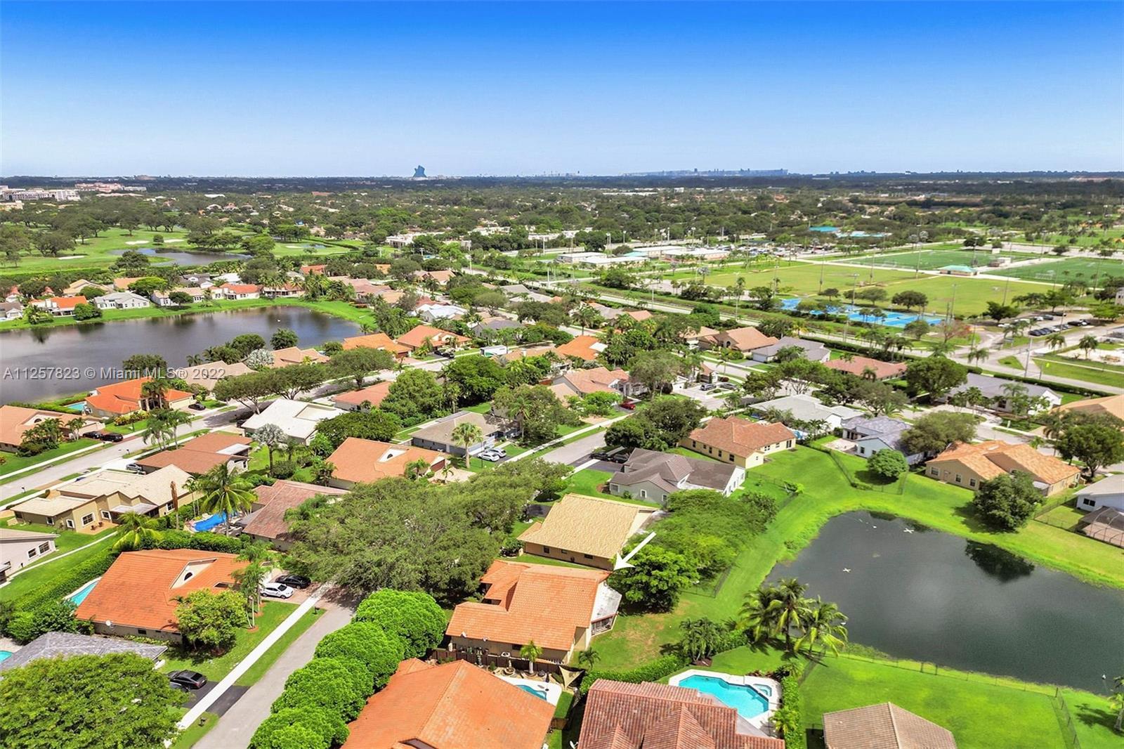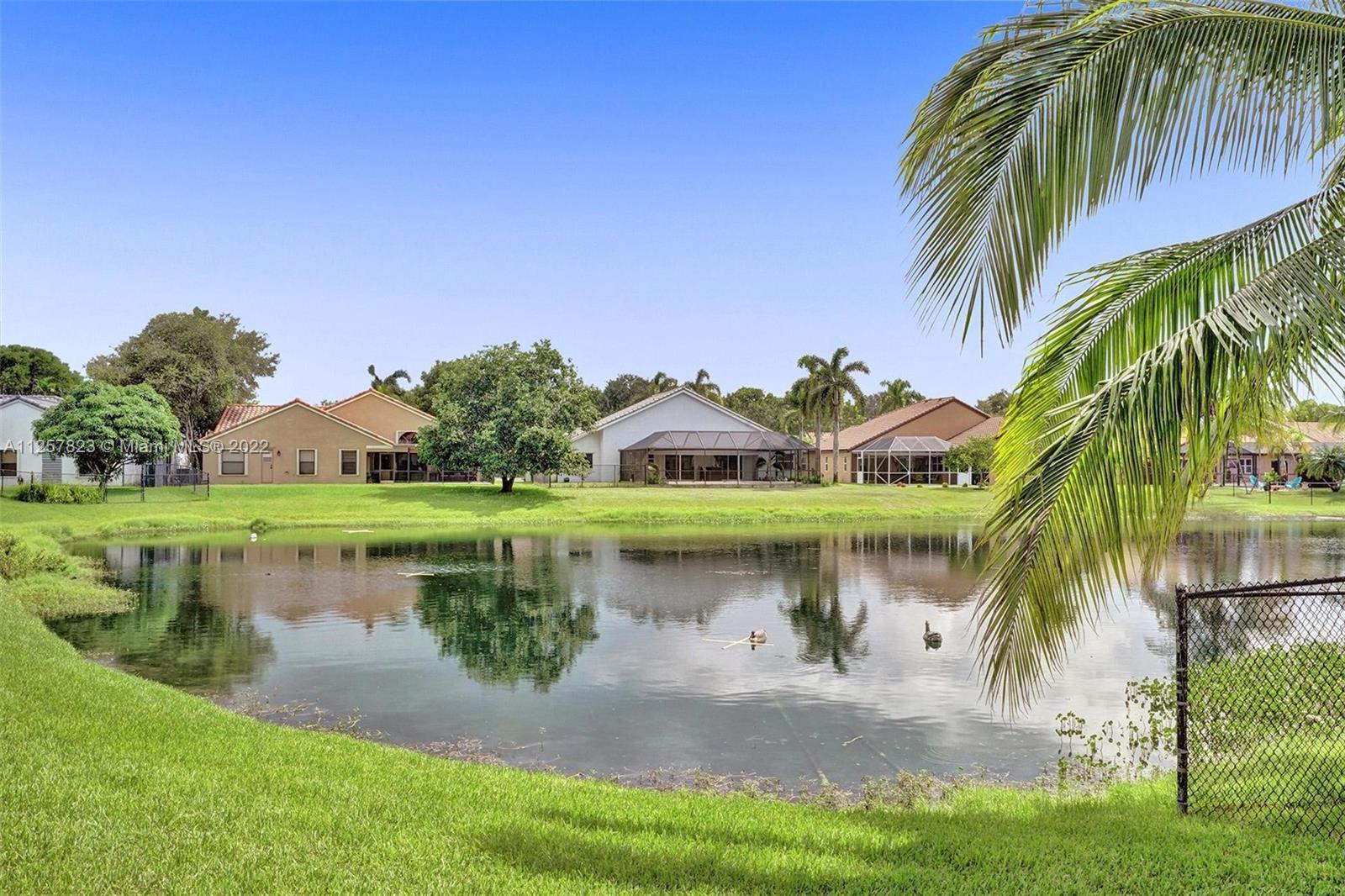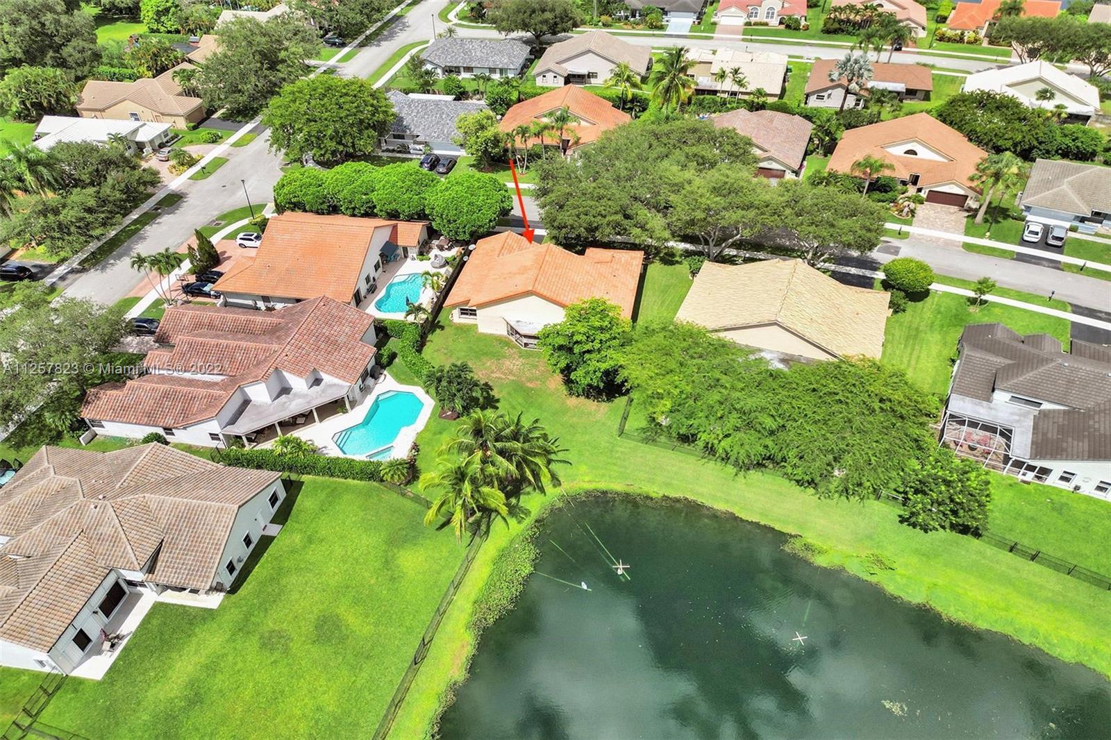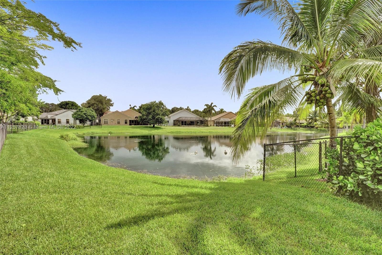 Located in one of the most beautiful communities in Davie that's like being in the forest. This fabulous lake-front house has fantastic views of the large lake from the Master, Kitchen, and huge patio. Interior features include tiled floors throughout living areas and wood flooring in all bedrooms, vaulted ceilings with tons of bright natural light. Separate dining, living, and family room, and separate Laundry room, walk-in closets. Open Kitchen with granite counters and snack bar and hardwood cabinets. Accordion shutters throughout the entire house including the patio. Hot water heater less than 2 years, A/C less than 5 years. Sprinkler water fed from lake, HOA includes access to the Community pool,Tennis courts, and basketball in the Forest Ridge subdivision.Steps from Elementry school