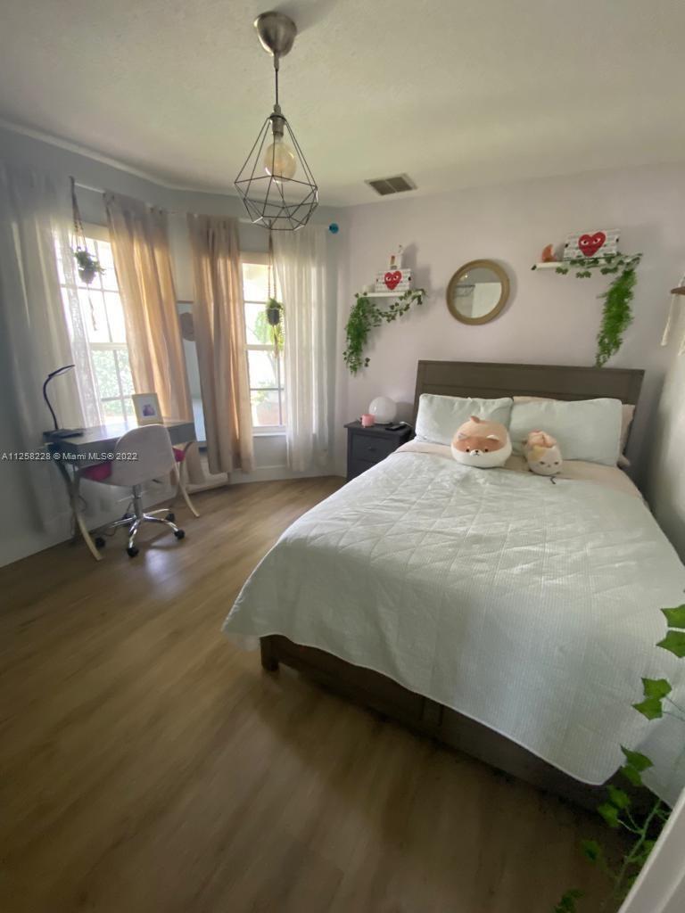 This beautiful house with 3/2 double garage a large patio in front of the lake remodeled bathrooms and floors in social area and vinyl floors in the rooms a remodeled kitchen, new washer and dryer, AC 4 years changed, new roof, heater 3 years electric, fruit trees, fence and security cameras can be rented and community pet friendly