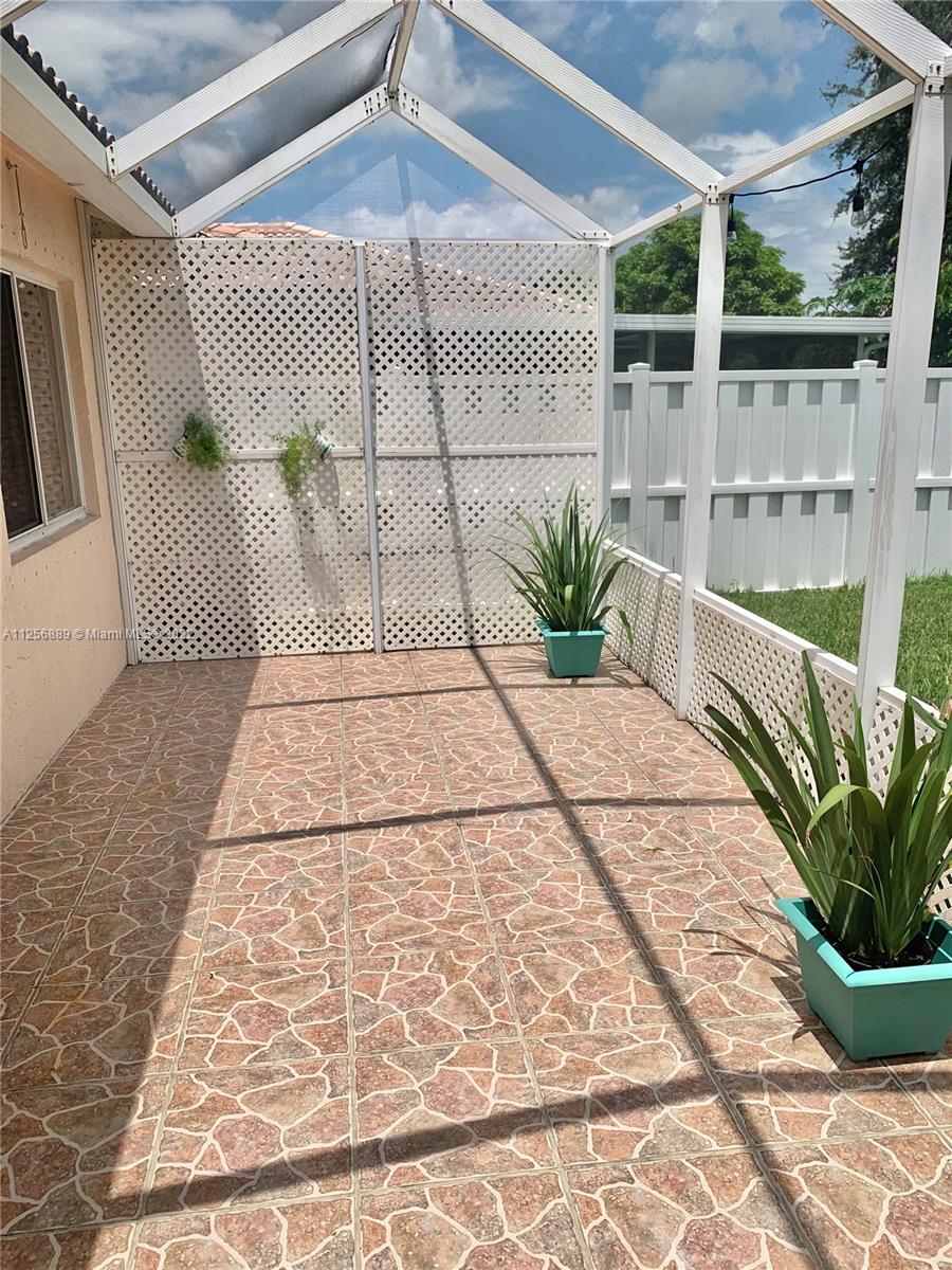 Welcome home to the highly desirable Villages of Renaissance in the heart of Miramar. This beautiful home features: 3 bedrooms, 2 bathrooms, vaulted ceilings, upgraded kitchen, stainless appliances, all appliances are fairly new, beautifully upgraded bathrooms, upgraded kitchen, walk-in closet, A/C and Heater about 4 years old, screened patio, big fenced backyard to build your pool. Community offers Pool, Tennis Courts, Playground. Very low HOA fee. Close to Major Highways, Dinning & Shopping Malls, Schools, Churches, Supermarkets, Hospital and much more.