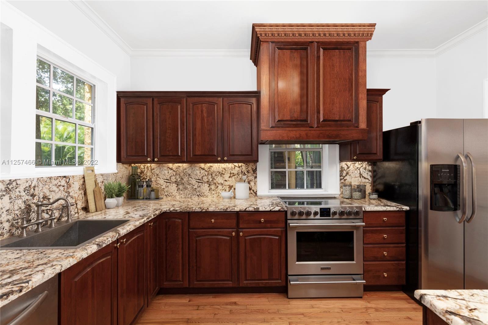 Designed by one of the architects of famed Vizcaya with impeccable woodwork, high ceilings, and large entertaining spaces, this historic estate on a waterfront street in Coconut Grove wows with character, charm, and warmth. Updated kitchen. Hardwood floors throughout. Serene, lush tropical courtyard and grounds. Two-story guest house with one bedroom apartment including full kitchen and separate laundry/storage. Ample parking for 5+ cars. Just steps from the bay and walking distance to parks, yacht clubs, and a top private school. Short drive to all the great restaurants, shopping and entertainment in Coconut Grove’s village center, Brickell/Downtown, and Coral Gables. **Some photos virtually staged/renovated. Please see unedited photos at the end of the series.