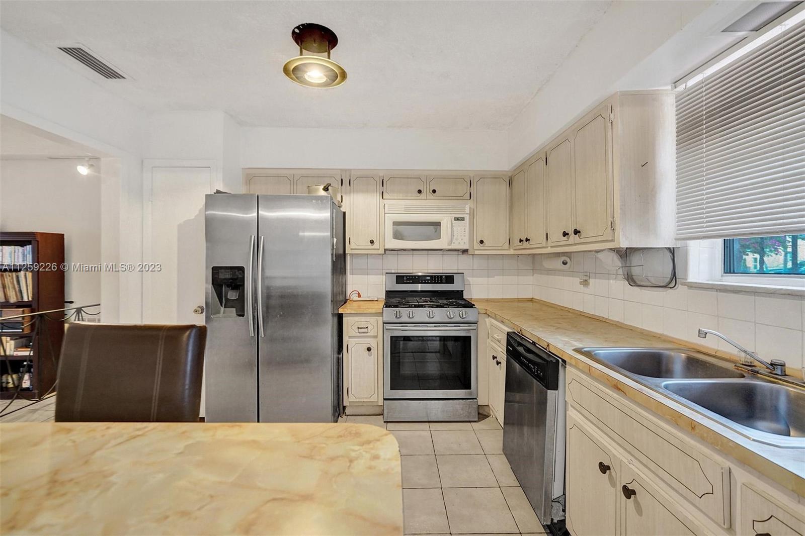 Amazing opportunity to make this spacious 3 bedroom, with one converted bedroom and a 2 bath, close to 1900 sq.ft. living space your own dream home. This lovely home in the Normandy Isle Historic District features approx 13 yr old flat roof, newer high energy efficiency air conditioner, hot water heater, gas stove with an open kitchen overlooking the inclosed outdoor patio and a great backyard with room for a pool. Circular driveway parking. Desirable central location. Walk or bike ride to near by restaurants, beaches, supermarkets, golf course and Normandy Isle pool and recreational center.