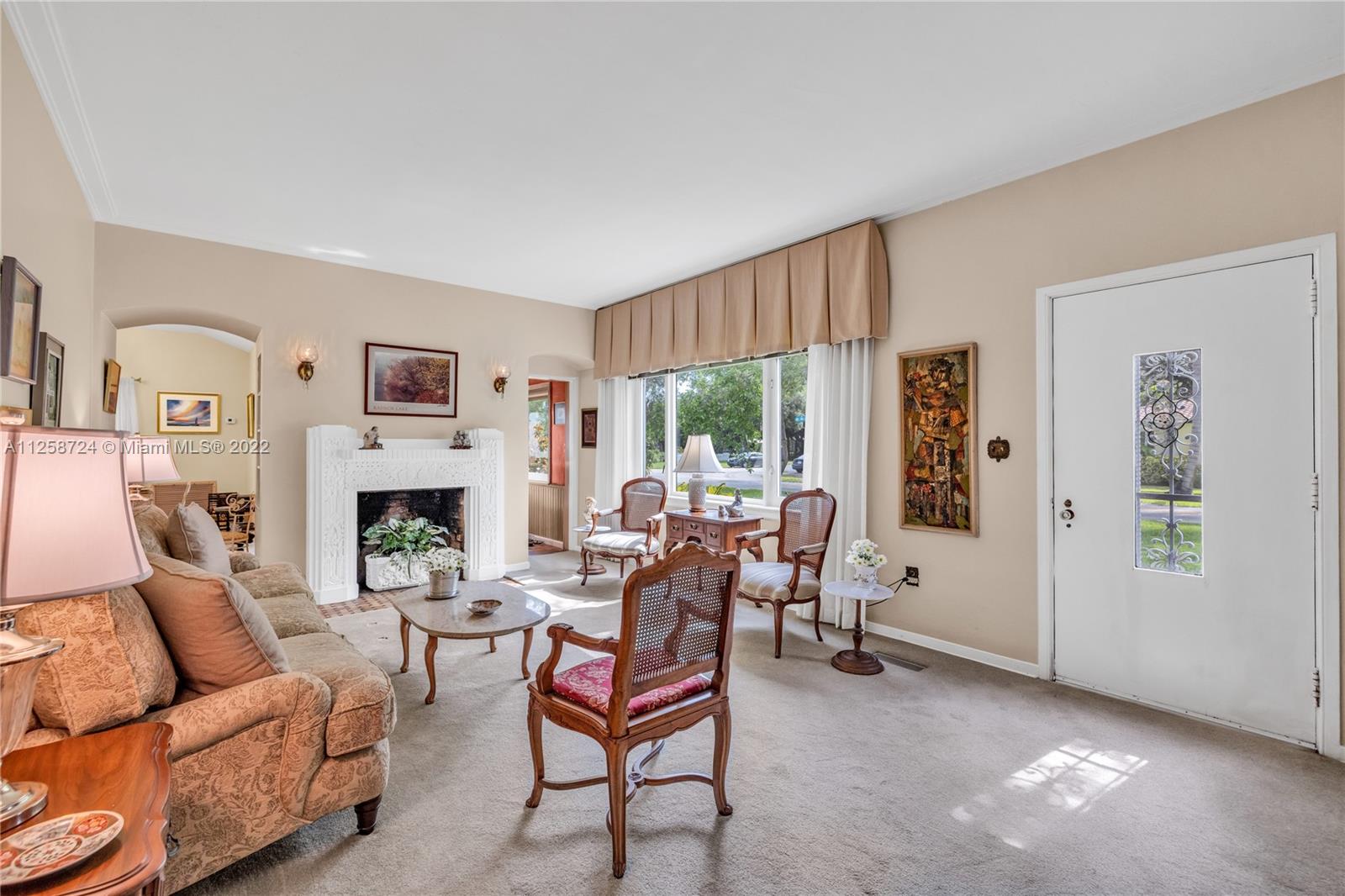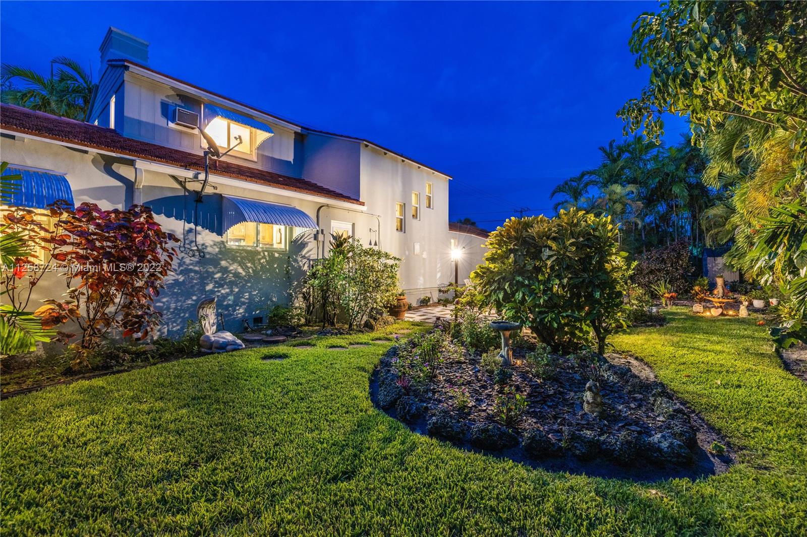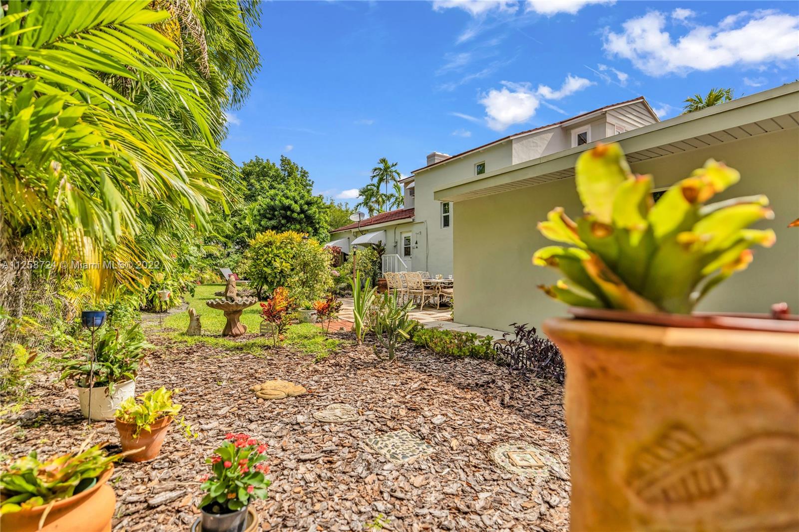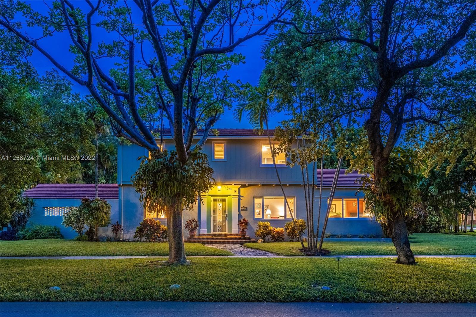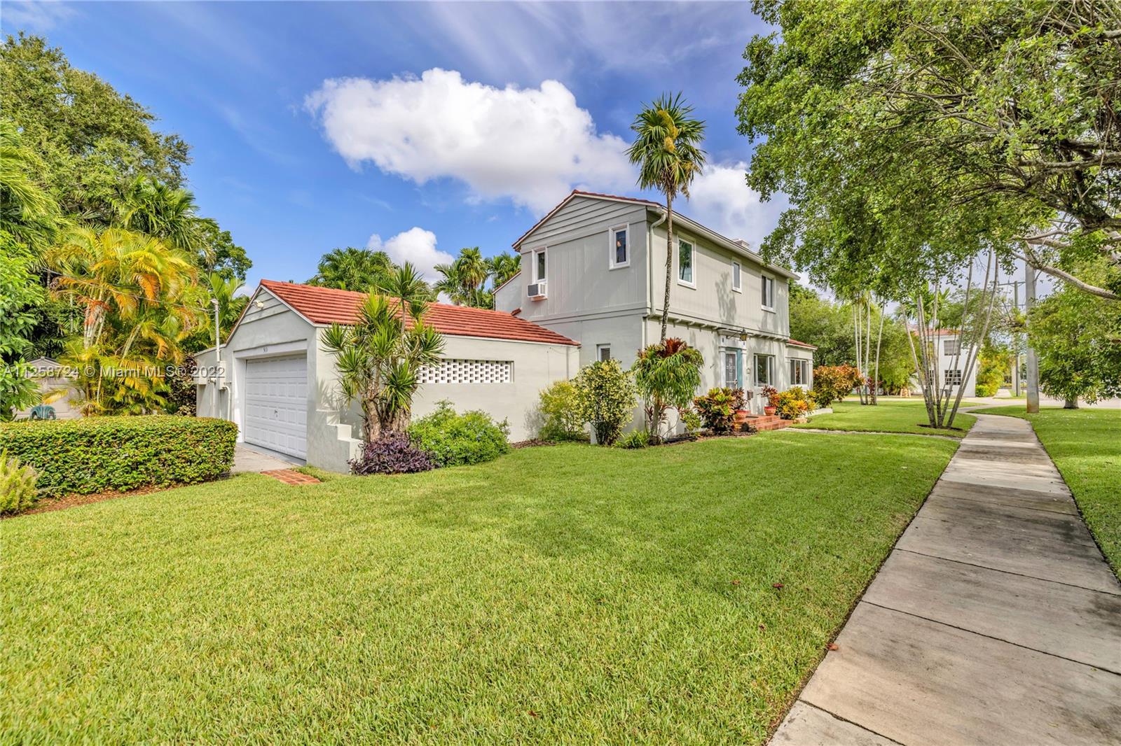 What you get is so much more than what you see in this stately Miami Shores Classic! This grand 1934 home with high ceilings, spacious rooms, iconic “love birds” carved Art Deco fireplace and great wrap-around gardens awaits your personal updates. Expansive formal living opens to bright sunroom, perfect as home office or media room; large dining; galley-style kitchen with door to lush rear relaxation and entertainment gardens, including a separate flex workshop-cabana space, great as home gym, office or zen den. One bedroom and one bath downstairs, two large bedrooms and an Instagram-ready violet deco “purple-passion” bath upstairs, impact windows-doors, two-car garage and room for expansion and pool. Endless possibilities await in a great location, just a block to downtown Miami Shores!