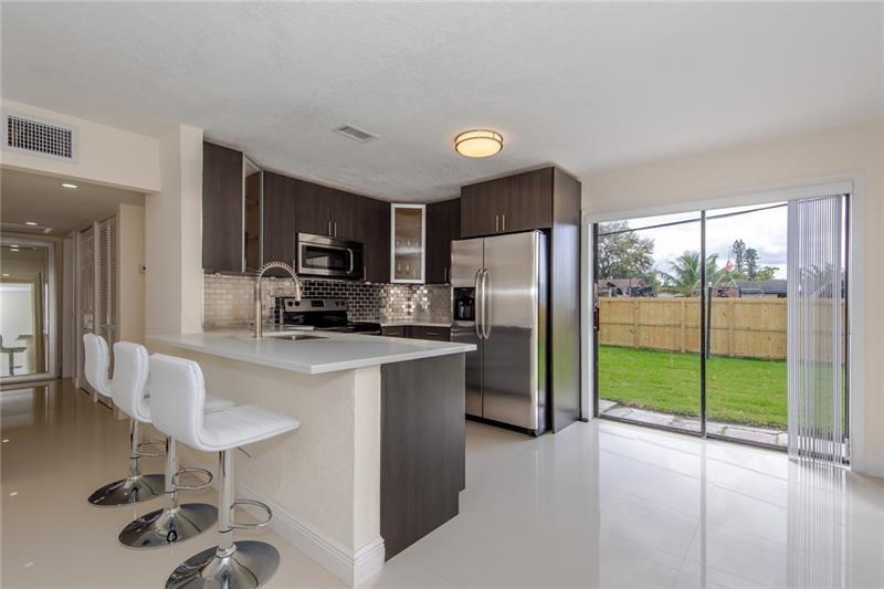 Beautiful 3 Beds / 2 Full Baths home totally upgraded in up and coming neighborhood in Davie! Porcelain floors throughout, kitchen w/ modern cabinets, quartz counter tops, back splash, top of the line s/s appliances, light fixtures, ceiling fans, knockdown walls, Remodeled baths w/ modern vanities, frameless shower doors, faucets, fence backyard for more privacy, room for pool, finish laundry room w/new washer & dryer, New water heater 2022. Great location, NO HOA!! Close to Colleges, FIU, FAU, BCC, UM, NOVA, minutes to FFL, Beaches, major highways and more.