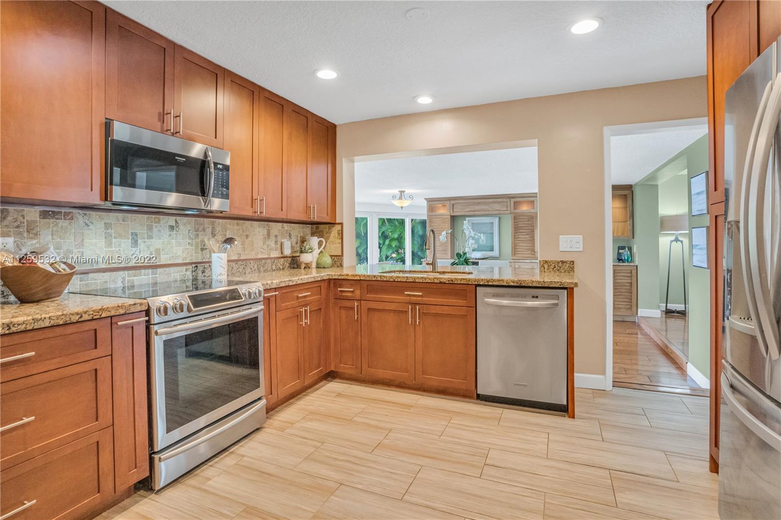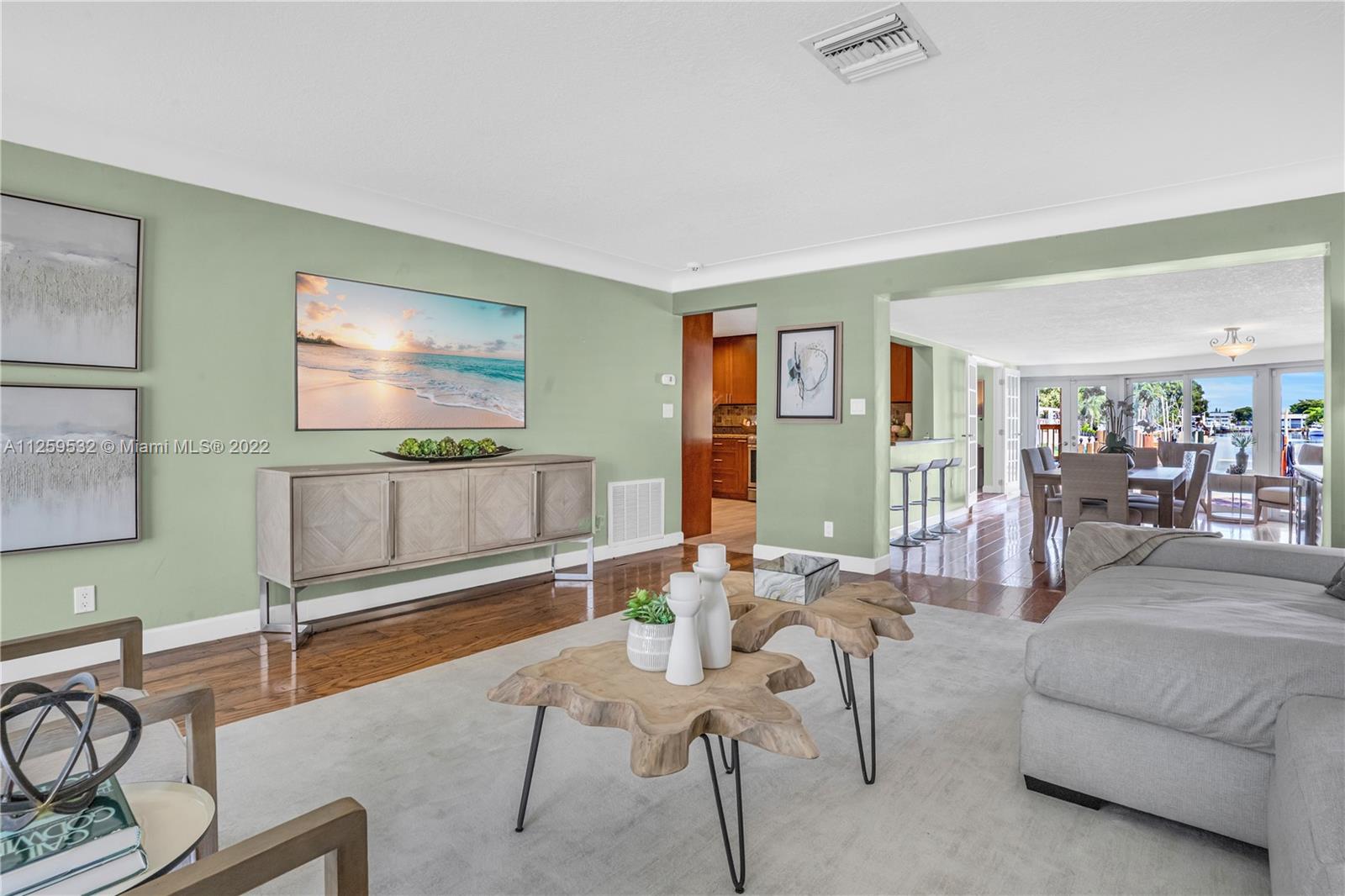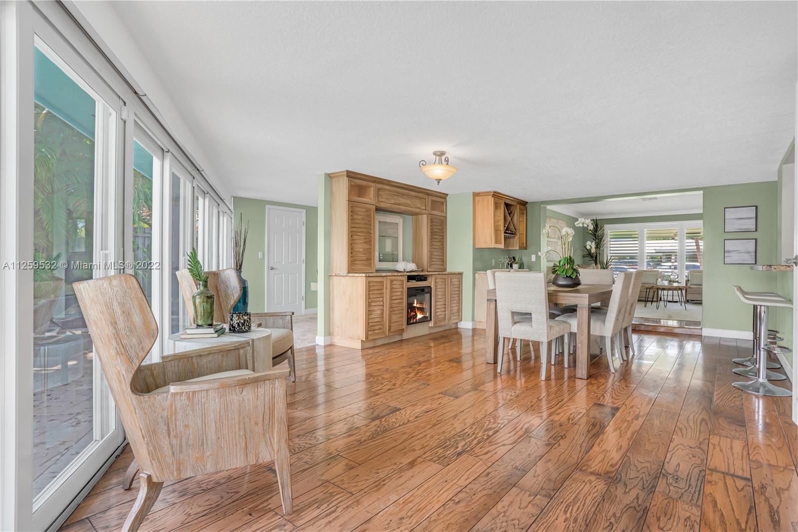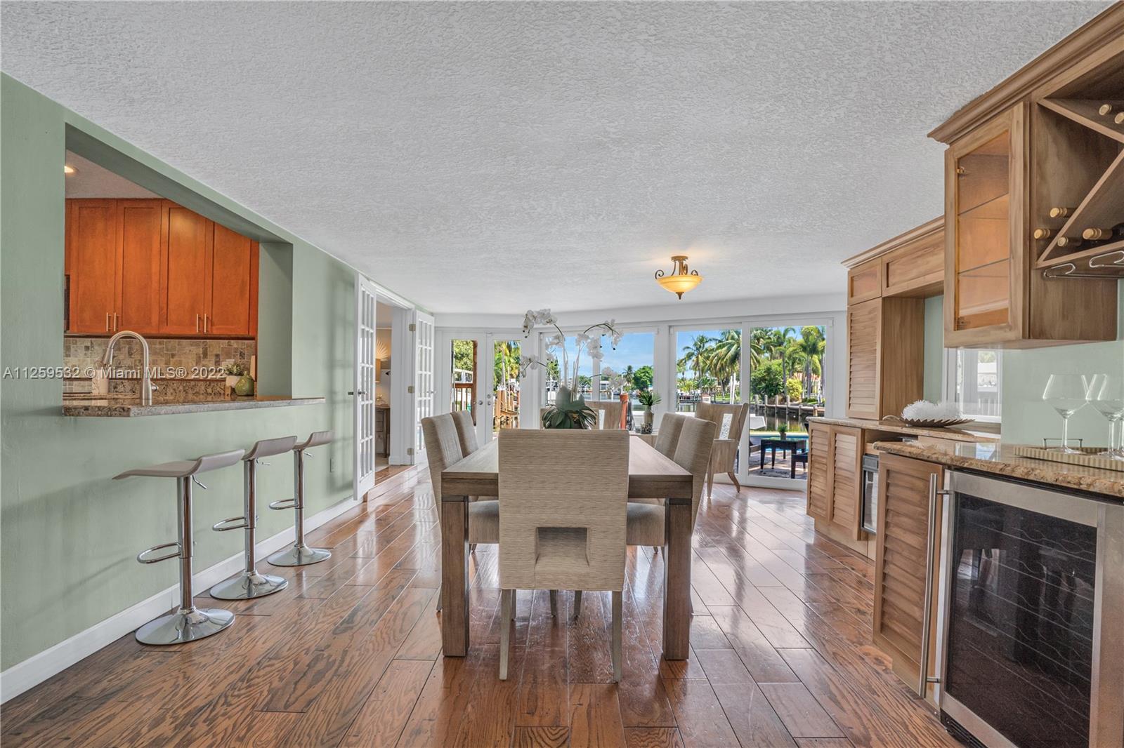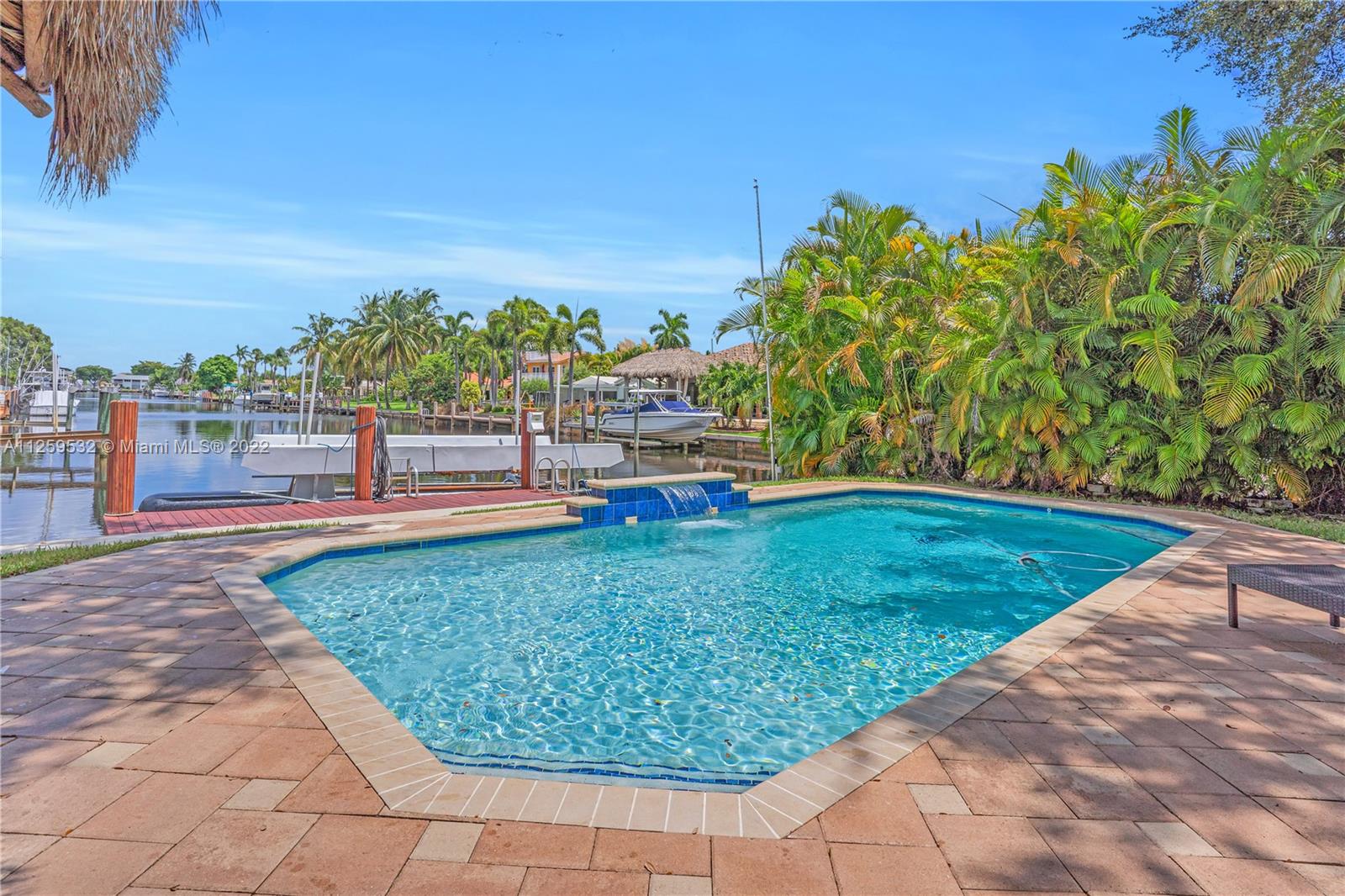Charming updated waterfront pool home in Pompano Beach! Stunning water views from almost every room, wood & tile floors throughout the living areas w/ great natural light. Well-appointed kitchen w/ granite countertops, solid wood cabinetry, stainless steel appliances & open bar to the dining room. Double master suites, w/ large walk in closets & private bathrooms w/ the main featuring jacuzzi tub, extra large shower & double vanities. Indoor outdoor living under the waterfront seminole tiki hut, saltwater pool w/ waterfall & patio that opens from the wall of impact glass doors. 55' of waterfront, 2016 seawall, dock has 60amp hook up, quick ride to Hillsboro Inlet, closest fixed bridge being raised by +/-27". Full home generator included. Close to the beach, shopping, dining, and new pier