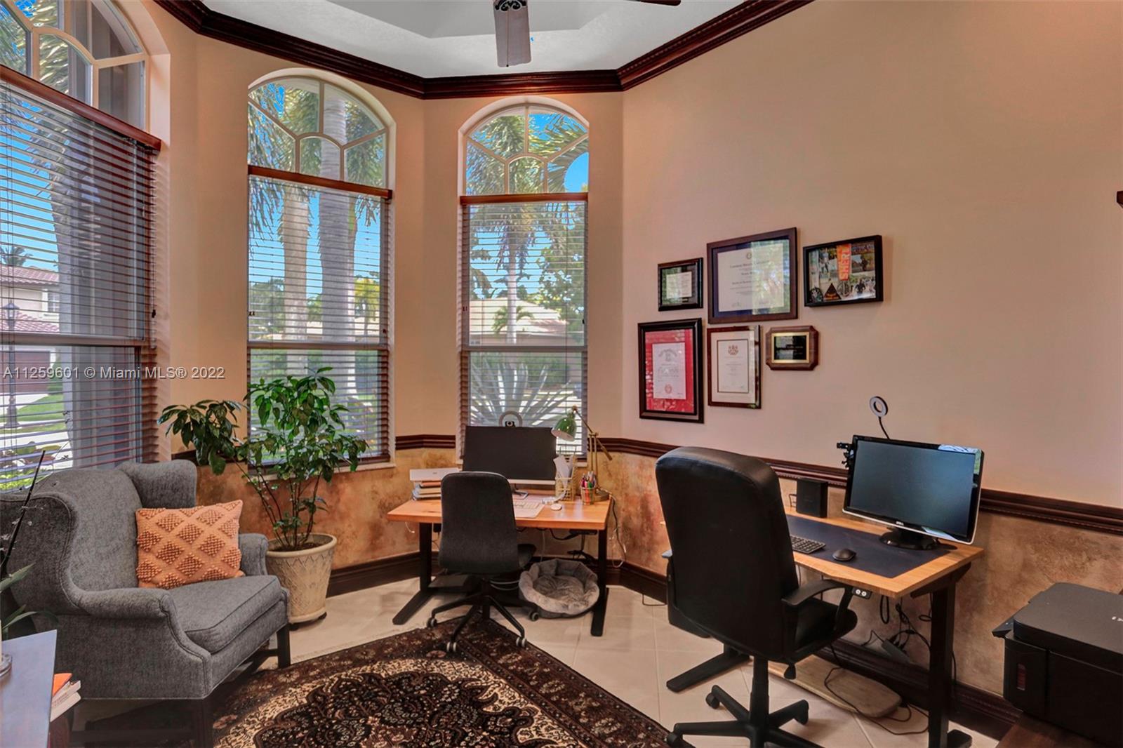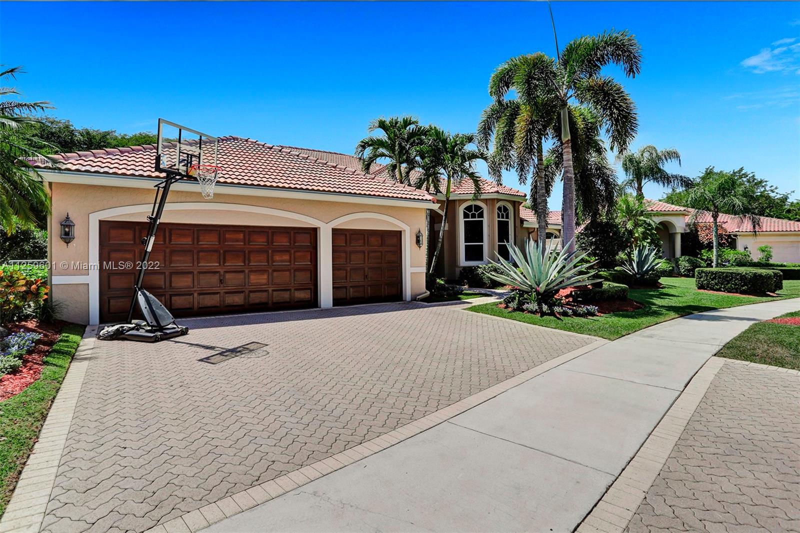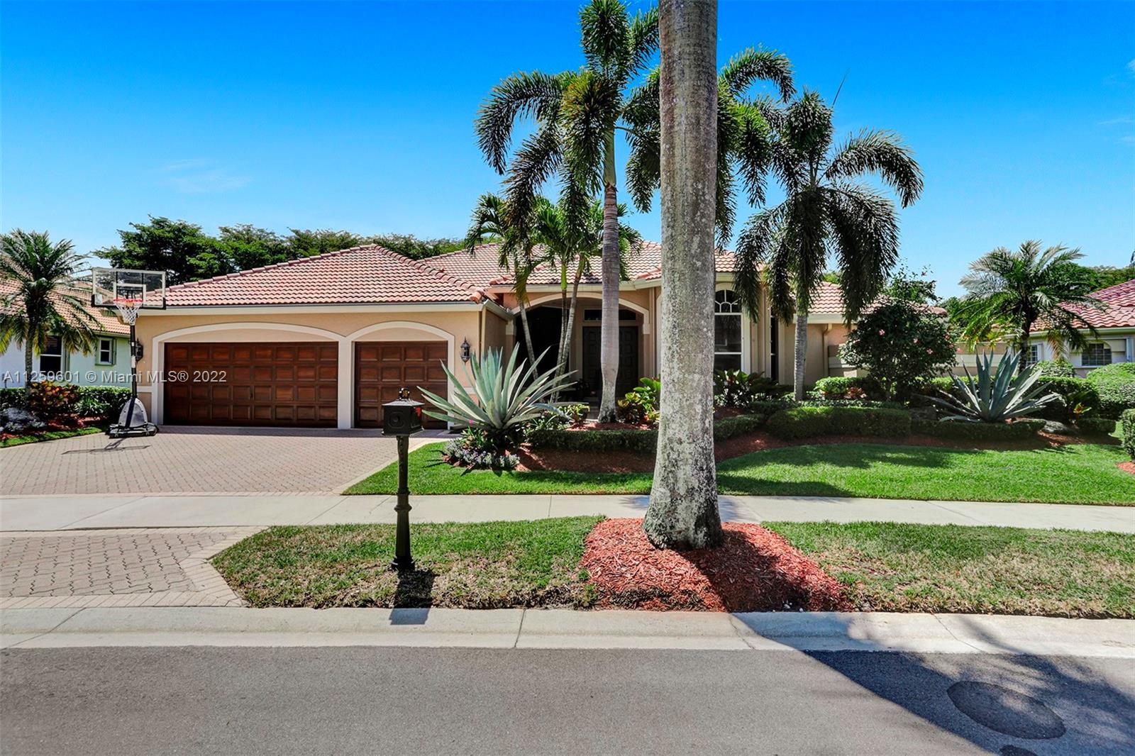 This beautiful home located in the Subdivision of Monterey in Weston Hills boast a new roof (2021) and a newly installed solar system (2021). August 2022 New hurricane impact windows and doors. This spacious 5 Bedroom 3 bath has a triple-split floor plan, the 5th bedroom is being used as an office. The kitchen boasts new quartz counter tops with stainless-steel appliances. New upgraded electrical and lighting system are featured in the formal living room. Custom Built-ins. The green thumb manicured lawn offers lush landscaping with a newly installed automated sprinkler system. Enjoy your screened patio and pool with waterfall and also a separate open-air patio. Wood burning fireplace.