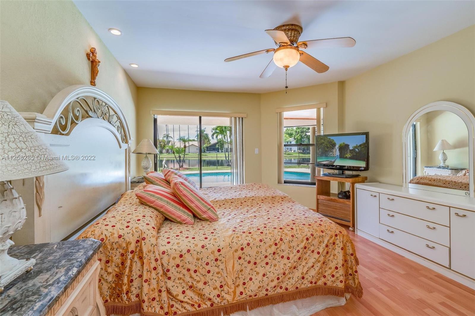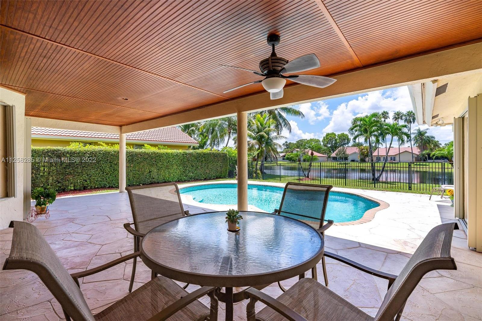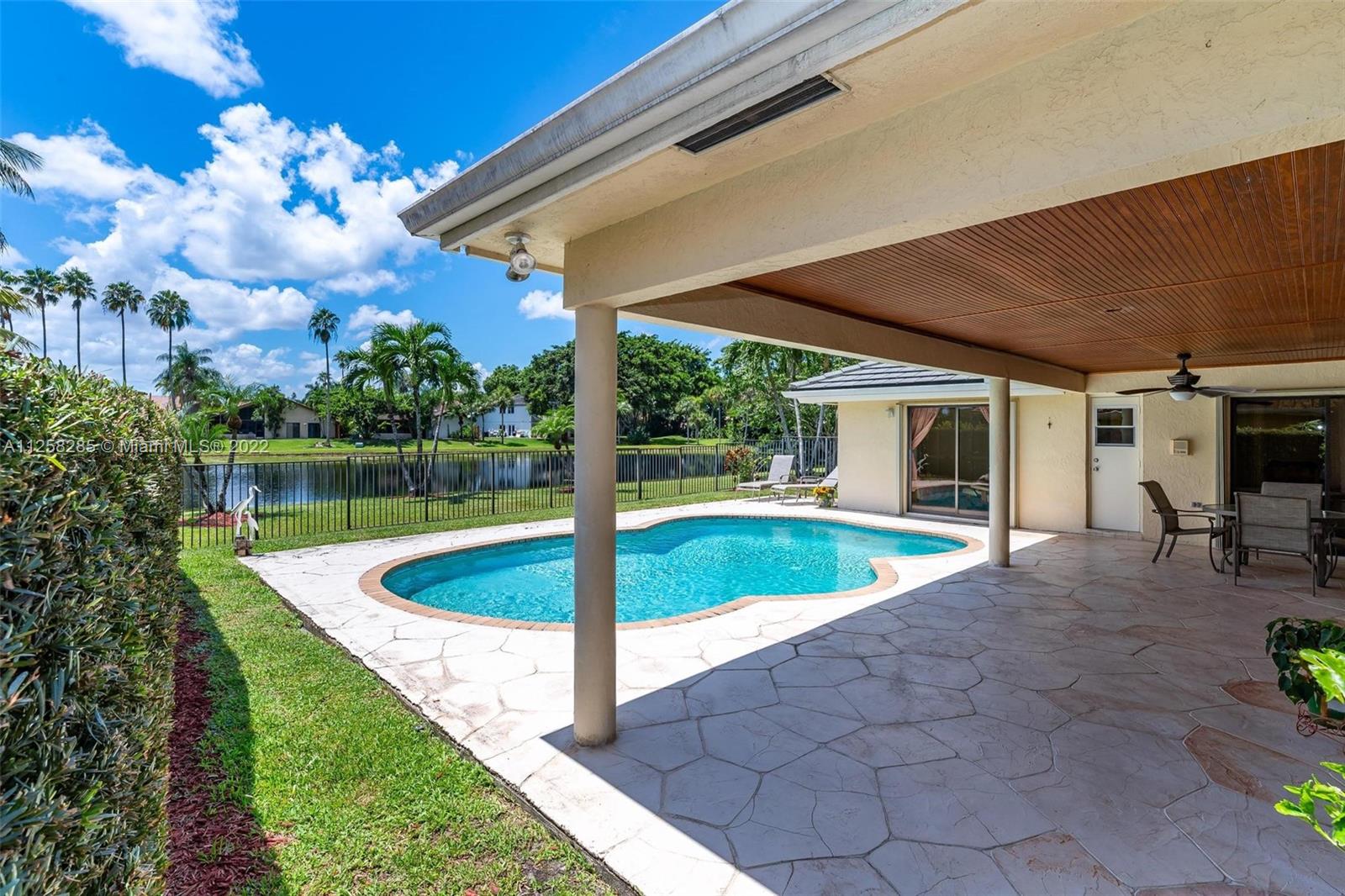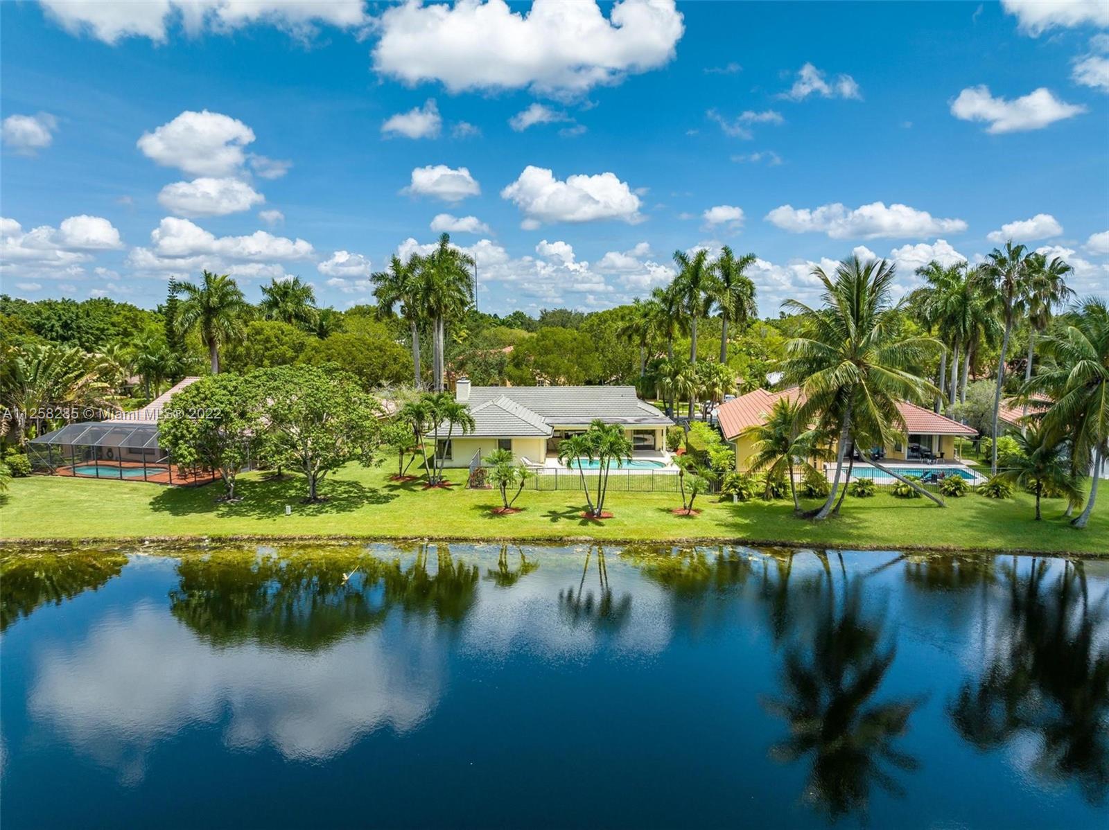 LAKEFRONT 4 bedroom/2.5 bath home with POOL nestled on 9,287 sq. foot lot on PRIVATE CUL-DE-SAC in prestigious The OAKS I. OPEN & BRIGHT with WATER VIEWS from EVERY room. This home is IDEAL for entertaining with spacious living room w 2 double sliding glass doors to pool and Lake. HUGE kitchen opens to spacious FAMILY room, eat-in kitchen, and MORE. MASTER ensuite bedroom with 2 individual closets & separate shower &soaking tub. 4th bedroom currently used an office with TONS of built ins. WALKING distance to Country Isles Elementary School (A+ rated school), Country Isles Park and Weston Town Center, shopping, & dining. 2 car garage. Rarely available home!