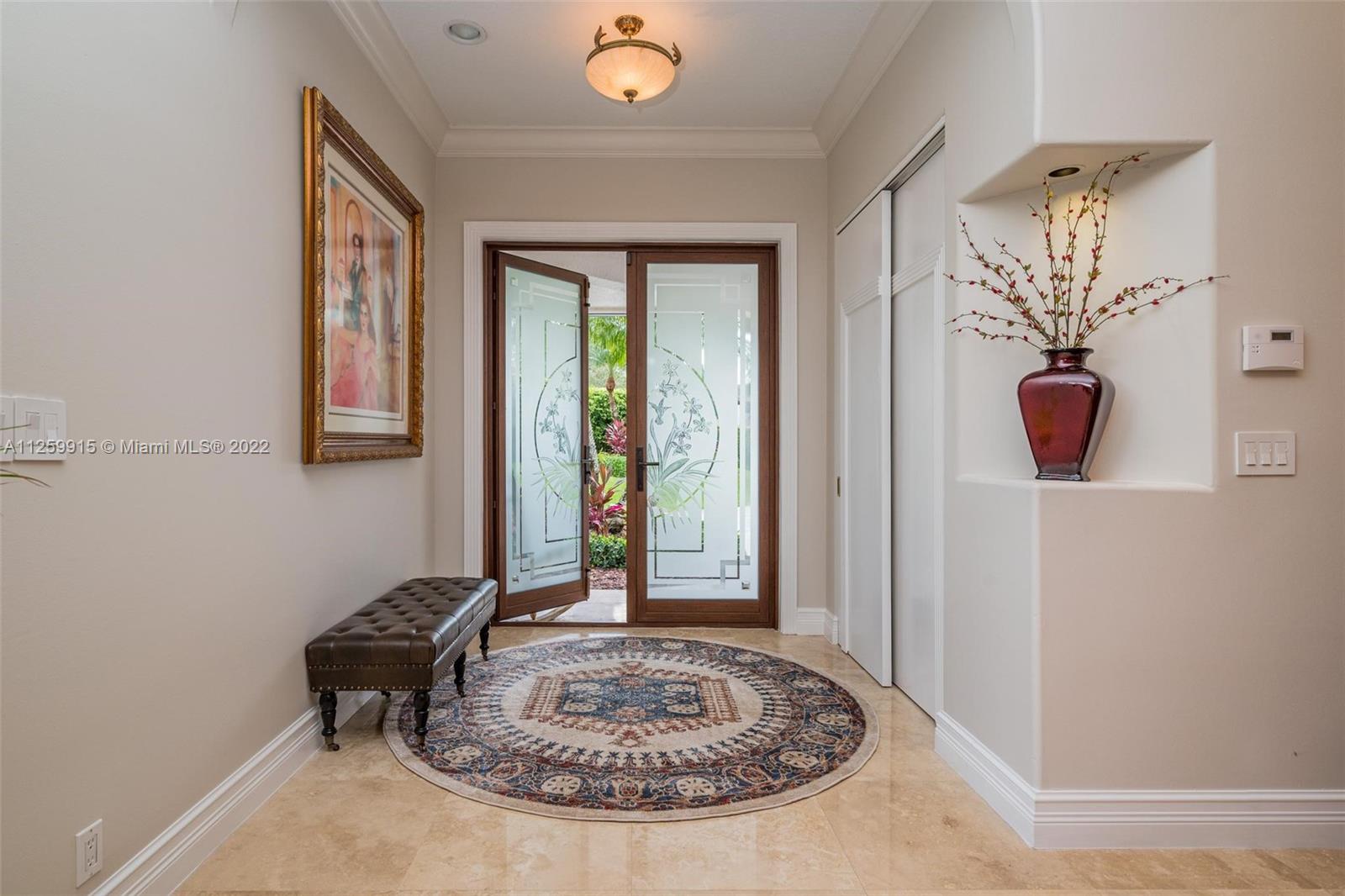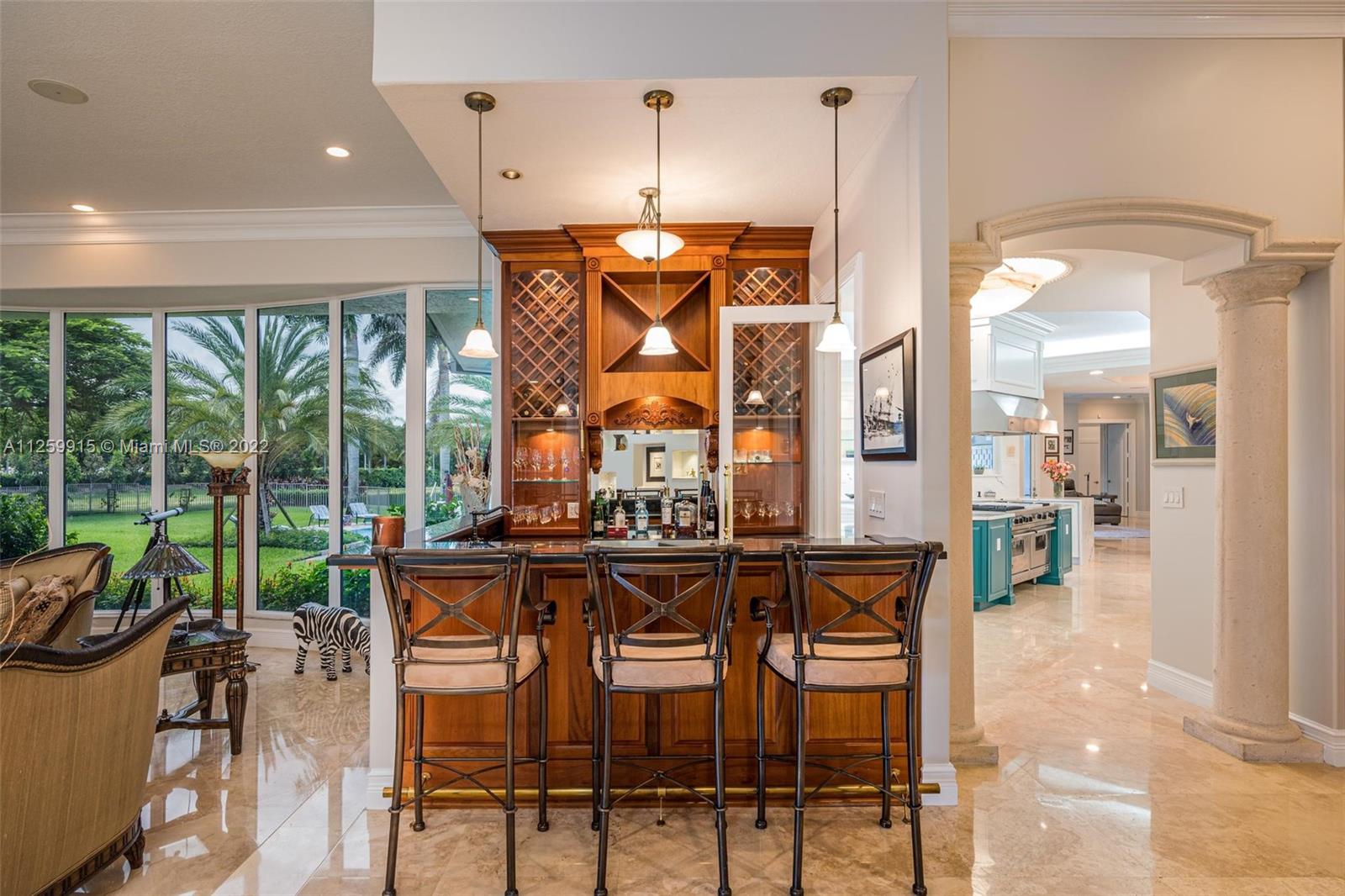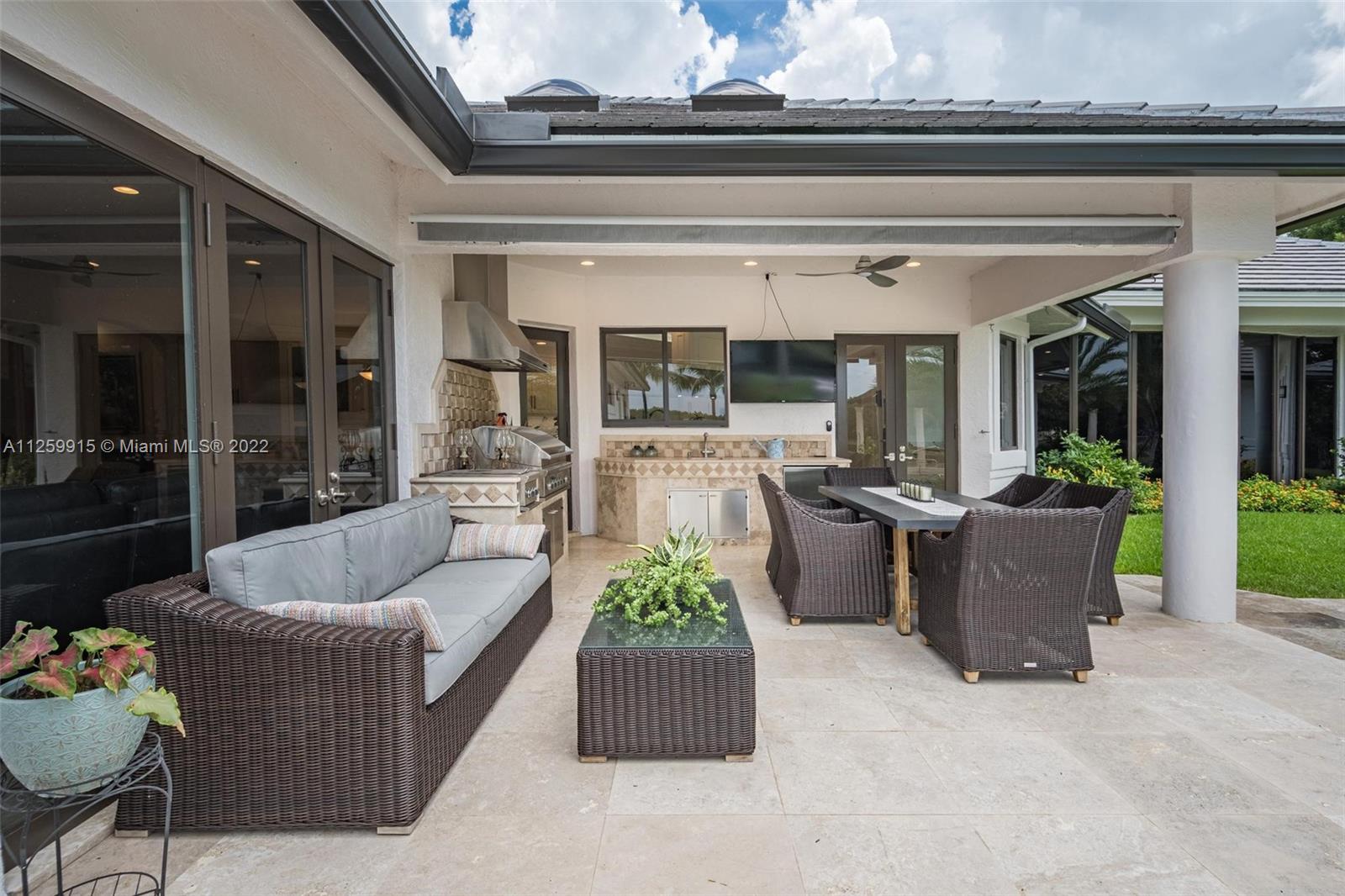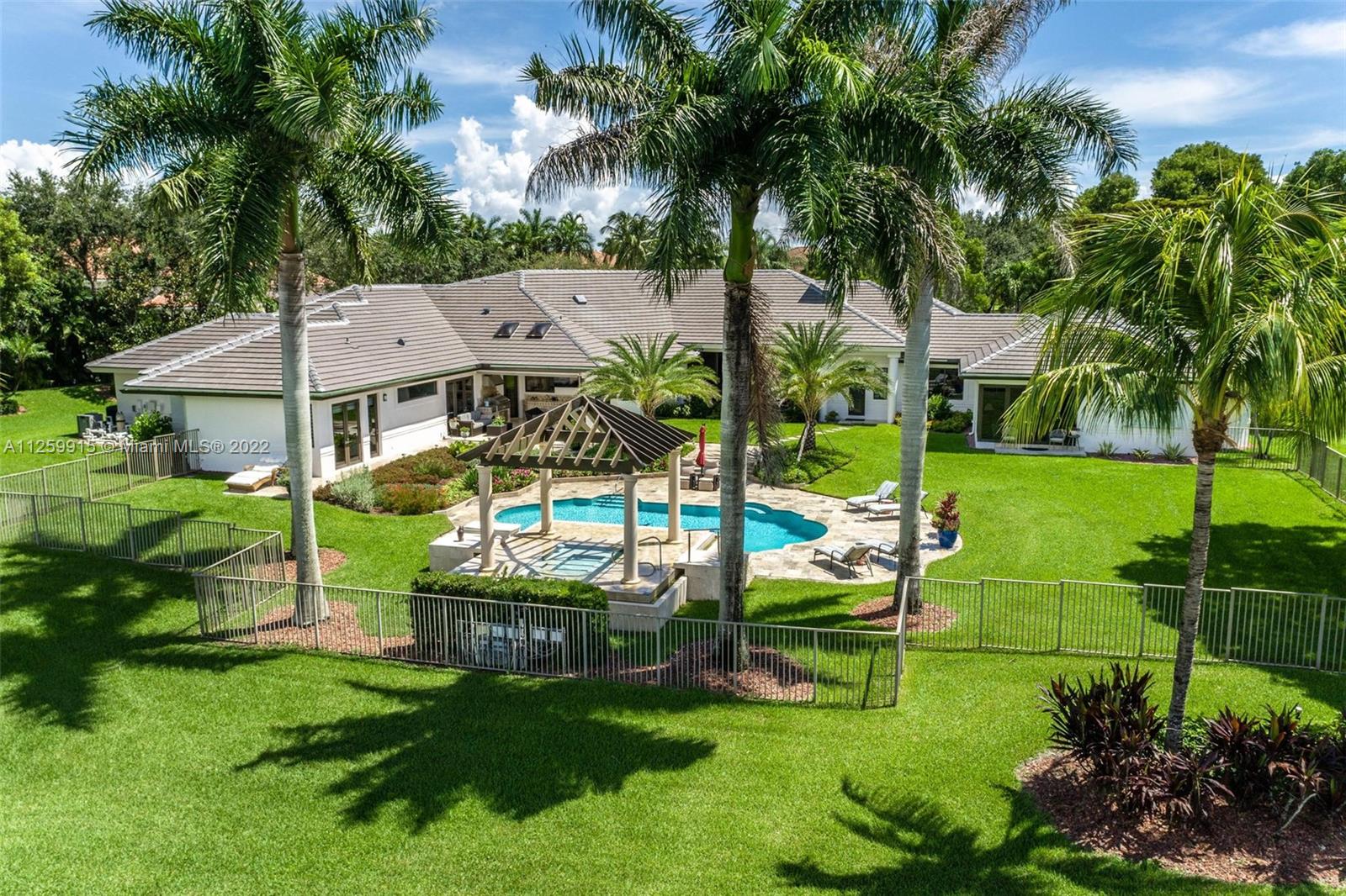 Highly renovated estate on a private 58,000 SF cul-de-sac lot w/ endless water views in prestigious Windmill Ranch Estates. New travertine circular driveway, 4 car garage & porte cochere welcomes you! Smart home w/ brand new roof, impact glass windows & doors, marble floors & custom millwork throughout. 5 bedrooms, 6 1/2 baths, master suite w/ large walk-in closets, master bath w/ spa & sauna. New chef's kitchen w/ top of the line Viking appliances - Viking 60" gas range, Sub Zero refrigerator. Formal living room w/ wet bar, fireplace, volume ceilings & picture window displaying endless water & sunset views. Resort style backyard w/ heated pool & spa, extensive new travertine pavers & summer kitchen. Sold fully furnished for list price excluding grandfather clock, piano, 2 area rugs.