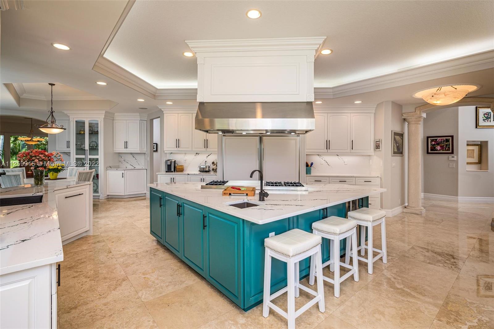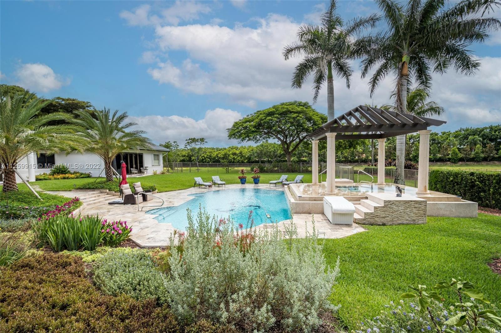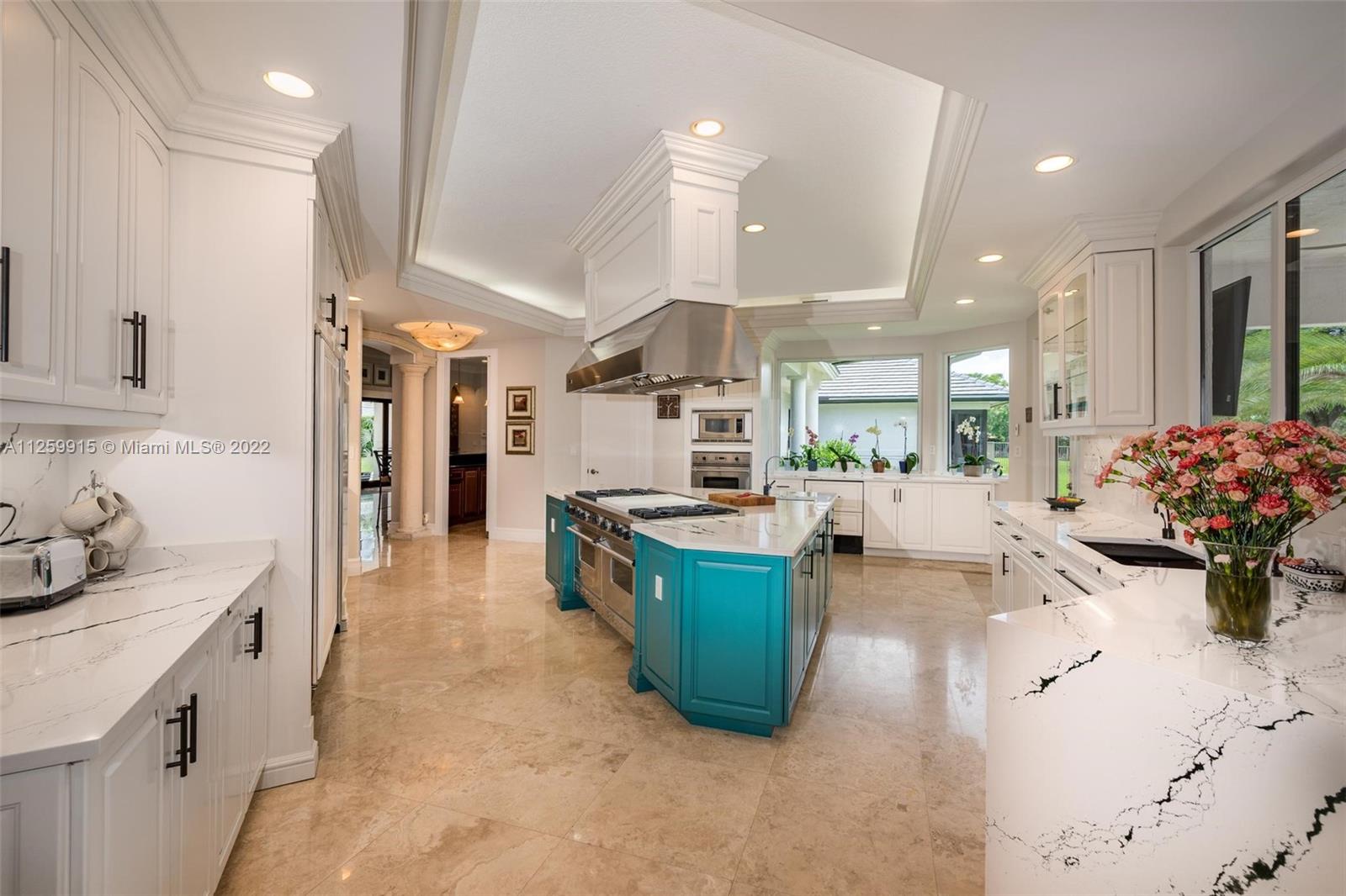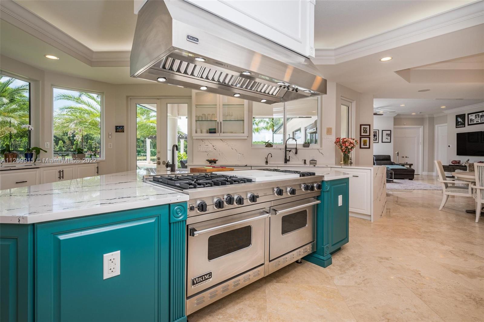 Highly renovated estate on a private 58,000 SF cul-de-sac lot w/ endless water views in prestigious Windmill Ranch Estates. New travertine circular driveway, 4 car garage & porte cochere welcomes you! Smart home w/ brand new roof, impact glass windows & doors, marble floors & custom millwork throughout. 5 bedrooms, 6 1/2 baths, master suite w/ large walk-in closets, master bath w/ spa & sauna. New chef's kitchen w/ top of the line Viking appliances - Viking 60" gas range, Sub Zero refrigerator. Formal living room w/ wet bar, fireplace, volume ceilings & picture window displaying endless water & sunset views. Resort style backyard w/ heated pool & spa, extensive new travertine pavers & summer kitchen. Sold fully furnished for list price excluding grandfather clock, piano, 2 area rugs.