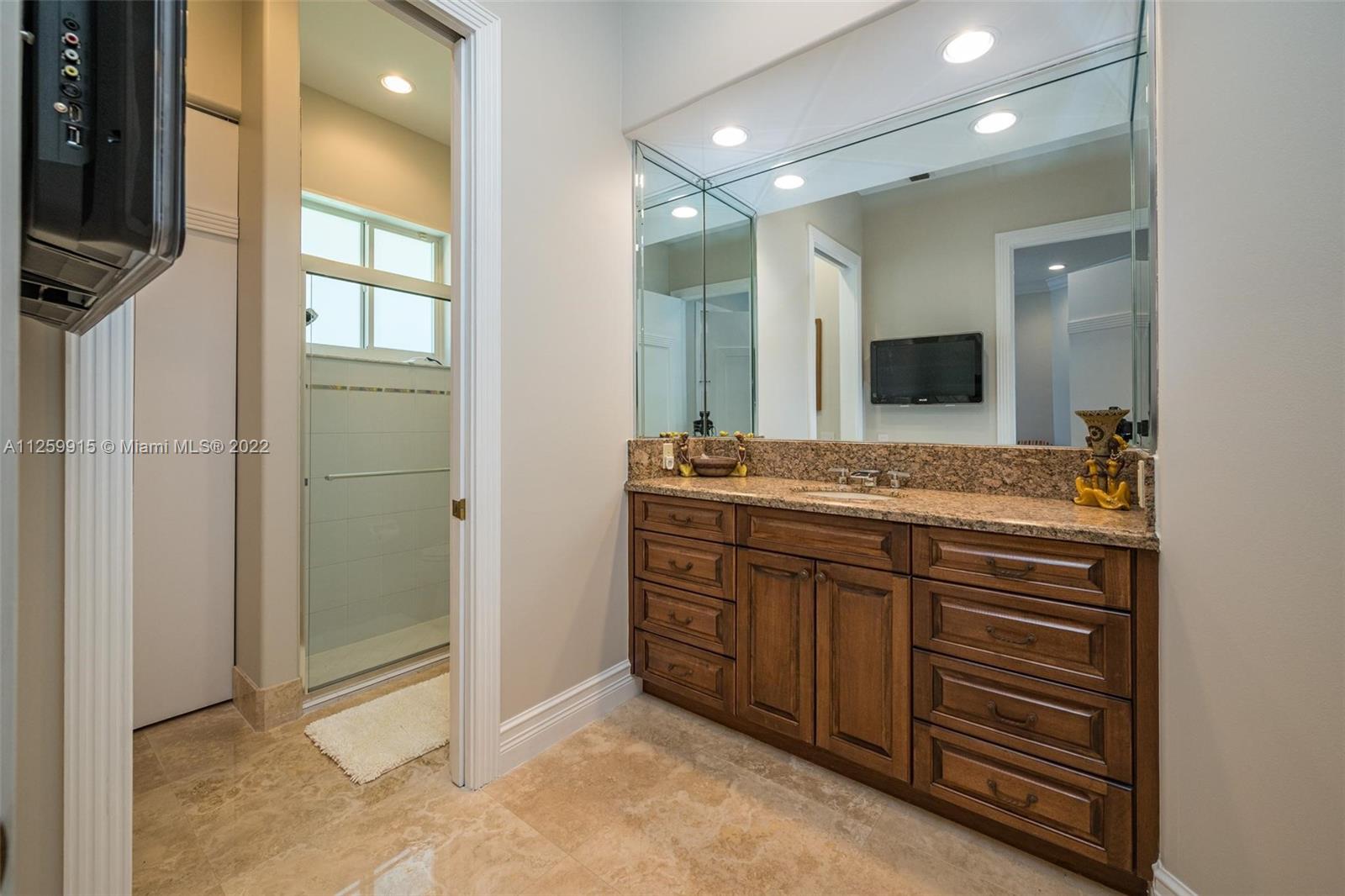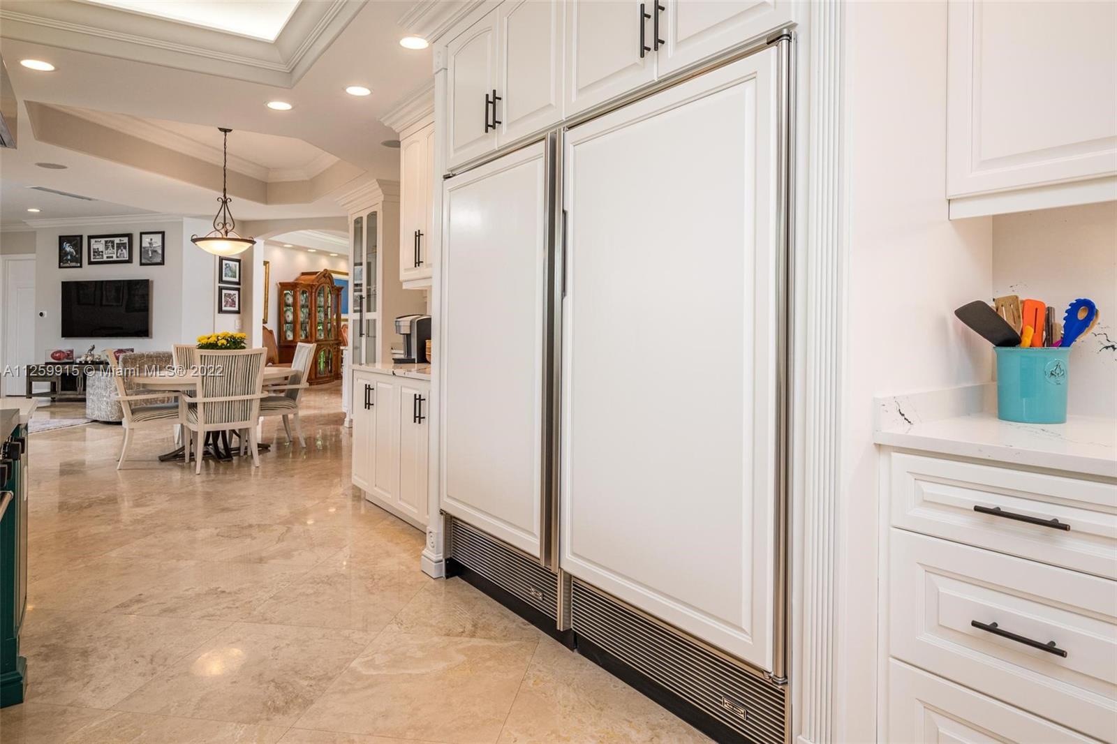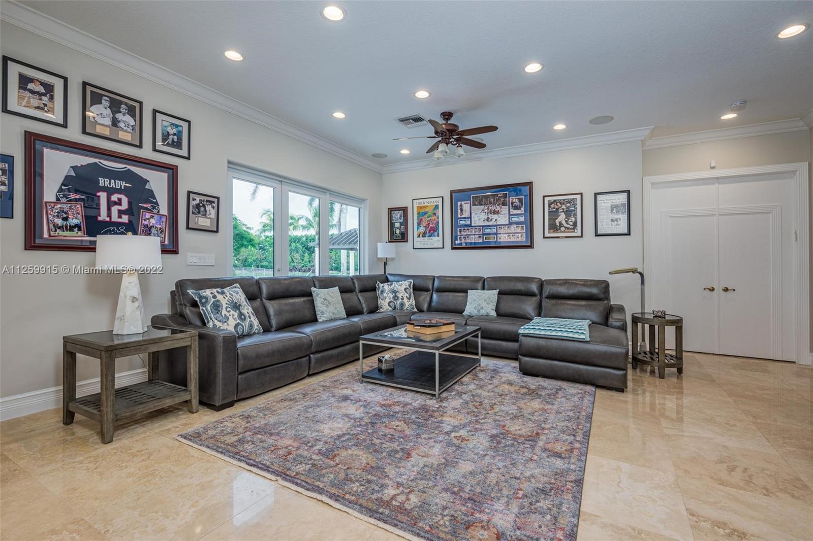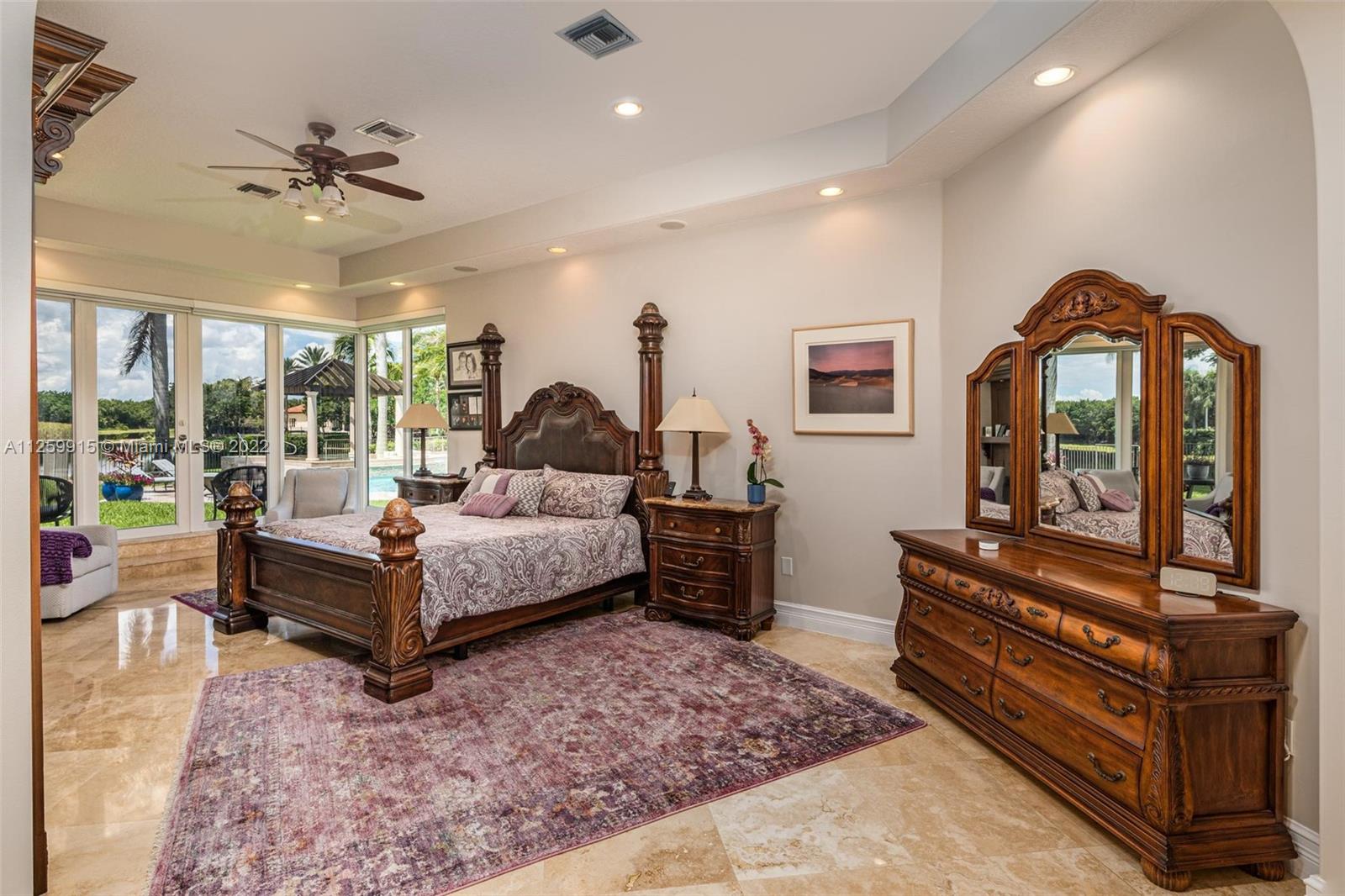 Highly renovated estate on a private 58,000 SF cul-de-sac lot w/ endless water views in prestigious Windmill Ranch Estates. New travertine circular driveway, 4 car garage & porte cochere welcomes you! Smart home w/ brand new roof, impact glass windows & doors, marble floors & custom millwork throughout. 5 bedrooms, 6 1/2 baths, master suite w/ large walk-in closets, master bath w/ spa & sauna. New chef's kitchen w/ top of the line Viking appliances - Viking 60" gas range, Sub Zero refrigerator. Formal living room w/ wet bar, fireplace, volume ceilings & picture window displaying endless water & sunset views. Resort style backyard w/ heated pool & spa, extensive new travertine pavers & summer kitchen. Sold fully furnished for list price excluding grandfather clock, piano, 2 area rugs.