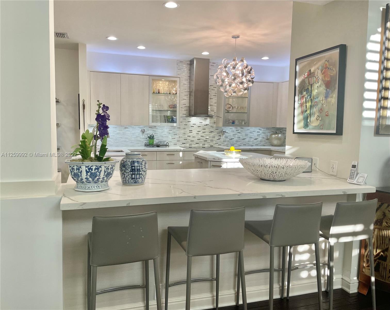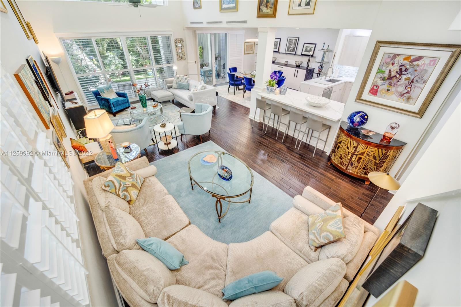 Rarely available end unit on large lot in 24-hour manned, gated community of Swan Lake. This gracious villa has over 3000 sq ft, 3 bed/3 bath (one on first floor) and a bonus room which could easily be converted to a fourth bedroom. The large living & dining area have volume ceilings & ample windows which let in great light. The home has plantation shutters, real hardwood floors & strand woven bamboo flooring. The kitchen was totally remodeled w/custom cabinetry, stainless steel appliances, inc gourmet range hood & quartz counters w/waterfall edge. The bathrooms were also totally redone w/the finest materials & plumbing fixtures. The spacious Master Bath has a freestanding tub & separate shower, 2 vanities & separate water closet. Also, new impact windows & an elevator! Hurry, won’t last!