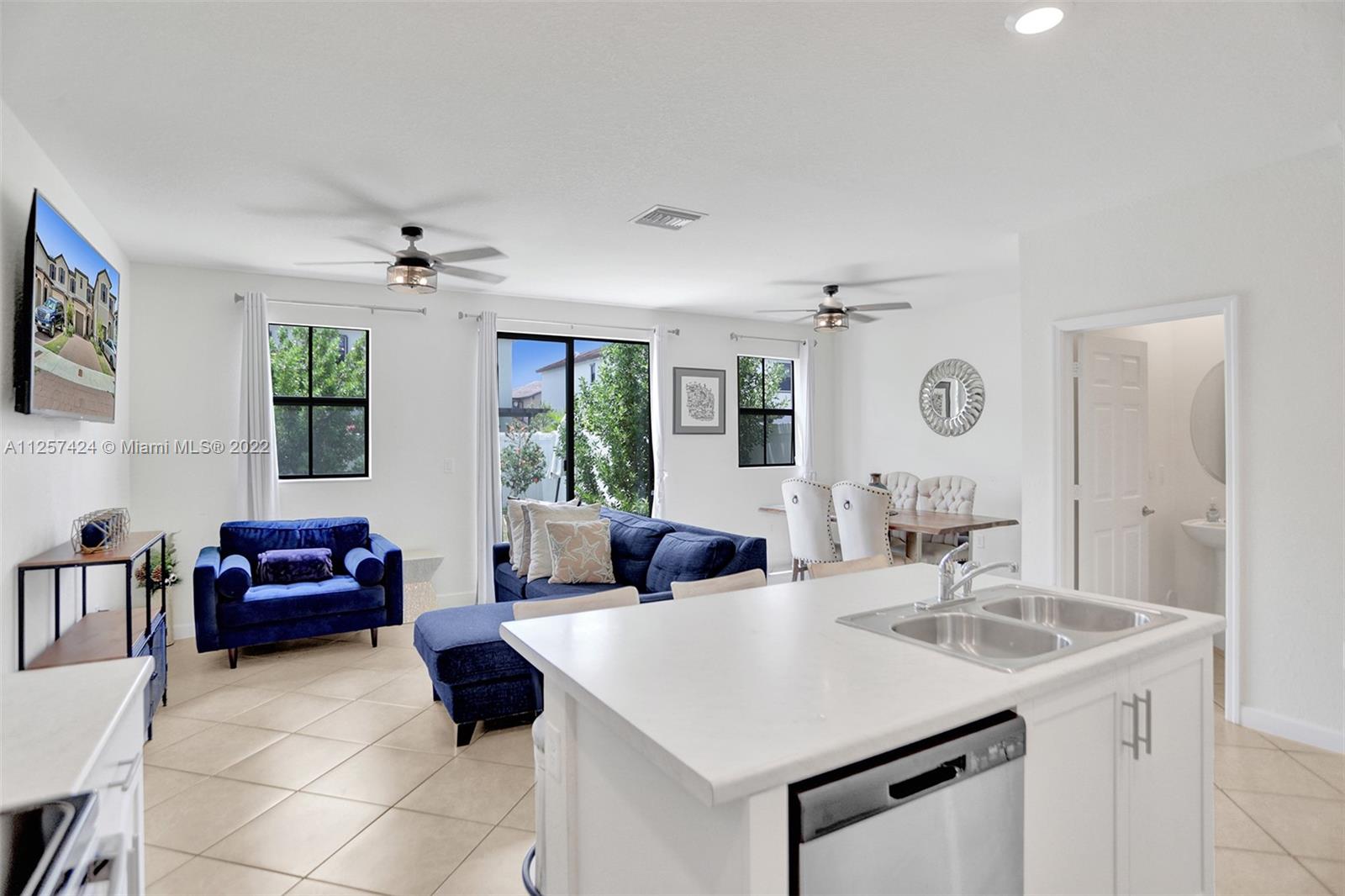 This beautiful modern townhome features 3 bedrooms 2.5 bath. Located in the highly sought after Aquabella community. Built in 2021 feels and looks like new!! Enter into a modern open floor concept stainless steel appliances, white kitchen cabinets, title floors, over sized fenced yard, laundry located on the second floor and much more enjoyable features. Easy access to MIA/FLL. Seller would like a 60 day post occupancy.