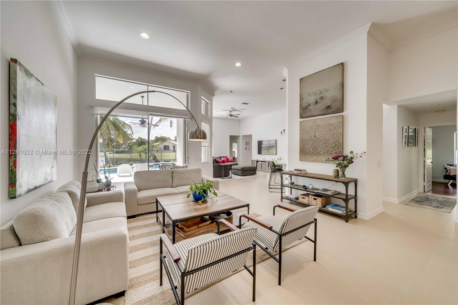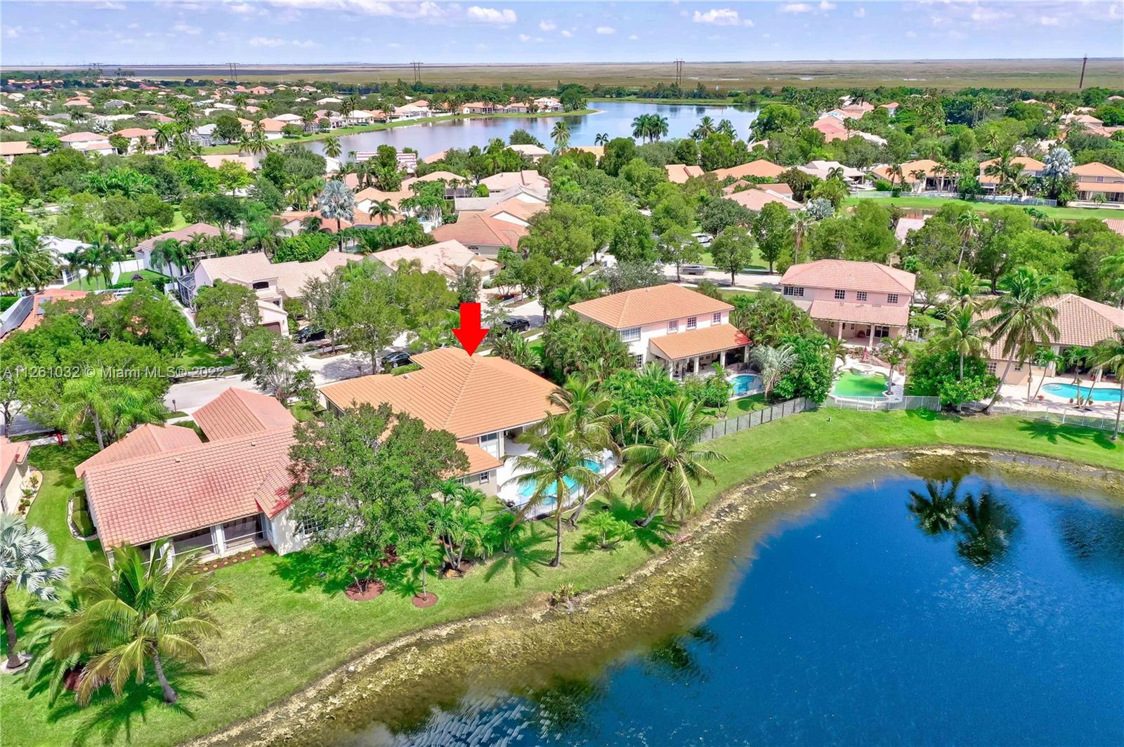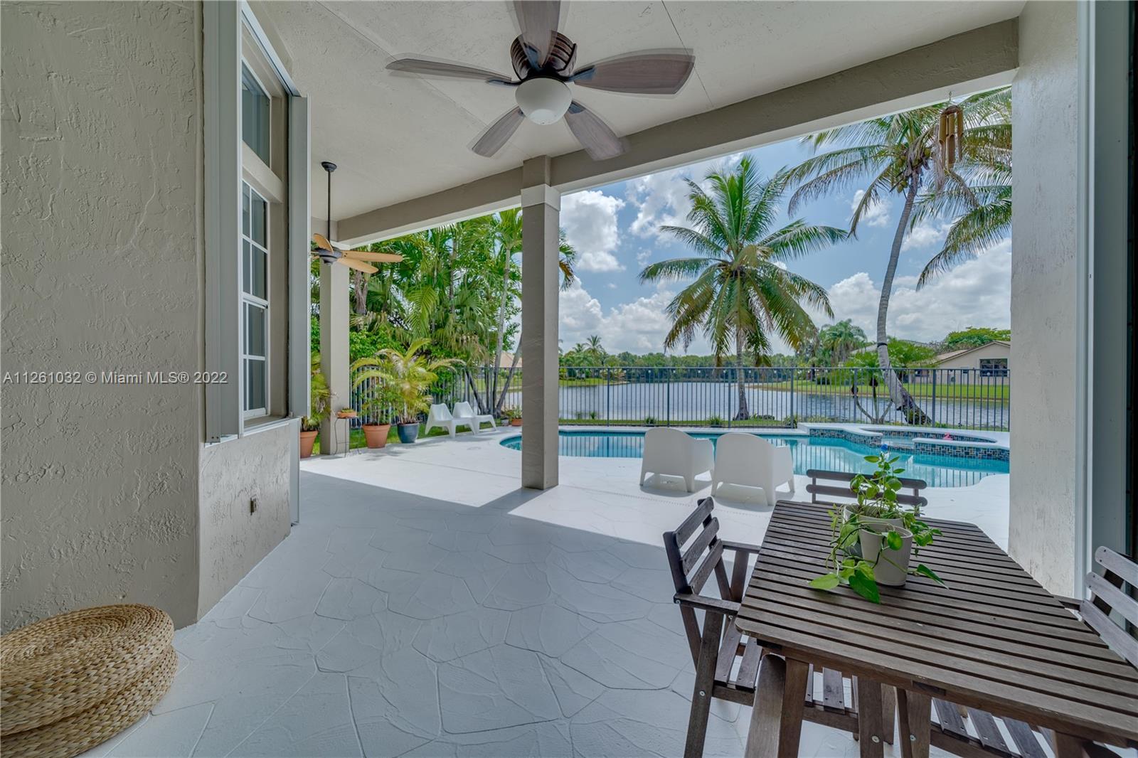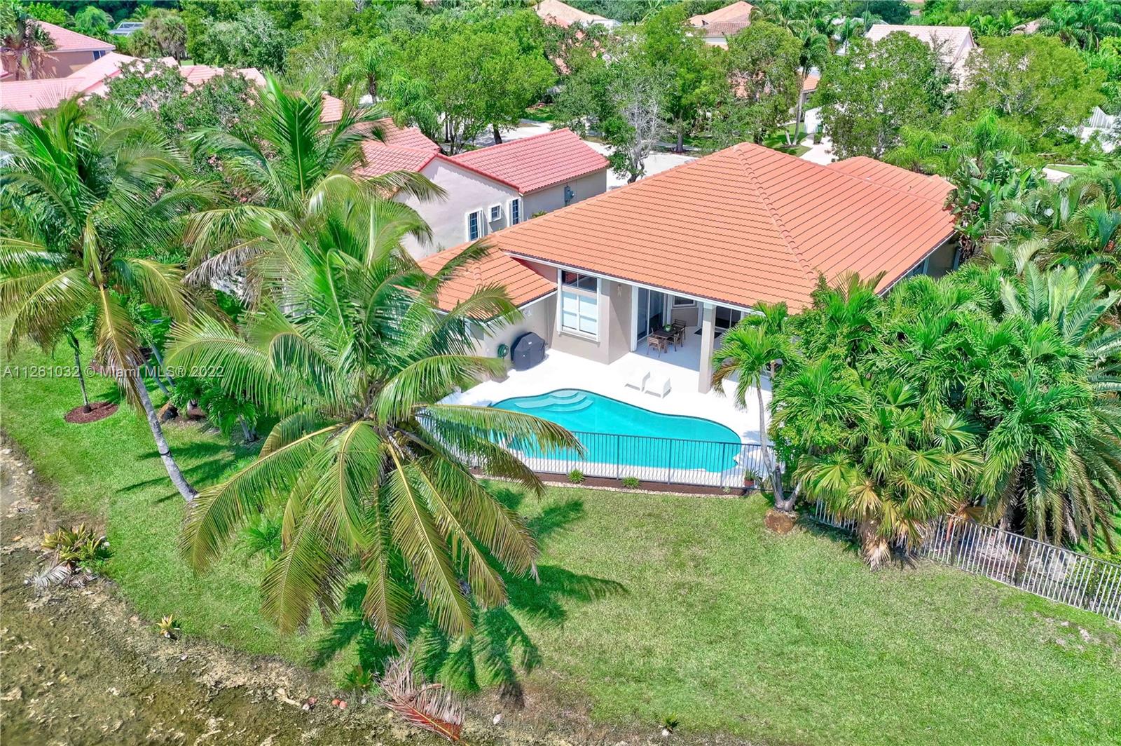 Open high-ceiling floor plan with one of the best lake views in Weston. 5 bedrooms and 3.5 bathrooms in one story. Spacious formal dining, family, living rooms. Well mantained house. Stainless newer appliances. Accordion shutters and new roof (2018). Heated pool and jacuzzi.