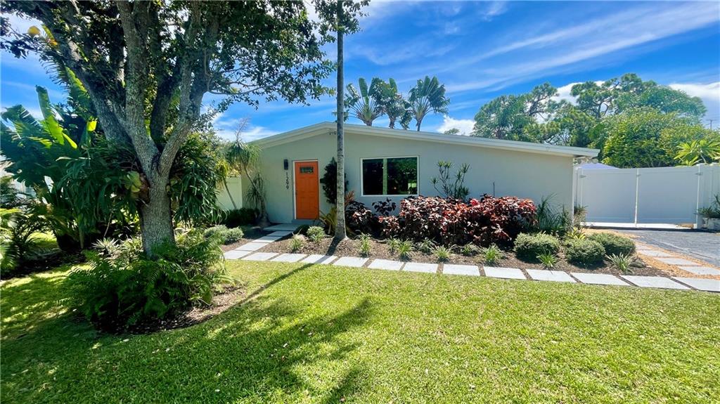 Pride of ownership shines as you walk through the door of this 3 bedroom 2 bath Mid-century modern beauty. Cathedral ceilings greet you with exposed beams throughout the entire house. Enjoy the open concept living room/dining room with a wet bar. The modern eat in kitchen with stainless appliances looks out to a very private swimming pool with a tropical landscaped extra large backyard with work shed. French doors from the living room lead to a private courtyard/patio area. Bathrooms/ADA requirements. What the seller loves about this home: A private tropical paradise conveniently located within minutes of I-95, I-595, Florida Turnpike, downtown, the Fort Lauderdale airport and Hard Rock Casino Hollywood. Backyard access through double privacy gates for a car, boat, or RV parking.