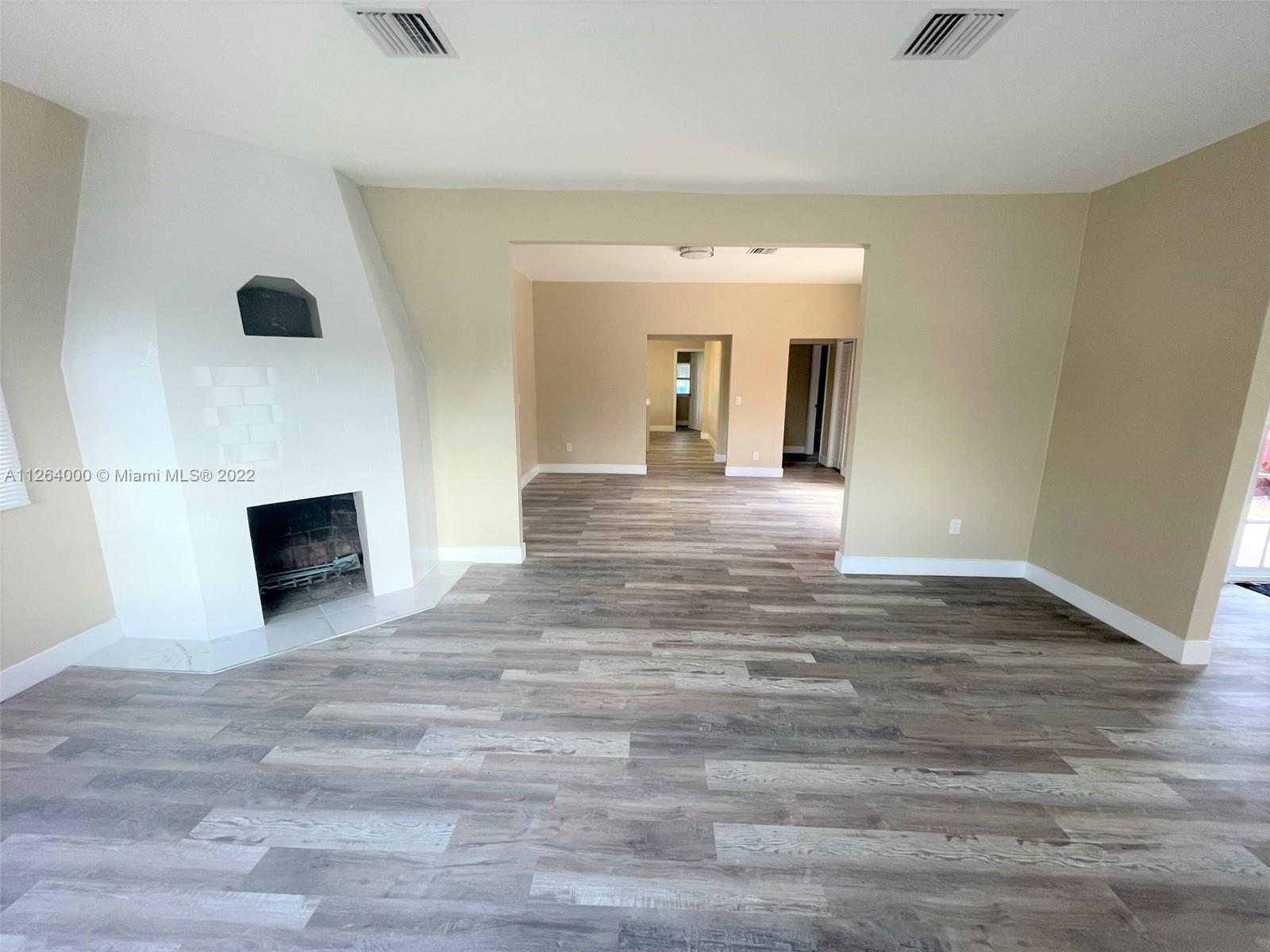Wholly remodeled huge 4 bedrooms/2 1/2 bathrooms home in a corner double lot in Hollywood. Upgrades galore, Impact windows and doors offer tons of natural light, two-zone new A/Cs, a Beautiful open concept kitchen with Quartz countertops, custom-made cabinets, and S/S appliances. LED lights, freshly painted in and out, modern bathrooms, fireplace, waterproof vinyl floors; this unique modern classic house is a GEM, more than 2200 sq ft under A/C, with dining, living, family rooms, laundry, covered garage, social area with a pergola. Oversized lot with room for a pool, park more than ten vehicles. The buyer will not be disappointed; just bring Your Toothbrush. The primary bedroom and large bathroom are on the first floor