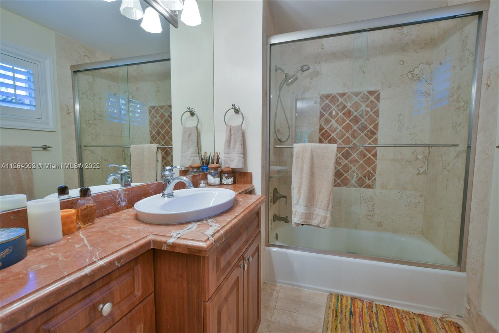 Welcome to your very own private tropical paradise within the Platinum Triangle. This magical home sits on a quiet tree lined street just minutes away from Sunset Elementary, consisting of 3 bedrooms plus an office, 2 walk-in closets, 2 bathrooms, 1 car garage, and a 6 plus car driveway. This gorgeous home features an open gourmet kitchen with granite countertops and a breakfast bar overlooking the family room. Step into the beautifully renovated backyard boasting a top of the line dirt free turf, an outdoor bamboo shower supplying hot and cold water, a new wooden deck with warm perimeter lighting, and a brand new perimeter anti-mosquito system. , impact windows and doors, plantation shutters, marble floors and alarm system. NEW PRICE, seller motivated!