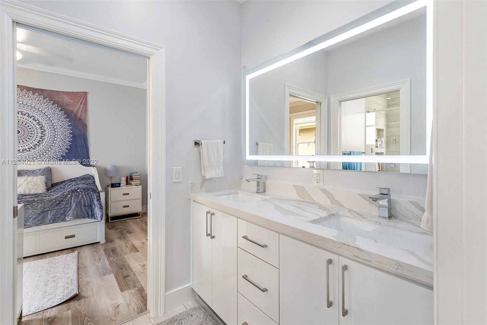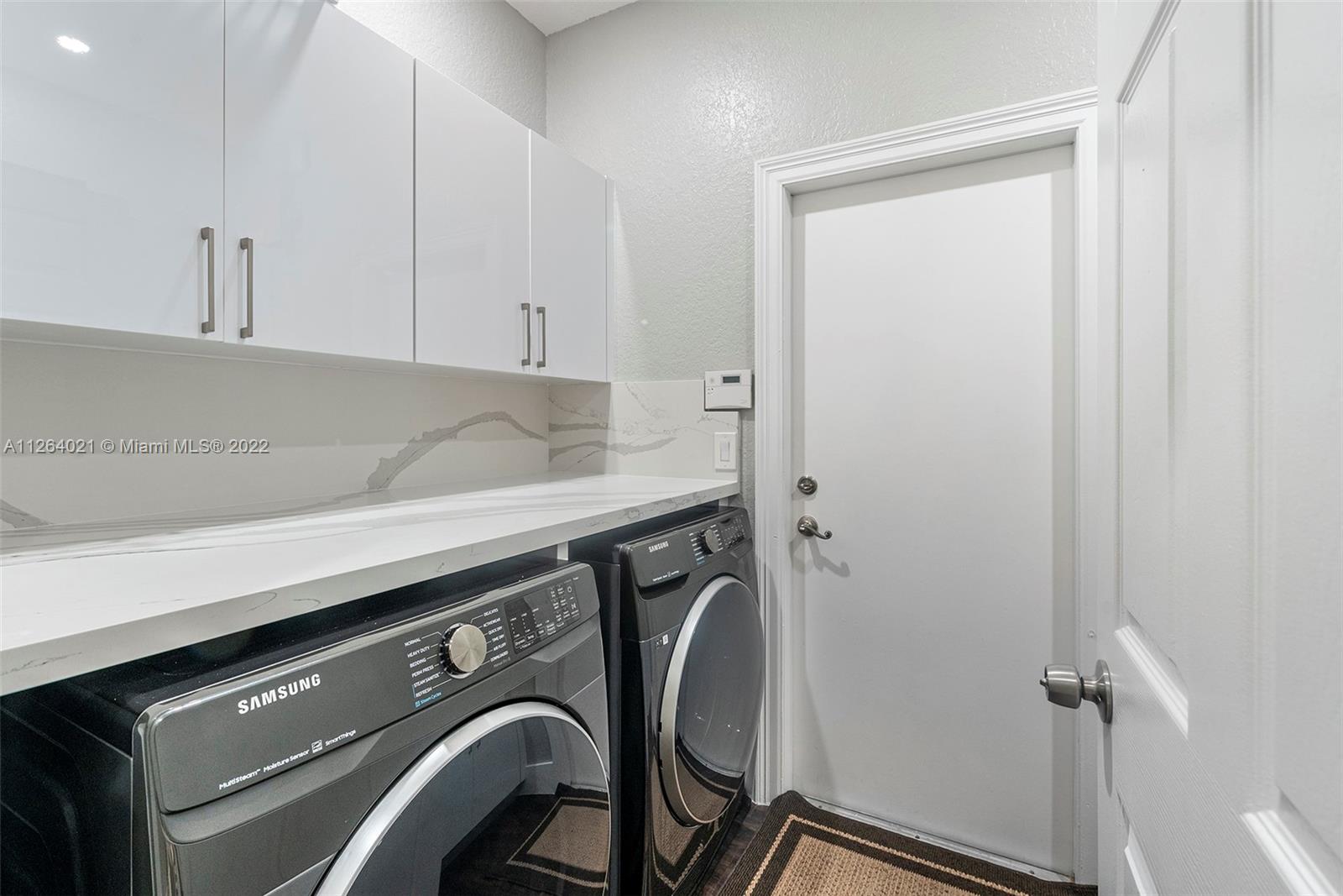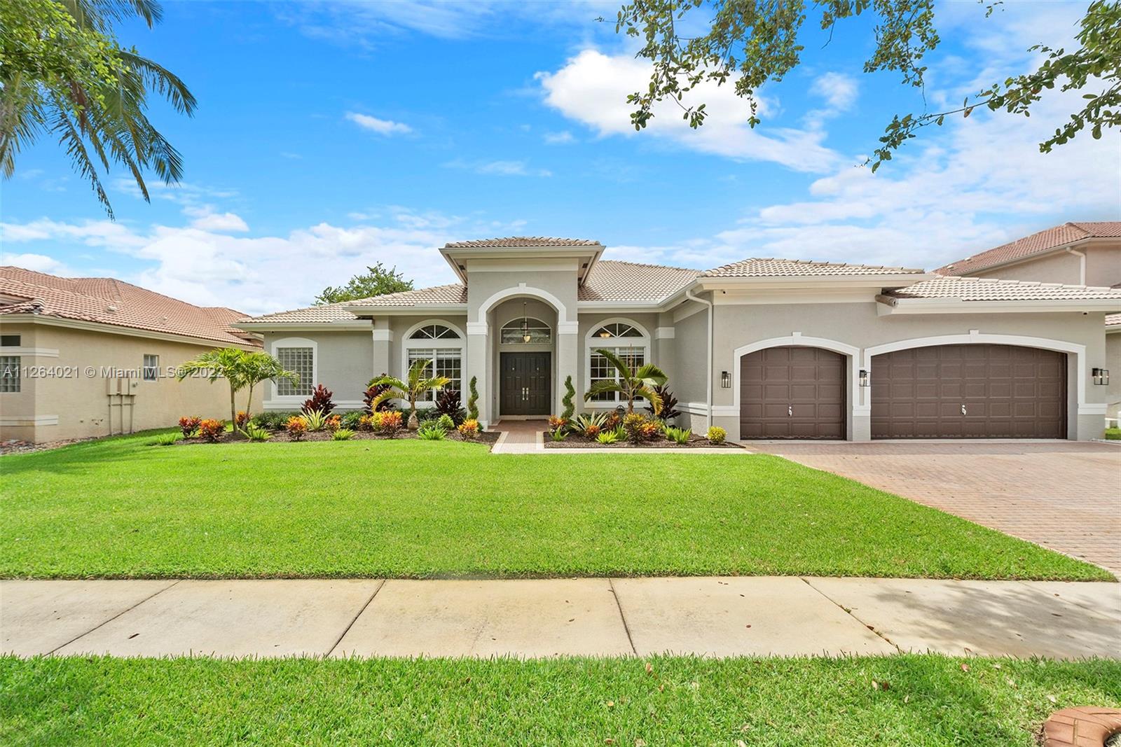 Captivating and beautiful renovated residence with a triple split floor plan, five bedrooms, three and one half bath featuring exquisite upgrades, very private & spacious living. The home is situated in the idyllic surroundings of the resort style community of Sunset Lakes. Luxury abounds throughout the home, with high ceilings and filled with natural light, bright spaces and clean lines. The impressive main suite features a custom master bath with spacious shower, top of the line fixtures, built out walk-in closets and serene views to the pool and garden. The open concept kitchen has stainless steel appliances and flows to the breakfast area and family room. Casa Caliterra is a great family home located in one of the most coveted communities in West Miramar.