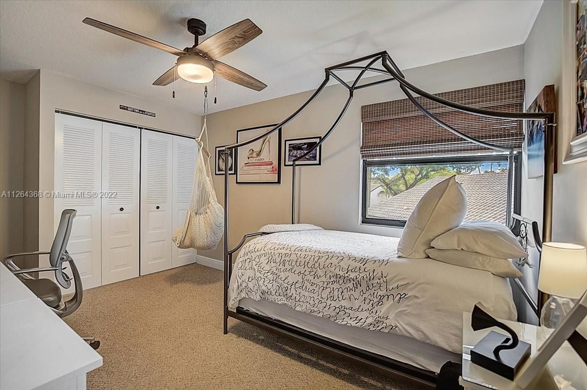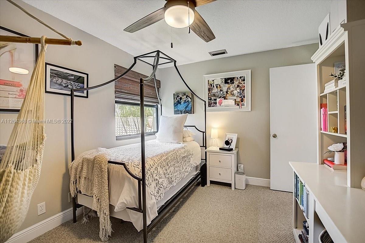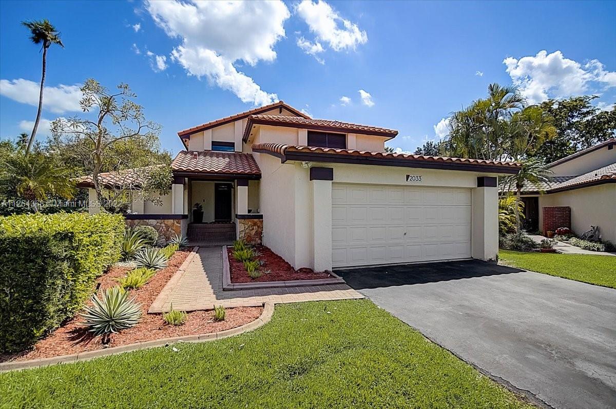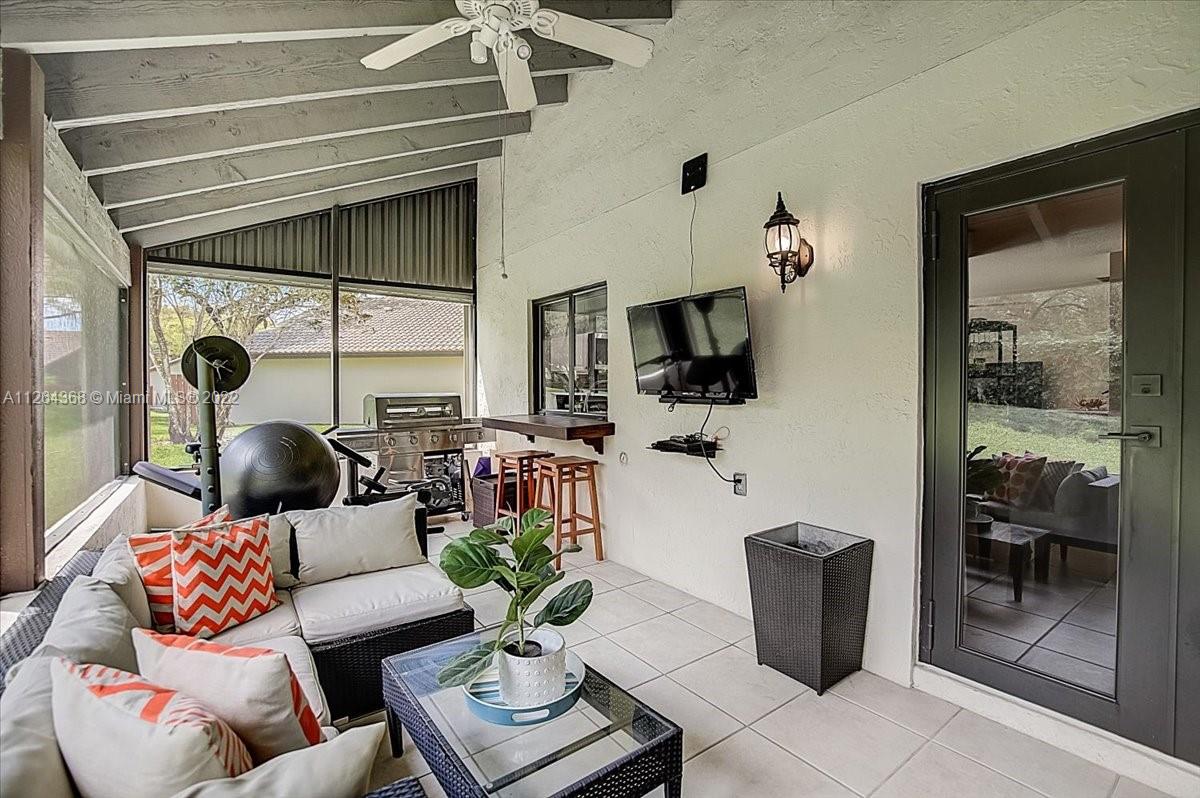 Welcome home to warmth and serenity! Located on a quiet cul-de-sac, this updated 3 Bedroom 2.5 Bathroom home is nestled in a quiet neighborhood down the street from an A-rated elementary school. This home features a loft perfect for a home office, playroom, or 4th bedroom. Entertain on the large screened patio with vaulted cedar ceilings overlooking the lush green space. Cook tasty meals in your open kitchen with white wood cabinets, stainless steel appliances, and granite counters. Enjoy serving dinners in the formal dining room. The primary bedroom features a custom built-in walk-in closet with tons of storage. All windows and patio have accordion shutters that are serviced yearly. This one is special! Lawn care included in low HOA. Close to Weston Town Center, Airport