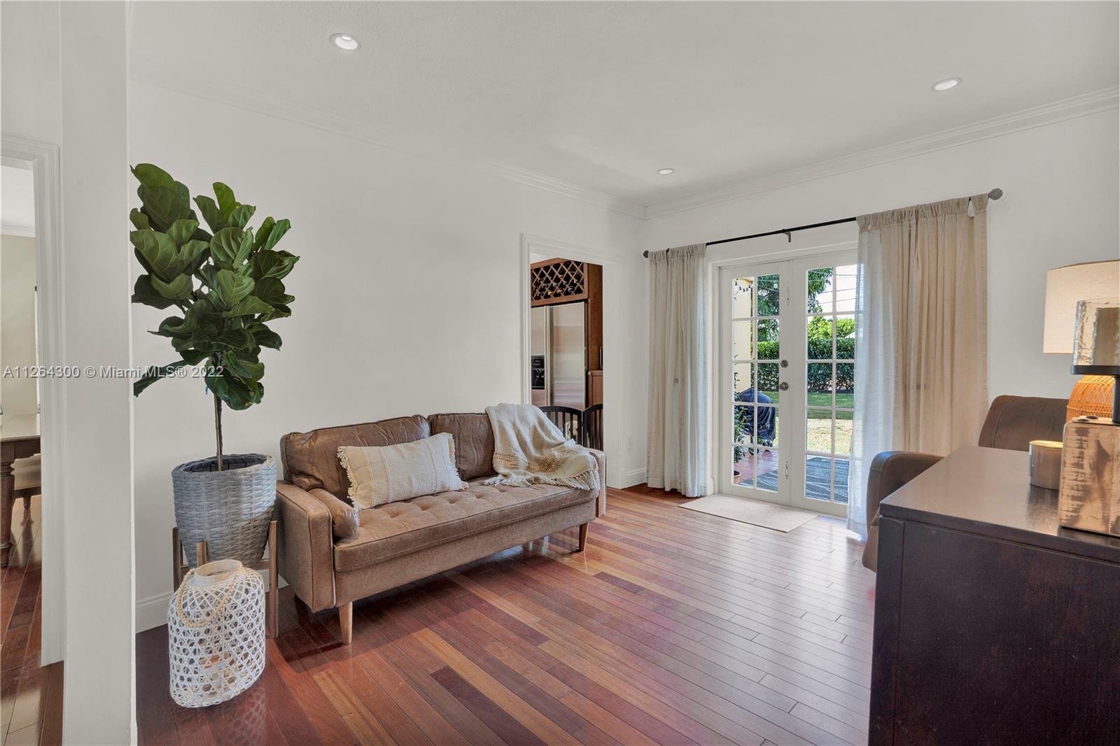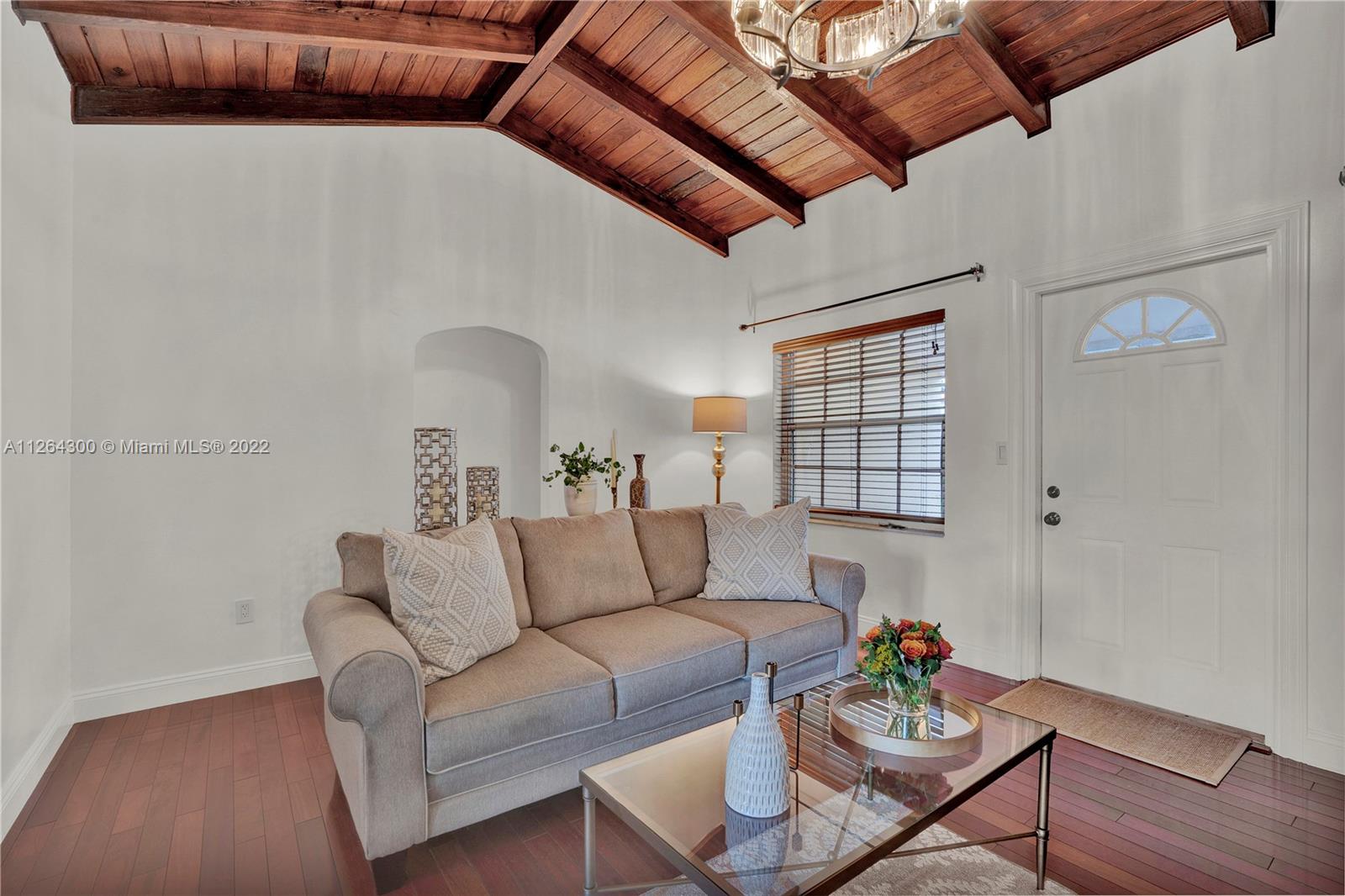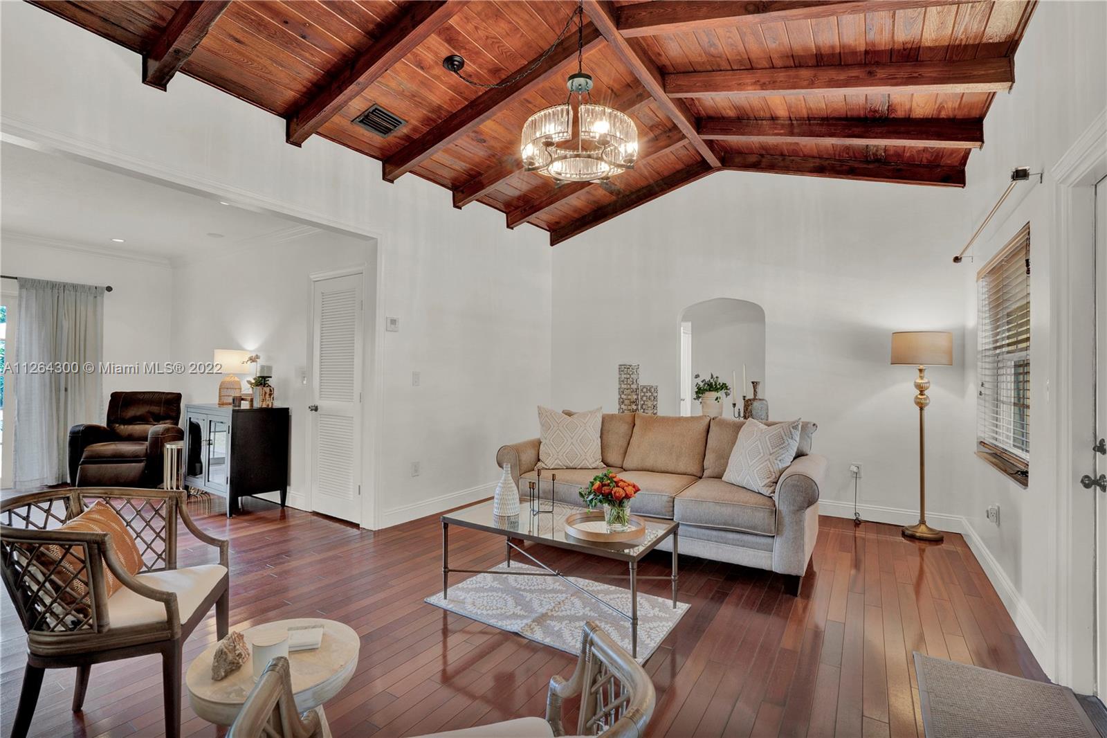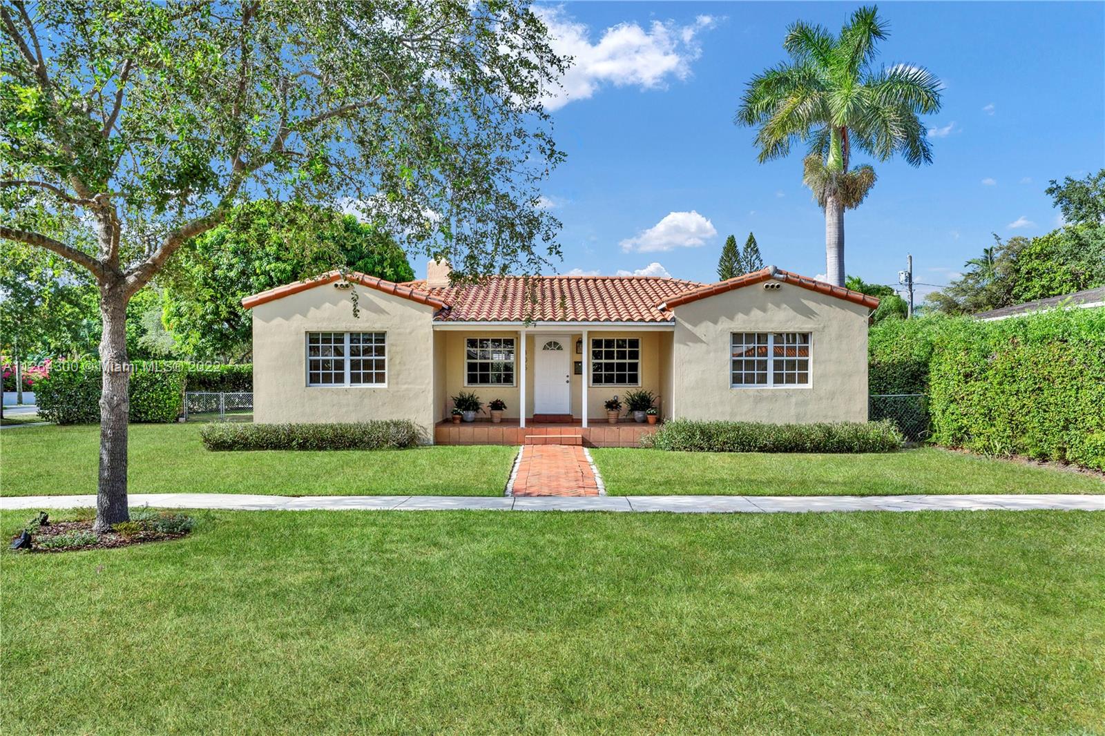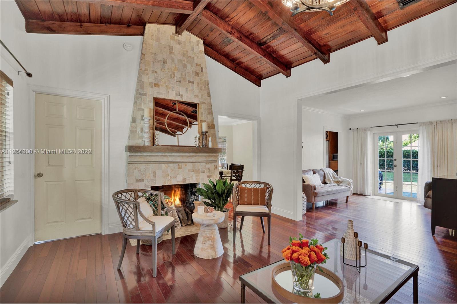 Step inside this charming and immaculate home situated on an oversized corner lot in the highly sought-after neighborhood of Miami Shores! This well-kept residence features a split floor plan with 3 bedrooms, 3 full baths (2 remodeled), single-car garage, large dining room for lots of entertaining, and much more. Other unique features include the living room high ceilings that boast refinished exposed beams, tastefully re-designed fireplace, and a welcoming covered front porch. Dreaming of being poolside in a large private backyard for the kids to play? You've got plenty of room to add it all, plus a mature fruit-bearing mango tree to go with it. Between the A-B rated school district and only walking distance to the Miami Shores Rec Center & Country Club, there's no place you'd rather be!
